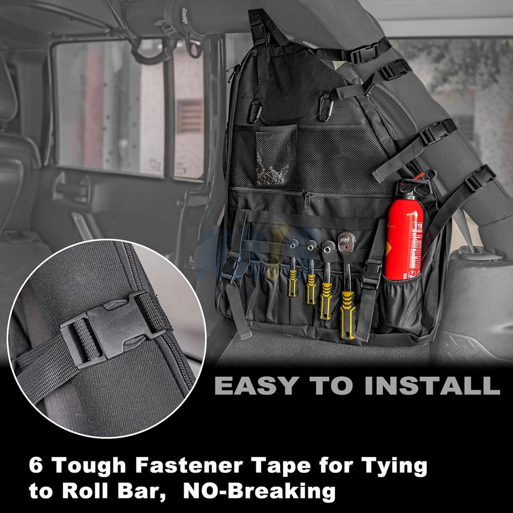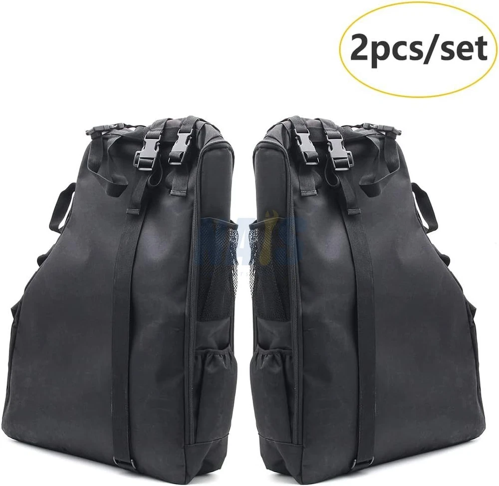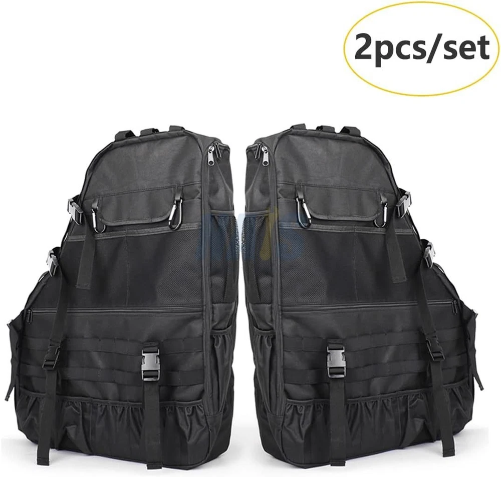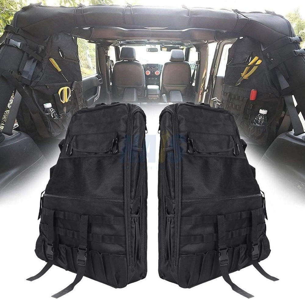 Roll Bar Saddlebag Tool Kit Storage Cargo Bags for 1997-2023 Jeep Wrangler TJ JK JL FITMENT: The Multi-Pockets TJ JK JL Storage Bags are compatible with 1997- 2023 Wrangler TJ JK JL & Unlimited JL 4-Door ( Don't fit for 2-door ) LARGE STORAGE CAPACITY: Wrangler storage bags jl jk storage Partition design separates the inside of the bag into two layers for more storage. Tool Kits, Driving licence, Cosmetic Accessories, Watch, Lipstick, Hairpin , Keys, Sun-glass, Pen, Notepads, Cellphone,MP3,Charges & Cables ,Earphones, Remote Control, SD Card, Flashlight, Mouse, Power Bank, Chewing Sugar, Wallets and More Useful tools, etc. HIGH QUALITY MATERIAL: Made of premium waterproof 600D Oxford cloth, the jk bags jl storage are sturdy and durable. 600D oxford cloth ensure long lasting durable. EASY TO INSTALL: No tools required, adjustable straps. Wrangler storage bags jl jk storage Not only can be installed in the car, you can single strap, it is an essential Multi-purpose Storage Package when go hiking camping travel. Works great and fits perfectly, and it will totally change the look of your vehicle. PACKAGE INCLUDES: 2 PCS Roll Cage Multi-Pockets wrangler storage bags jl jk storage Saddlebag. Individual jk bags jl storage Size: 23.7*19.1*4.6 inch. On Oct 30, 2025 at 10:03:36 PDT, seller added the following information: