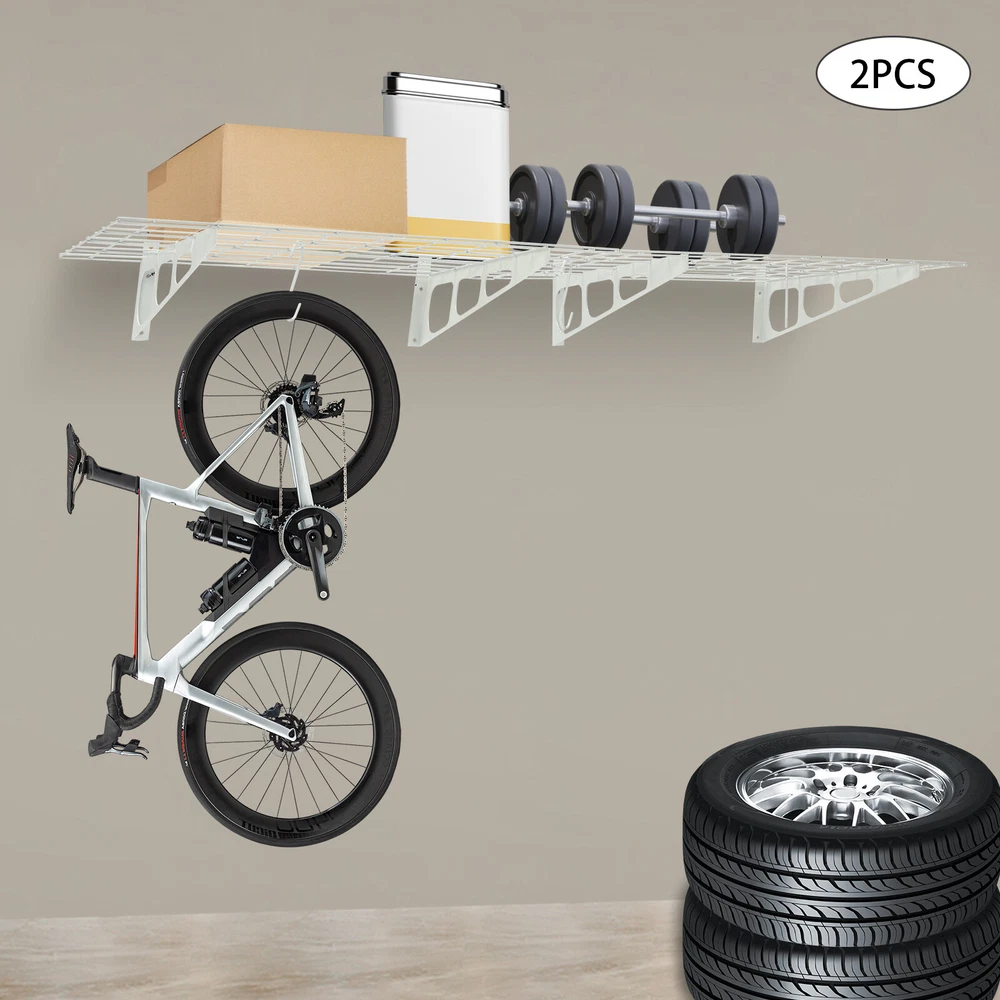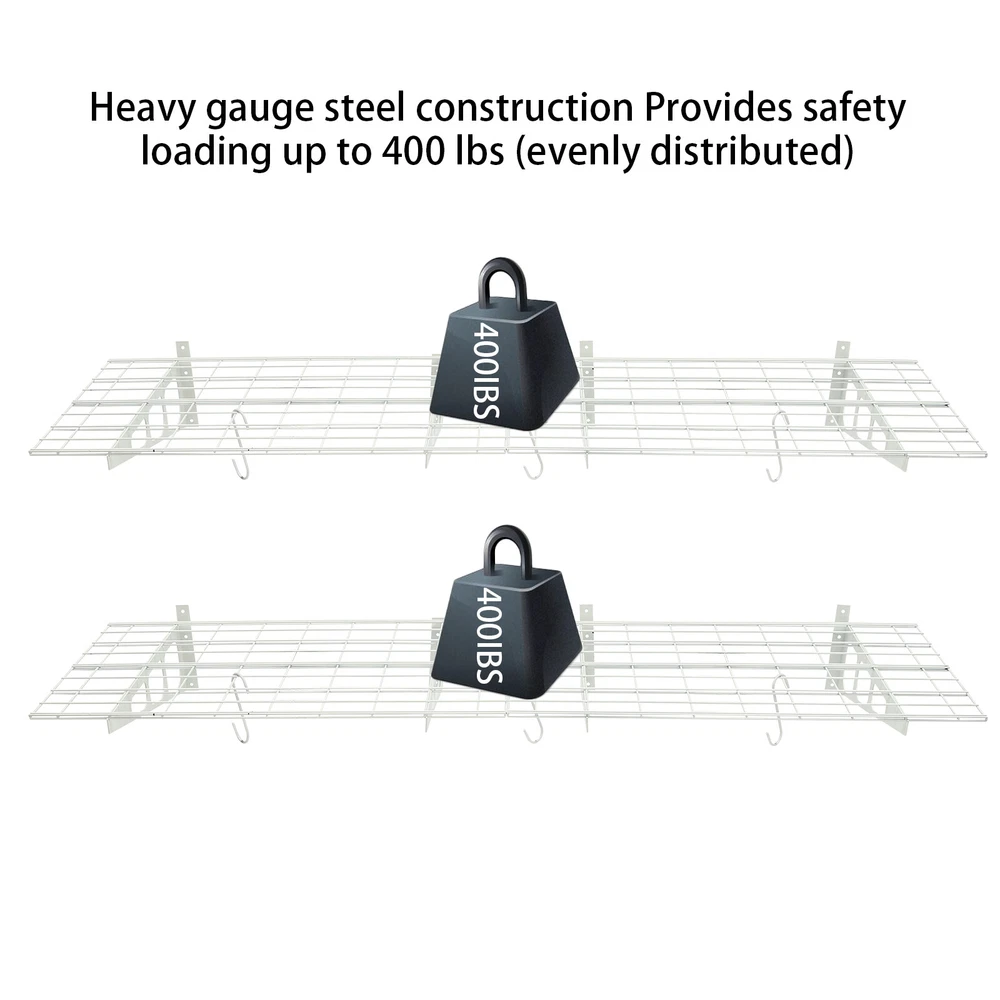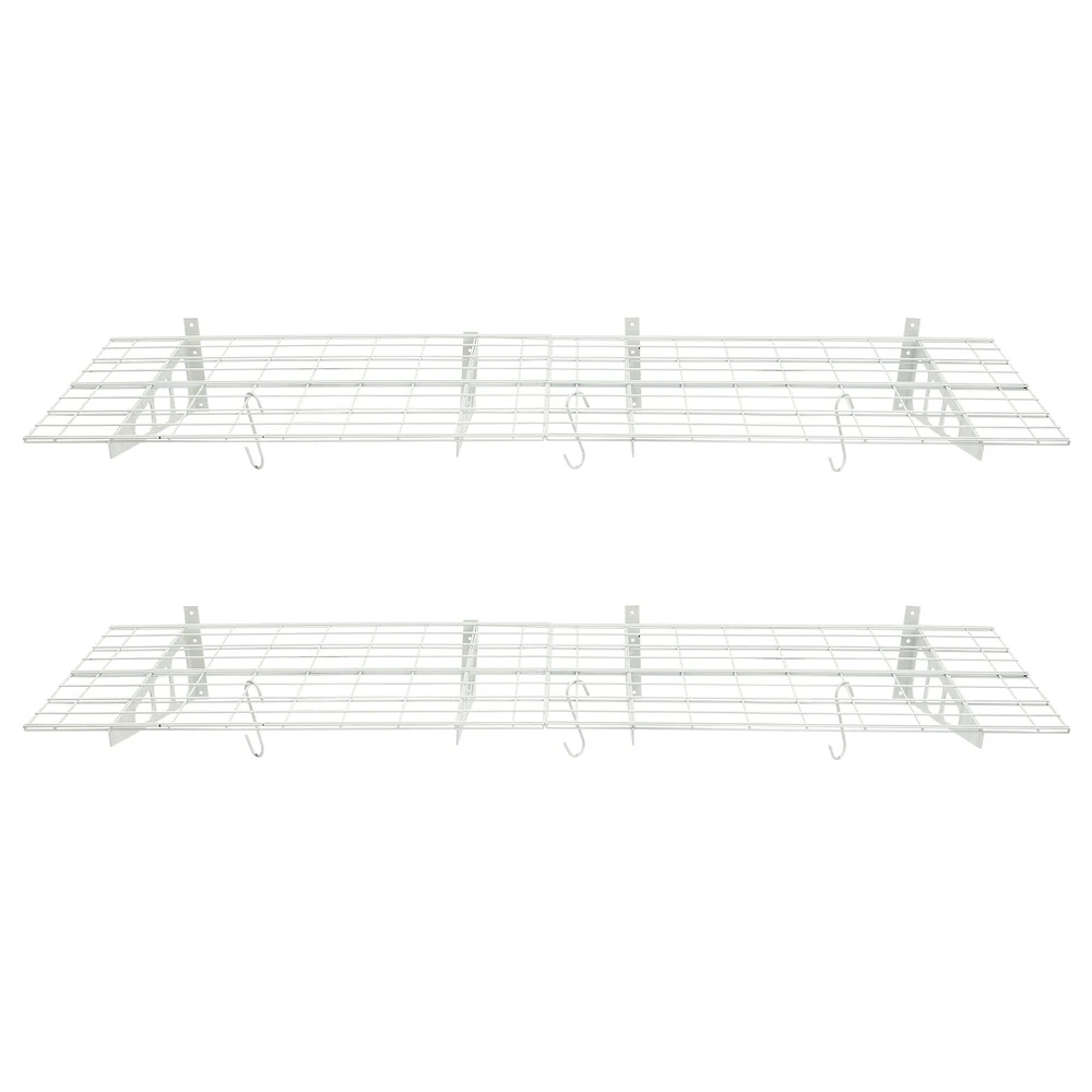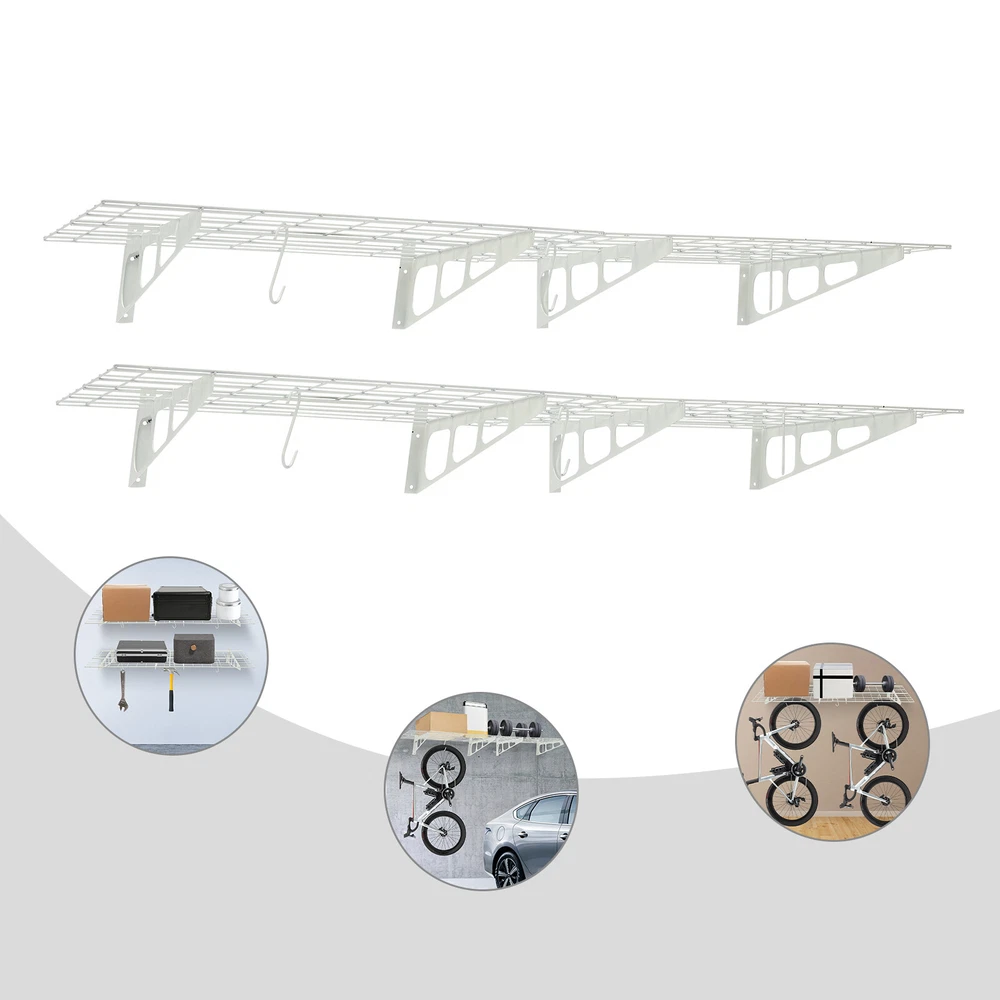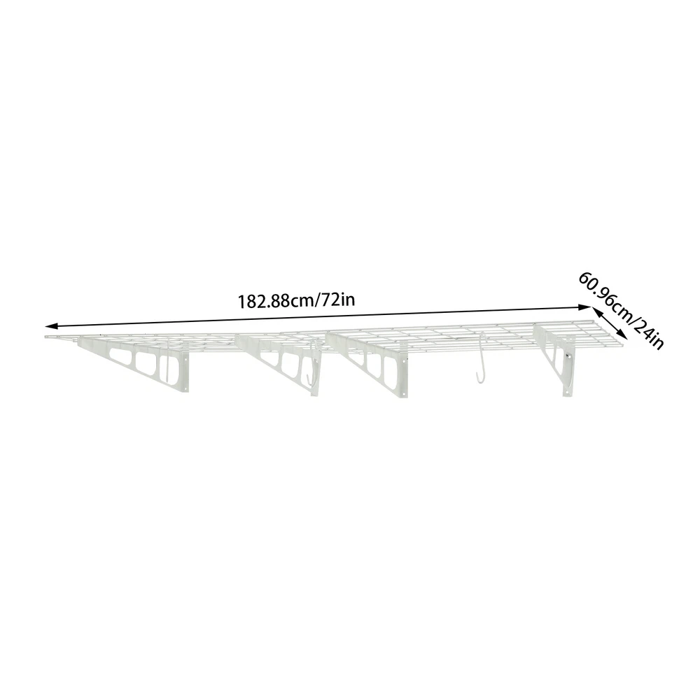 Made of steel wire, the garage storage rack has triangular brackets and zip ties design so it can withstand heavy loads. It comes with six hooks to extend your storage space, meeting your daily storage needs. Meanwhile, the neat grid and sleek white finish add a touch of a stylish yet modern look to your garage. Details Double-Fixed Bars: The horizontal bars are double-layered to keep the product firm and stable. Net Boards: They are not just strong and durable but also boast good ventilation, keeping your items dry and allowing the odor to dissipate in a timely manner. Application It's suitable for hanging or storing bikes, tools, storage boxes, sports equipment, and other items. 2PACKS 400LBS Garage Shelving with Hooks, Garage Storage Rack, Garage Wall Shelf Description Made of steel wire, the garage storage rack has triangular brackets and zip ties design so it can withstand heavy loads. It comes with six hooks to extend your storage space, meeting your daily storage needs. Meanwhile, the neat grid and sleek white finish add a touch of a stylish yet modern look to your garage. Key Features Build to Last: The product is made of steel wire, after the plastic spraying process, with high strength, corrosion resistance, abrasion resistance , and long service life. High Load-bearing Capacity: The high-quality material, sturdy triangular brackets, welding process, and zip ties design allow it to withstand up to 400 lbs without falling, giving you a piece of mind. And each hook can withstand up to 33 lbs. Set of 2: The package includes two-piece garage storage racks with 6 hooks, so you can choose different mounting methods, such as parallel mounting, vertical mounting, separated mounting, which can fully meet your daily storage needs. Large Storage Capacity: The wall-mounted storage rack is 72*24in and the removable storage hooks can be moved to any position, holding toolboxes, sports equipment, gardening tools, and more equipment, flexible to meet your actual storage needs, and saving space in the garage. Stylish Appearance: The sleek white finish and the neat modern grid appearance make it a nice garage decor. At the same time, toolkits and clutter are arranged in a neat and orderly manner, which is more pleasing to the eye. Effortless Assembly: Complete installation accessories, a simple structure, and pre-drilled holes allow you to complete the assembly in a very short time. Adjustable Spacing Design: The spacing between the four triangular brackets can be adjusted according to your actual installation needs. Guaranteed Customer Service: We stand behind all our guests and look forward to assisting you with your purchase. It is our pleasure to answer your confusion and questions. The end of the story between us is not "we sell and you buy". Details Double-Fixed Bars: The horizontal bars are double-layered to keep the product firm and stable. Net Boards: They are not just strong and durable but also boast good ventilation, keeping your items dry and allowing the odor to dissipate in a timely manner. Application It's suitable for hanging or storing bikes, tools, storage boxes, sports equipment, and other items. Specifications Material: Steel Wire, Nylon Surface Treatment: Plastic Spraying Process Color: White Style: Modern Mount Type: Wall Mounted Load-bearing Capacity: 181kg/400lbs Each Hook Load-bearing Capacity: 15kg/33lbs Assembly Required: Yes Number of Items: 2 Number of Hooks: 6 Gross Weight: 17kg/37lbs Product Size: 183*61cm/72*24in Package Size: 95*62*12cm/37.4*24.4*4.7in Package Included 2* Garage Storage Racks 6* Hooks All Accessories for Installation Notes lt is normal that the expansion screw will blow up after the force is applied. Before purchasing, please check the product information carefully to make sure the load bearing of your wall and the installation environment are suitable! Please check the screw hole spacing carefully if it is installed on the studs! Cement walls need to be perforated and thin wood walls or hollow walls need to be supported by a certain thickness of solid wood struts(not included) laid on the front or back of the wall. Please allow the slight color difference caused by the shooting light and 1-3cm error due to manual measurement, and make sure you do not mind before you order. Feature 1 Fast Shipping * Feature * Compact Design,Unique Appearance Country/Region of Manufacture Unknown Tips If you have any questions, please contact us! Brand Unbranded Type Wall Mounted Rack Shelf Type Bracket Shelf, Floating Shelf Color White Material Steel Wire, Nylon Surface Treatment Plastic Spraying Process Style Modern Mount Type Wall Mounted Load-bearing Capacity 181kg/400lbs Each Hook Load-bearing Capacity 15kg/33lbs Assembly Required Yes Number of Items 2 Number of Hooks 6 Gross Weight 17kg/37lbs Product Size 183*61cm/72*24in Package Size 95*62*12cm/37.4*24.4*4.7in Manufacturer Warranty 3 Years