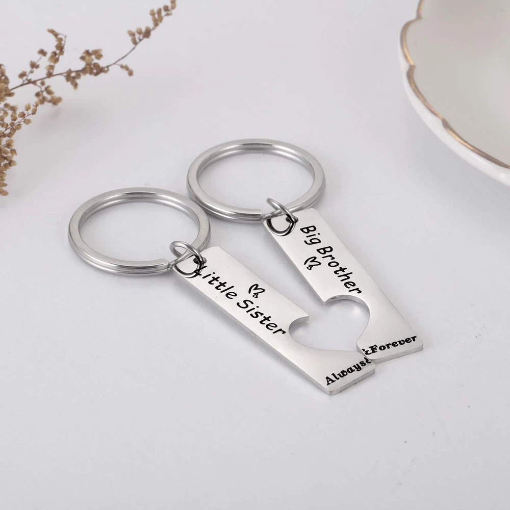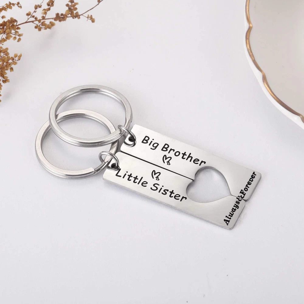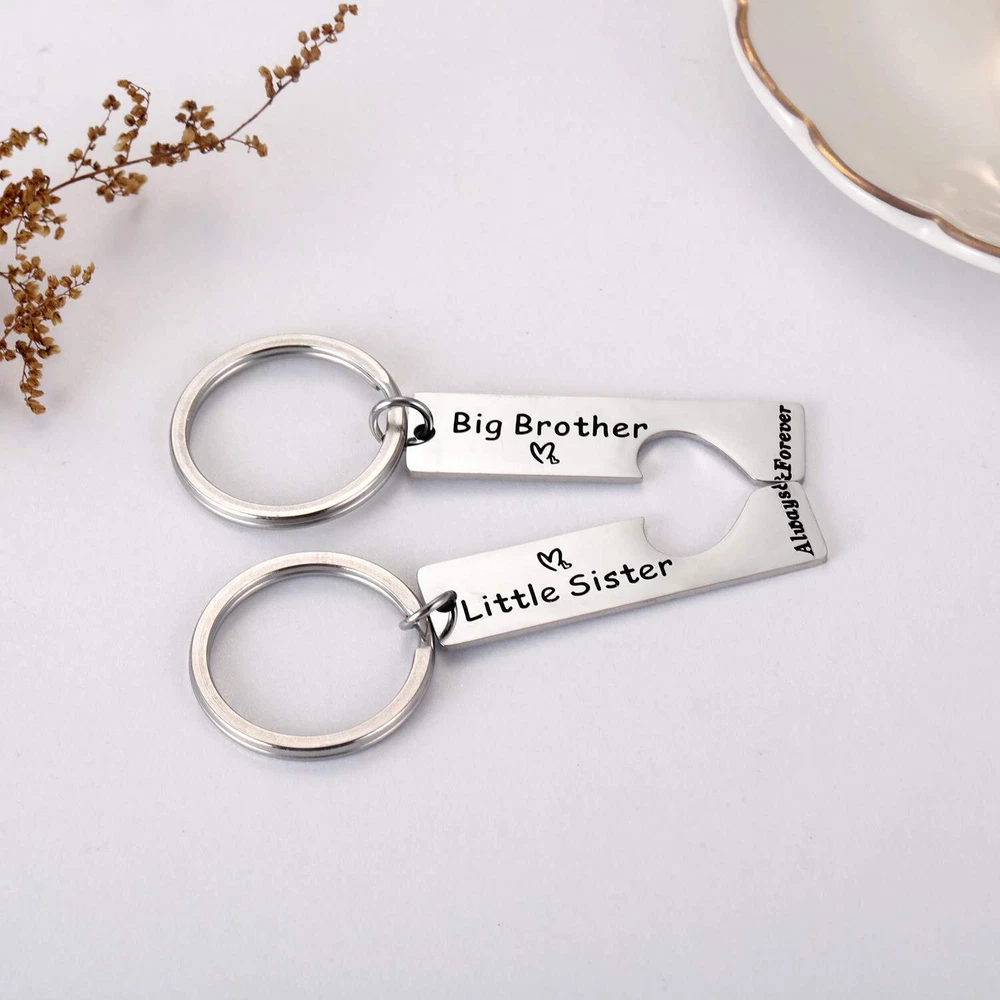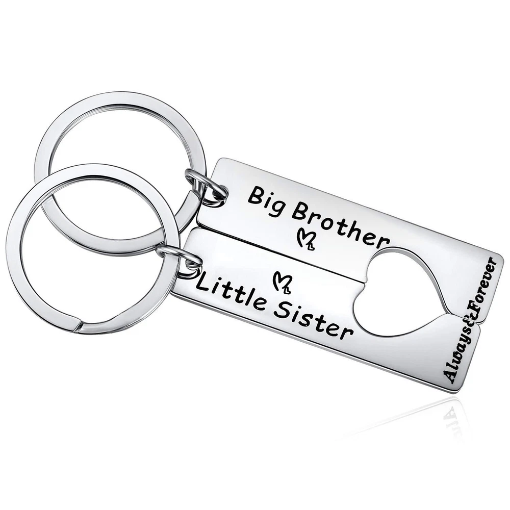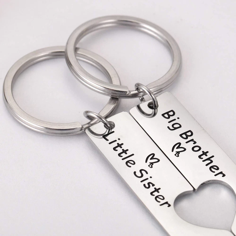2PC Big Brother Little Sister Matching Keychain New Sibling Day Gift Ideas fo...