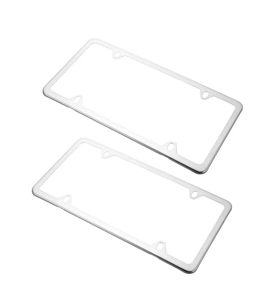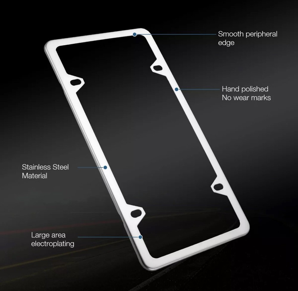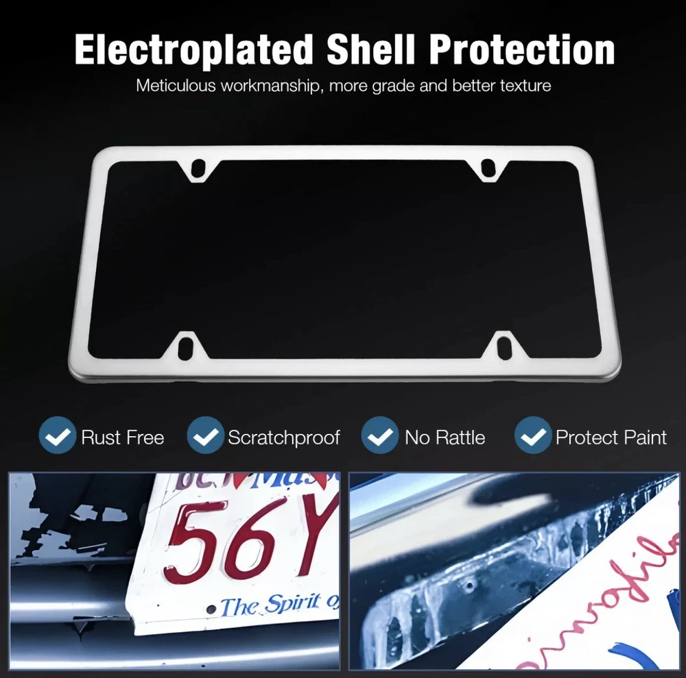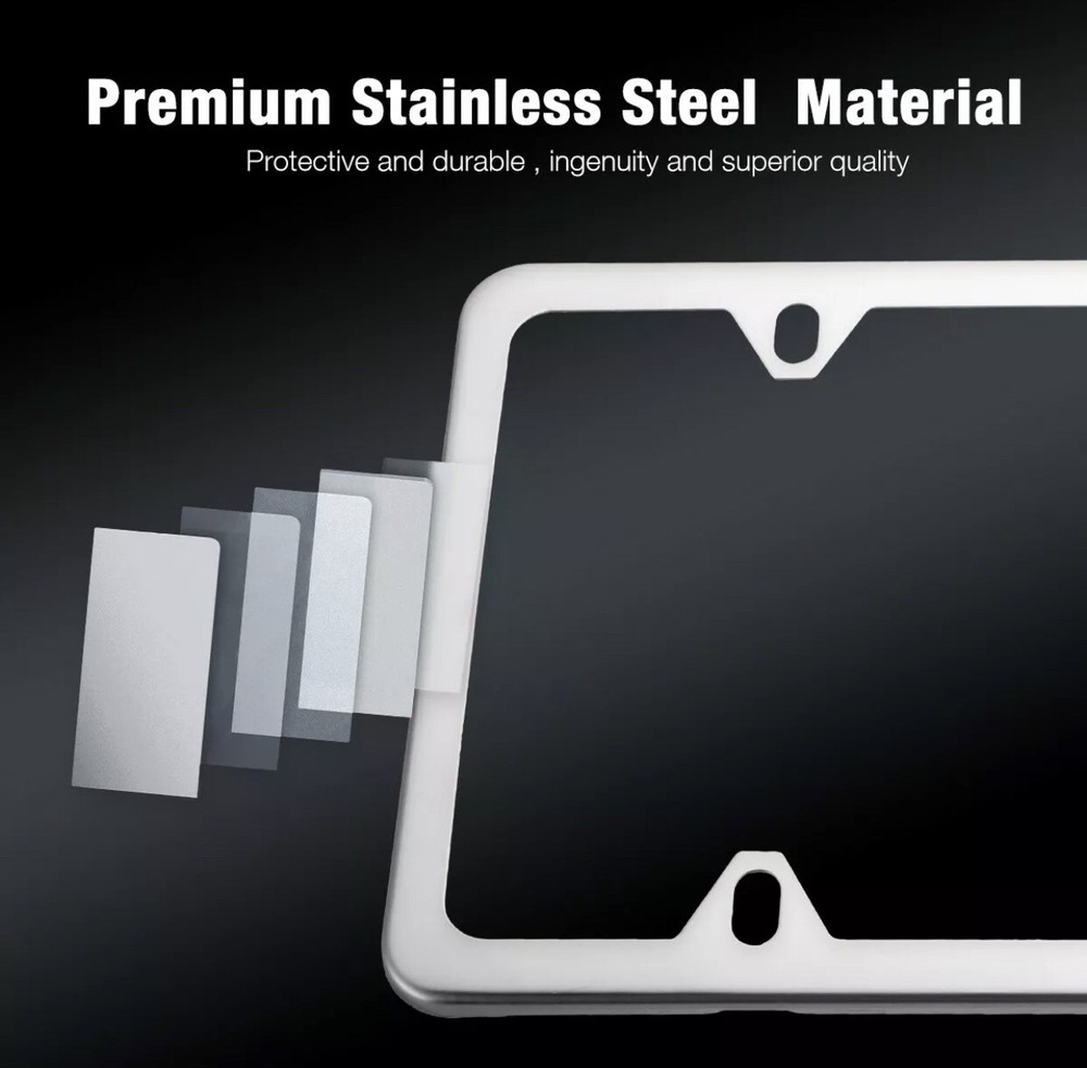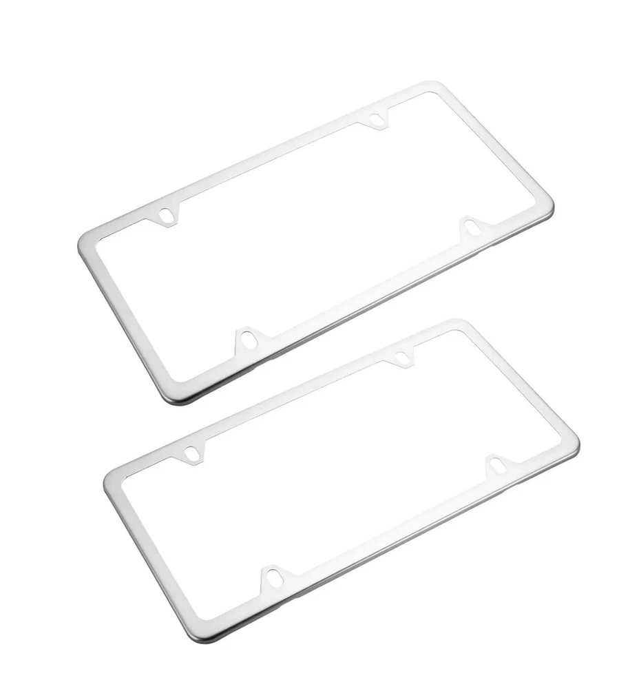 2PC Chrome Stainless Steel Metal License Plate Frame Tag Cover With Screw Caps