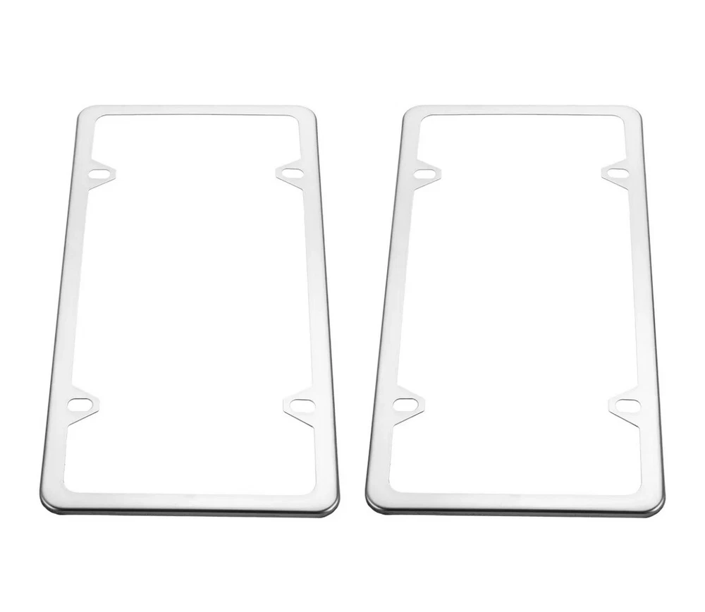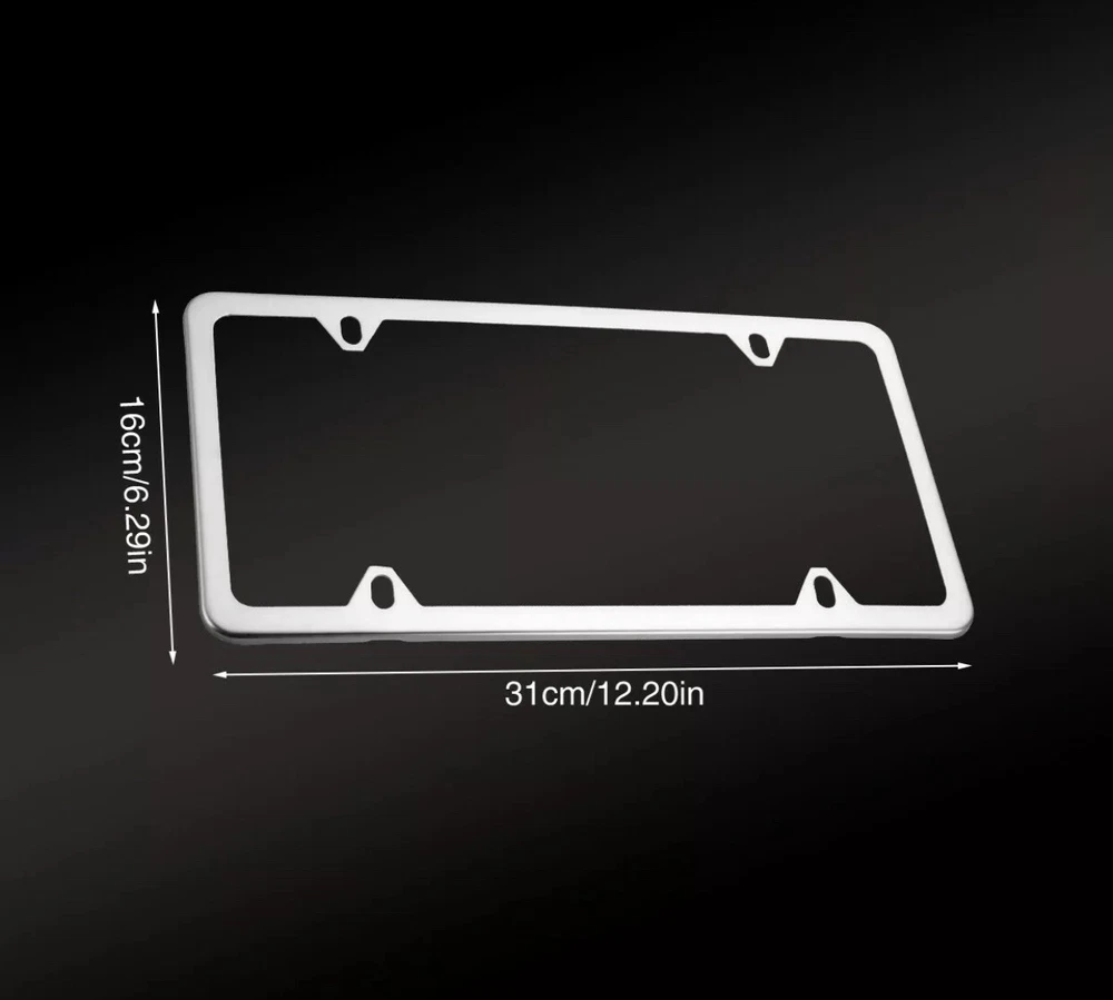 Manufacturer Part Number: B005482 Manufacturer Warranty: 2 Years Material: Chrome, Metal, Stainless Steel Attachment Type: Screw-On Features: Easy-Install Color: Silver Type: License Plate Frame Placement on Vehicle: Front, Front & Back, Rear gtin13: Does not Apply Size: about 31 x 16cm/12 x 6in Finish: Polished Chrome Suitable For: Car, Caravan, Trailer, Truck UPC: Does not Apply Compatibility: All USA and Canadian License Plates Brand: King of Autoparts-Blake