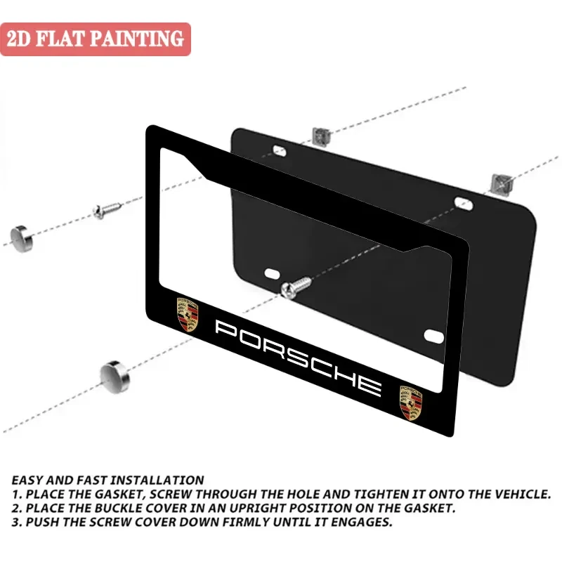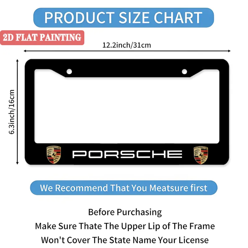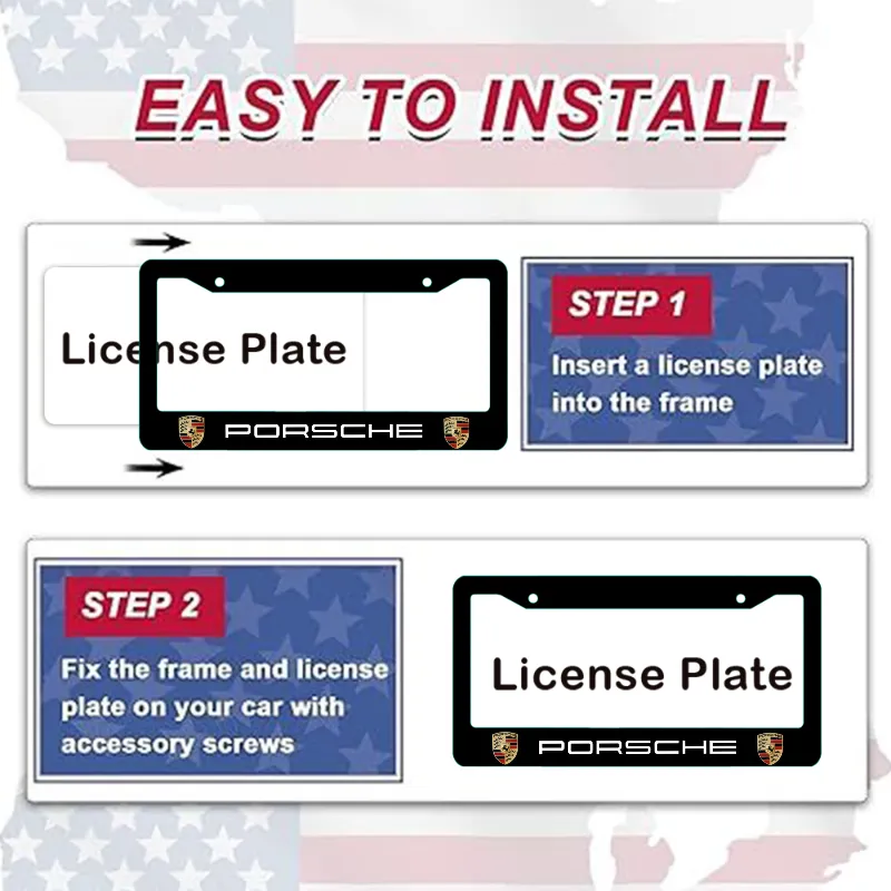 2PC Porsche Black License Frames Car License Plate Frame Holder