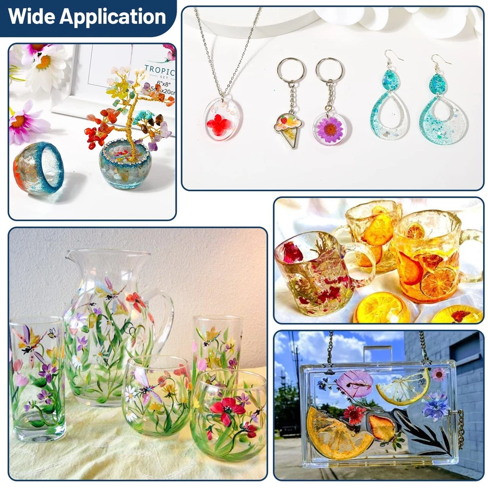 UV Resin Clear Crystal, 2 PCS 100g Upgraded UV Epoxy Resin Glue Hard Type Ultraviolet Fast Curing Solar Cure Sunlight Activated for DIY Jewelry Making Craft Casting Supplies Decoration Product Details Brand: Cruzix Specific Uses For Product: Casting, Craft, Jewelry Material: Epoxy Resin, Resin Compatible Material: Gemstone, Glass, Plastic, Metal Item Form: Liquid Product Dimensions : 4 x 2 x 1 inches; 1 Pounds Item model number : UV Cure Resin Date First Available : April 20, 2022 Manufacturer : Cruzix Best Sellers Rank: #468,081 in Industrial & Scientific (See Top 100 in Industrial & Scientific) #2,498 in Art Glues & Pastes #22,061 in Industrial Adhesives, Sealants & Lubricants #2,498 in Art Glues & Pastes #22,061 in Industrial Adhesives, Sealants & Lubricants Customer Reviews: 4.1 4.1 out of 5 stars 76 ratings What You Get Cruzix resin UV set contains 2 bottles of 100g UV resin glue, which can fully meet your needs for DIY resin projects. Ideal for all resin crafts beginners and lovers. Start enjoying the pleasure of resin glue DIY and share your creative works with us Premium The UV resin clear made of non-toxic materials,self-leveling and self-degassing characteristics, which will help you DIY with UV resin molds more easily. Before curing, the up resin has a slight but non-toxic odor; while after curing, the odor disappears completely, and the UV resin hard doesn't stick or shrink. Your creative resin work would be with a high-gloss glass-like surface that prevents yellowing, scratches, and staining. High Efficiency Design Most importantly, Cruzix UV epoxy resin can be used directly without being measured and mixed in proportion as AB resin; the curing time is shorter, and it only takes 2-4 minutes to cure with the help of 6 watts UV light for resin. Next, its nozzle design is beneficial to squeeze and inject resin rockers UV resin. Third, the flat bottle design is easier to squeeze and use the remaining resin at the bottom of the bottle than a round bottle. Multi-purpose Jewelry Resin It can be widely used in jewelry making (shaker charms, pendants, brooches, earrings, bracelets, etc.), keychains, wings, badge reels, coasters, phone cases, craft decorations, casting and coating, miniatures, resin paintings, etc. It's a good choice as glaze for polymer clay pieces. What's more, it can be mixed with mica powder, colorants, glitter or added dried flowers or small objects to enrich the layering of crafts. Finally, you will get a unique resin craft. Reliable After-sales Service Cruzix is committed to providing you with high-quality crystal clear epoxy resin UV. If you have any questions or problems about our products, please contact us immediately, we promise to provide you with the best solution within 24 hours. Premium Crystal-Clear Fast Curing UV Epoxy Resin Start your extraordinary resin project creation! Why Choose Cruzix Resin UV? It is made of non-toxic materials and will not cause harm to the human body. It is a ready-to-use UV glue, which does not require tedious steps such as measuring and mixing. The self-leveling property of the UV resin clear makes it easier to work with UV resin molds, and its self-degassing property makes the smell disappear completely after curing. It can be cured quickly within 2-4 minutes under a 6-watt UV resin light curing for epoxy, which greatly saves your precious time and improves efficiency. The cured resin craft has a smooth and crystal-clear glass-like finish, which is anti-scratch, anti-staining, and anti-yellowing. Fast Curing under UV Lamp 6W UV resin light: 2-4 minutes Direct Sun (Sunny Day): 5-10 minutes Direct Sun (Cloudy Day): 20-40 minutes Note: 1. UV resin must be used with clear molds, otherwise UV light will not penetrate and the parts will not be cured. 2. The curing time is based on the thickness of your resin project. The thicker your resin project is, the longer the curing time it requires. Package Includes: 2 bottles of 100g UV resin hard Tips: Please keep the resin glue out of the reach of children to prevent them from accidentally using or eating. In addition, children need to be accompanied by an adult to use it