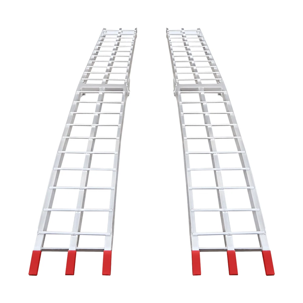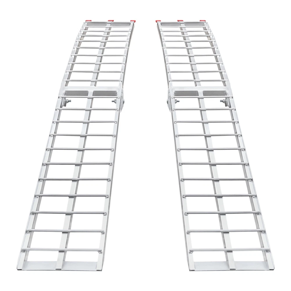 2PCS 12"x89" Aluminum Loading Trailer Ramps For Motorcycle ATV/UTV Truck 3000LBS Welcome to our store^-^ Set of 2, Loading Truck Ramps, Heavy Duty Motorcycle Ramps, Folding Ramps 89*11in 3000LBS Description This set of trailer ramps is built with aluminum alloy for superior strength and stability, giving the ramp excellent weight capacity ( EACH IS ABOUT 1500 LBS ) and longevity. The ramp can be easily folded for storage and portability, and the non-slip design increases friction, preventing your vehicle from slipping and ensuring your safety during use. This set includes two ramps for flexible use in different situations, which are very suitable for both two-wheelers and four-wheelers. Key Features High-quality Material: It is made of high-quality aluminum alloy with polishing and welding processes, which is sturdy, durable, and resistant to corrosion and rust, giving our product a long service life. Large Load Bearing: Its strong structure gives this product a high load-bearing capacity (each is about 1500 lbs) for transporting small four-wheelers or motorbikes. Smooth and Stable Transporting: Its clearance space, round crossbar design, and anti-slip patterns on the foot part allow the wheels to roll more smoothly without sliding, saving you the labor of transporting your motorcycle. SET OF 2: The Package Includes Two Pieces of Ramps that allow for transporting a two-wheeler or a four-wheeler. Easy to Use: Ramps are assembly-free . You simply unfold them, install them on the back of the trailer, tie straps, and then you can transport your motorbike after confirming it is installed firmly. Convenient Design: The foldable design makes our ramps easy to move and store. Details Safety Straps: These heavy-duty straps can keep the ramp firmly attached to the back of the trailer and ensure safe transport without collapsing or buckling. They can also help bind the folded ramps and allow you to move them more easily. PP Ends: These anti-slip PP ends provide extra security while preventing the back of the trailer from scratching or damage. Application Each of the ramps' load-bearing capacity is about 1500 lbs, which makes transporting motorcycles, dirt bikes, mini 4-wheelers, trailers, ATVs, UTVs, garden tractors, and lawnmowers easy with this set of ramps. Specifications Color: Silver Material: Aluminum Alloy, PP Each Load Bearing Capacity: 680.39kg/1500lbs Process: Welding, Polishing Suitable Width of Wheels: <29cm/11 inches Assembly Required: No Each Product Size(Folded): 30.48*116cm/12*45.7inch Each Product Size(Unfolded): 30.48*228cm/12*89.8inch Packaging Size: 119*32*33cm/46.85*12.6*12.99inch Gross Weight: 20kg/44lbs Package Included 2* Trailer Ramps 2* Straps Payment Delivery details Terms of sales About us Contact us Payment We accept ebay payment 。 Fees such as import duties, taxes are not included in the item price or shipping costs. These charges are the buyer's responsibility. Delivery details Shipping: 2-9 working days to: USA Terms of sales We maintain high standards of excellence and strive for hundred percent customer satisfaction. Feedback is very important to us. We hope that you contact us immediately before you give neutral or negative feedback, so that we can address your concerns. It is impossible to address issues if we do not know about them! About us Your satis faction is our ultimate goal. We work hard to earn your trust and future business. Our certified technicians have tested each item before shipping. The unit comes with 1 year limited warranty on all manufacturing defects. a) If you receive a defective item, you may return it or ask for a discount. Please contact us within 14 days after you receive the package. b) What you returned must be intact and in its original packaging as re? u. Customer is responsible for shipping costs of the returned item. c) We will cover the cost of shipping back t with the shipping rate indicated in the registration page. We will send you a new unit or refund the full payment you paid. Thank you. Contact us Business Hour Business Hour: Monday To Friday: 8:30 AM to 5:00 PM (Beijing China time) Due to time zones, our reply to your questions may not be immediately. But within above working time, we will reply your email within 24 hours. If it's non-workdays, please kindly be patient and wait till Monday. Please contact us with ebay message. Please feel free to contact us if you have any questions. Monday To Friday: 8:30 AM to 5:00 PM (Beijing China time) Due to time zones, our reply to your questions may not be immediately. But within above working time, we will reply your email within 24 hours. If it's non-workdays, please kindly be patient and wait till Monday. Please contact us with ebay message. Please feel free to contact us if you have any questions. Warranty 10 years Manufacturer Warranty 10 Years Item Location CA /NJ /Austell Note Do not send to Brazil Feature 4 FAST SHIPPING FROM US LOCAL WAREHOUSE! Feature 3 Stable performance,Durable 1.Feature High-quality Part Type Trailer Ramp Brand Unbranded Manufacturer Part Number QC9PUS8-RWD-YB8 Country/Region of Manufacture Unknown Type Pair of Ramps Material Aluminum Alloy, PP Each Load Bearing Capacity 680.39kg/1500lbs Process Welding, Polishing Suitable Width of Wheels <29cm/11 inches Assembly Required No Weight 20kg/44lbs California Prop 65 Warning Does not apply Shipping Notice Can not ship to Puerto Rico,Alaska/Hawaii UPC 756804829452