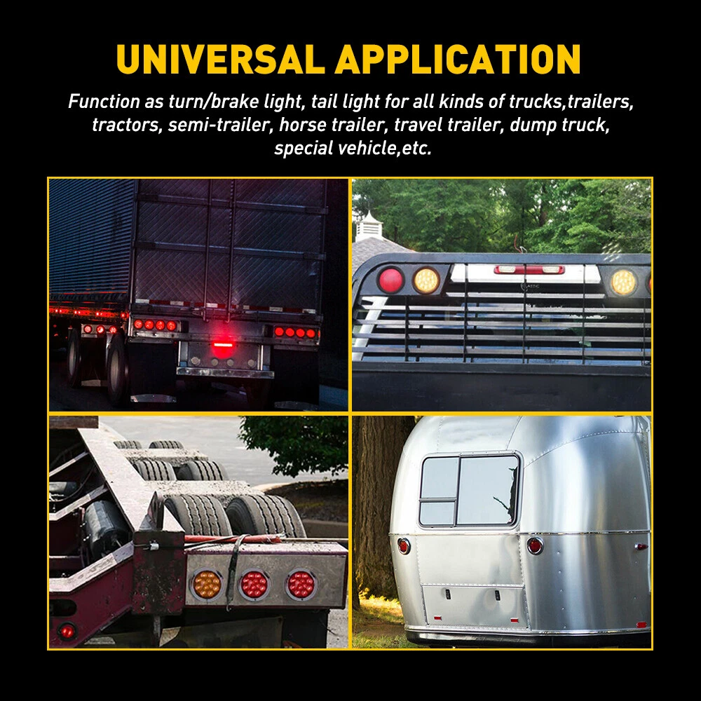 Specification Color: Red Voltage: 12V Number of Bulb: 12 LED Material: ABS+PC+Rubber Waterproof rate: IP67 Outer Diameter: 130mm/5.1 inch Inner Diameter: 105mm/4.1 inch Function: Stop/ Turn/ Tail Light/ Backup Reverse light Placement on Vehicle: Front/Rear, Left/Right Suitable model: Universal for Trucks, trailers, tractors, semi-trailer, Dump Truck, bus, boat, special vehicle, and etc. Fits for heavy duty trucks like Peterbilt, freightliner, international ,Kenworth, mack, and so on Wire Connection: Black wire : low brightness (red) Red wire : high brightness (red) White wire : negative pole 2pcs 4inch LED Red Round Light Brake Stop Turn Tail Lamp Fit Truck Waterproof Specification Color: Red Voltage: 12V Number of Bulb: 12 LED Material: ABS+PC+Rubber Waterproof rate: IP67 Outer Diameter: 130mm/5.1 inch Inner Diameter: 105mm/4.1 inch Function: Stop/ Turn/ Tail Light/ Backup Reverse light Placement on Vehicle: Front/Rear, Left/Right Suitable model: Universal for Trucks, trailers, tractors, semi-trailer, Dump Truck, bus, boat, special vehicle, and etc. Fits for heavy duty trucks like Peterbilt, freightliner, international ,Kenworth, mack, and so on Wire Connection: Black wire : low brightness (red) Red wire : high brightness (red) White wire : negative pole Features: *High brightness: Each led light has 12 high quality LEDs to output a super bright light, which sealed with a rubber grommet. *Superior material: Durable PC lens with rubber grommet housing welded together to ensure a permanent and water-proof seal. *Waterproof: The tail light is highly silicon sealed with an IP67 waterproof rating, which works even under extreme conditions such as rain and snow. *Easy to install: Come with rubber grommet & plug,drilling and hardwiring are not required *Wide application: Compatible for trucks, trailers, tractors, semi-trailer, Dump Truck, bus, boat, special vehicle, and etc. Fits for heavy duty trucks like Peterbilt, freightliner, international ,Kenworth, mack, and so on Note: Please check the detail information carefully before purchasing Please allow 1-2mm in size measurement chart for variance due to manual measurement Please excuse us from any possible typos and unintentional misinterpretations Your satisfaction is our utmost concern, please feel free to contact us for any questions and concerns Package Include: 2x 4" 12 LED Round Tail Lights Item Specifics Brand Unbranded Type tail light Placement on Vehicle Rear Light Color Red Material ABS PC Rubber Universal Fitment Yes Items Included 2x 4" 12 LED Round Tail Lights Manufacturer Warranty 1 Year Size As shown in the picture Fitment Type Direct Replacement Waterproof rate IP67 Voltage 12V Features Waterproof Outer Diameter 130mm/5.1 inch Warranty 1 Year Inner Diameter 105mm/4.1 inch Lighting Technology LED Number of Bulbs 12 LED Number of Bulbs 12 LED Payment We can accept payment by credit, debit, and gift cards; Apple Pay, Google Pay, PayPal, and PayPal Credit. Shipping 1. All items will be shipped in 24 hours after receiving your payment . 2. We ship this item to US only via USPS first class mail. It usually takes 3-5 working days to deliver. Returns 1. We offer 60 days return policy. 2. Please contact us within 60 days from the date you receive your package if you have any questions with the products . 3. Refund will be sent after we got your returned package. 4. All returned items should be in the original packaging with tracking number. Contact Us We work from Monday - Saturday 9:00AM - 6:00PM PST, but we will reply you once we get your message .There will be some delay on response if you send message or E-Mail on Sunday. DESCRIPTION PAYMENT SHIPPING RETURN POLICY CONTACT US Hot item Help & Info Payment Policy Shipping Policy Return Policy FAQ About Us 2pcs 4inch LED Red Round Light Brake Stop Turn Tail Lamp Fit Truck Waterproof Specification Color: Red Voltage: 12V Number of Bulb: 12 LED Material: ABS+PC+Rubber Waterproof rate: IP67 Outer Diameter: 130mm/5.1 inch Inner Diameter: 105mm/4.1 inch Function: Stop/ Turn/ Tail Light/ Backup Reverse light Placement on Vehicle: Front/Rear, Left/Right Suitable model: Universal for Trucks, trailers, tractors, semi-trailer, Dump Truck, bus, boat, special vehicle, and etc. Fits for heavy duty trucks like Peterbilt, freightliner, international ,Kenworth, mack, and so on Wire Connection: Black wire : low brightness (red) Red wire : high brightness (red) White wire : negative pole Features: *High brightness: Each led light has 12 high quality LEDs to output a super bright light, which sealed with a rubber grommet. *Superior material: Durable PC lens with rubber grommet housing welded together to ensure a permanent and water-proof seal. *Waterproof: The tail light is highly silicon sealed with an IP67 waterproof rating, which works even under extreme conditions such as rain and snow. *Easy to install: Come with rubber grommet & plug,drilling and hardwiring are not required *Wide application: Compatible for trucks, trailers, tractors, semi-trailer, Dump Truck, bus, boat, special vehicle, and etc. Fits for heavy duty trucks like Peterbilt, freightliner, international ,Kenworth, mack, and so on Note: Please check the detail information carefully before purchasing Please allow 1-2mm in size measurement chart for variance due to manual measurement Please excuse us from any possible typos and unintentional misinterpretations Your satisfaction is our utmost concern, please feel free to contact us for any questions and concerns Package Include: 2x 4" 12 LED Round Tail Lights Payment Shipping Returns Contact Us We can accept payment by credit, debit, and gift cards; Apple Pay, Google Pay, PayPal, and PayPal Credit. 1. All items will be shipped in 24 hours after receiving your payment . 2. We ship this item to US only via USPS first class mail. It usually takes 3-5 working days to deliver. 1. We offer 60 days return policy. 2. Please contact us within 60 days from the date you receive your package if you hav