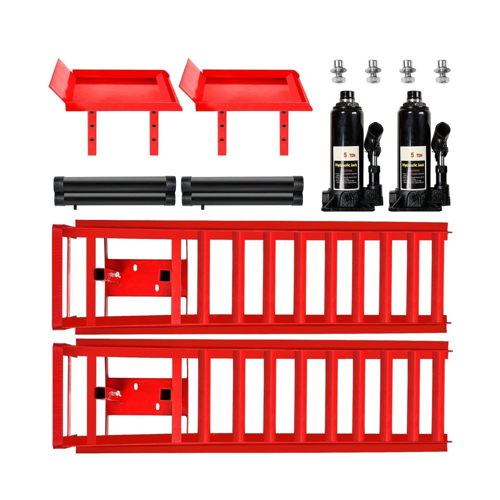 2PCS 5T 11070lbs Hydraulic Car Ramps, Heavy Duty Hydraulic Vehicle Ramps Lift Ramp, Portable Car Ramps for Oil Changes, Car Lifts for Home Garage Description 2PCS 5T 11070lbs Hydraulic Car Ramps, Heavy Duty Hydraulic Vehicle Ramps Lift Ramp, Portable Car Ramps for Oil Changes, Car Lifts for Home Garage Features: Adjustable: Hydraulic car ramp lifts 11,070 lbs; height of hydraulic sectionadjustable from 9.84-14.96 in Dimensions: Base plate length: 47.27 inches Base plate width: 10.83 inches Platform length: 15.3 inches Platform width: 9.4 inches High Quality: This heavy-duty automotive repair ramp is constructed with a robust steel frame and features a spray-painted finish for corrosion resistance. Offering exceptional durability and strength, it ensures long-term reliable performance. Suitable for all types of chassis maintenance and inspection tasks. Easy Installation: This heavy-duty hydraulic lift is simple to install, operate, and maintain, making it an ideal choice for repair work and a favorite among automotive technicians. Premium After-Sales Service: Our hydraulic car repair ramps are suitable for professional repair shops and home garages. We take pride in delivering high-quality products. Should you have any questions about our car ramps, please feel free to contact us. Product Details: Brand: Worcest Material: Alloy Steel Color: Flame Item Weight: 83.8 Pounds Product Dimensions: 14.57"L x 10.83"W x 45.27"H Brand: Worcest Material: Alloy Steel Color: Flame Item Weight: 83.8 Pounds Product Dimensions: 14.57"L x 10.83"W x 45.27"H Load Capacity: 1.107E+4 Pounds Is Foldable: No UPC: 717067763280 Item Weight: 83.8 pounds Manufacturer: Worcest Item model number: 001 Date First Available: November 7, 2025 Delivery We Do Not Ship Outside of the Continental US. Return Policy All items qualify for returns within 30 days of receipt. Seller is responsible for return shipping on any item that is not damaged. Feedback We take our reputation seriously, we buy and sell online, so we understand the value of trust. If you are unsatisfied with your order, please contact us and we will work with you to resolve it to your satisfaction.