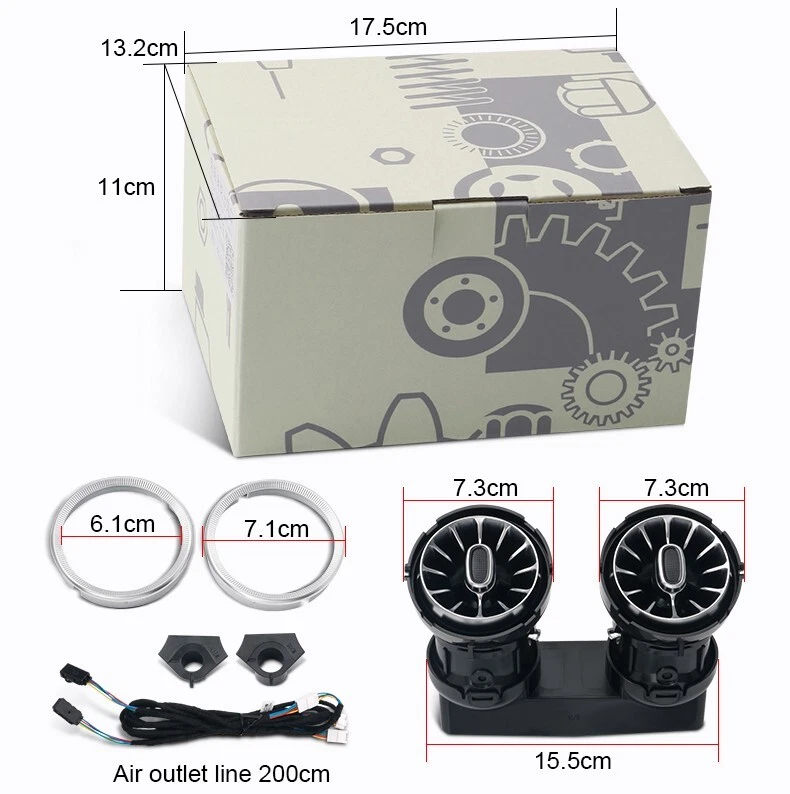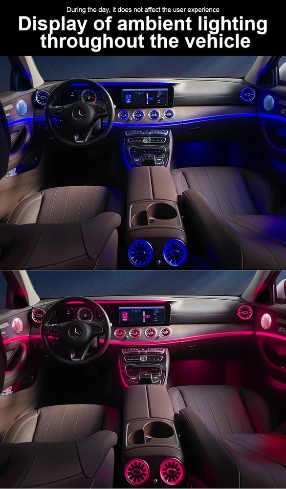 Features: 100% Brand New in Box W213 2PCS/Set 64 Colors NEW Version High Quality Plug and Play Interior Rear Dashboard Air Vent with Ambient Light 1:1 Replacement; NO Modification Required Fitment: For Mercedes Benz E-Class W213 2017 2018 2019 2020 2021( 64 Colors ) - OEM design, fit original air vent position perfectly - Light color is synchronized with original ambient light - Light color and brightness can be controlled by original Command knob Package included: 2 PCS/Set Rear Air Vents with Ambient Light NOTE: NOT Including Installation Guide or Manual. Professional installation is highly recommended .