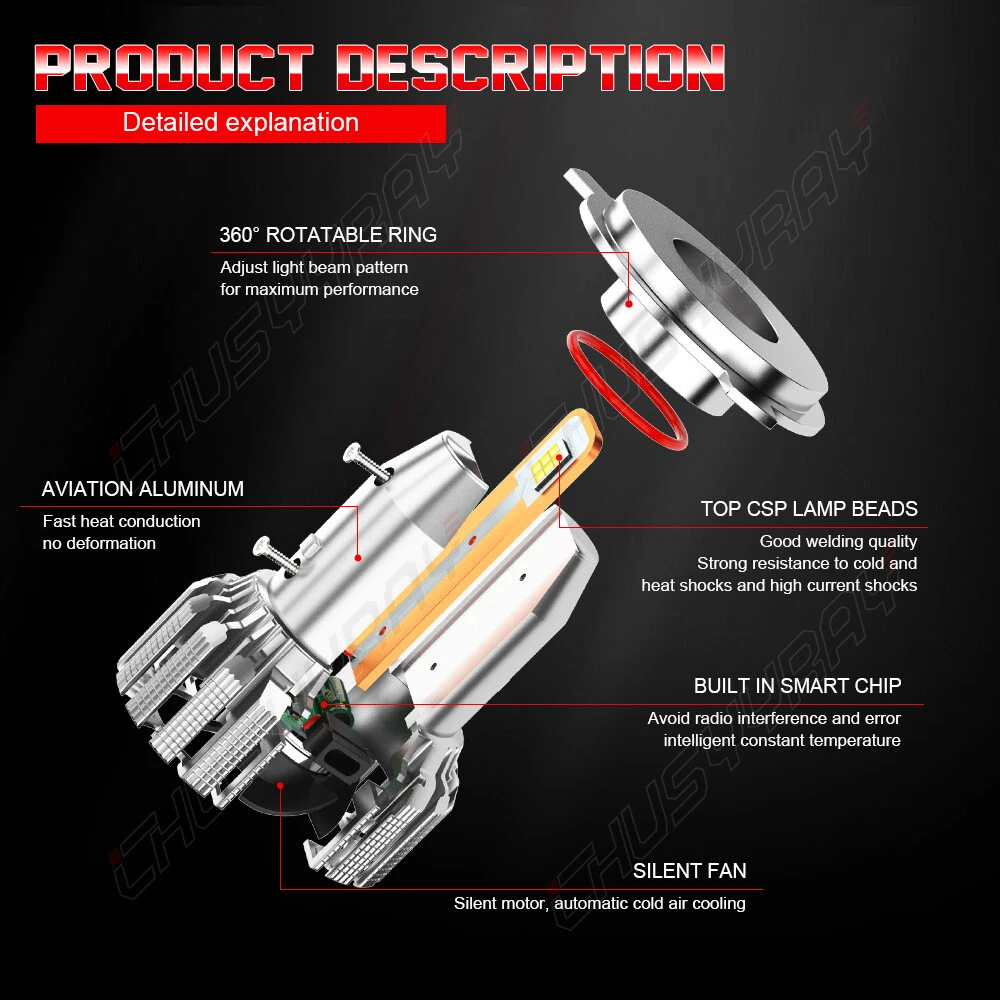 7" Inch Universal Round Cut Chrome Front Clear Glass Lens Diamond Headlights Kit 7" Inch Round Headlight Housing *Black Chrome housing with clear lens design , Lens is made out of clear glass. *Enhance visibility during night time, heavy rain, snow, or dense fog. Precision optics offers a highly controlled concentration of light to enhance visibility. *Direct replacement, easy installation. *High quality O.E grade materials to withstand the most rigorous weather *Compatible For Manufacturer Headlight Part Numbers # H6014 / H6015 / H6024 *These headlights are set up for high and low beams, just simply plug them into your original wiring. *This design is perfect replacement for old sealed-beam round headlight on any vehicle that uses standard 7” bucket. H4 HB2 9003 LED Headlight Bulbs Specifics -Color: 6000K Cool White -Power Consumption: 50 Watt -Luminosity: 10,000 LM -360 Degree / U6S Series CSP Chip Perfect Beam Angle -H4 - Dual Beam Function (You will have HIGH AND LOW!) -500% Brighter than Stock Halogen -Built in IC Circuit (Current Regulator)-Prevents LED Damage From Voltage Variations & Spikes. -Lifespan: 50,000 Hours -Operating Voltage: DC 12V / 24V -Amperage: 1.9A - 2.9A -Maintenance free, Waterproof IP67, Shockproof -Warranty 5 years Top Features 300% Brighter than Halogen: 50W 6000K cool white, 1w=100lm, with clear visibility and perfect beam pattern, so you can enjoy good vision while driving at night. Super Focused Beam Pattern: U6Splus led bulbs with 1.0mm ultra-thin centered light emitting. No dark spots or foggy light, do not blind oncoming traffic. 10mins Easy Installation: The LED bulb’s almost 1:1 design as halogen. Plug and play. No other tools are needed 360° Adjustable Beam Pattern: Adopts 360° adjustable locker ring to ensure the best beam pattern. except H1, H3, 880, PSX26W 50,000 hours Lifespan: U6S plus comes with a copper base board, cold pressed aluminum heat sink and 12,000rmp cooling fan. Better solve the dimming or over heated of led bulbs. Parcel Content: - 2 * 2-side H4 Headlight Bulbs - 2 * 7" inch headlight housing On Nov 19, 2024 at 20:57:31 PST, seller added the following information: