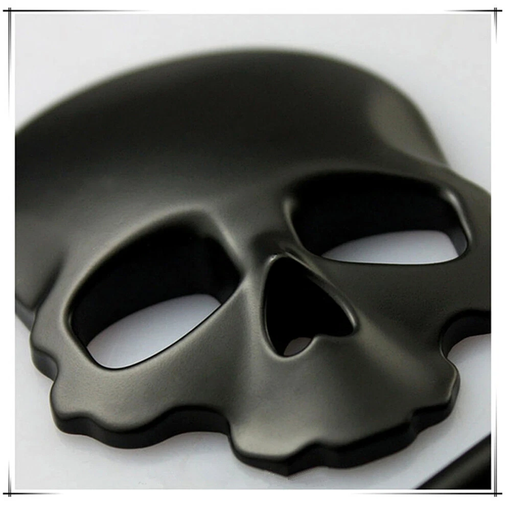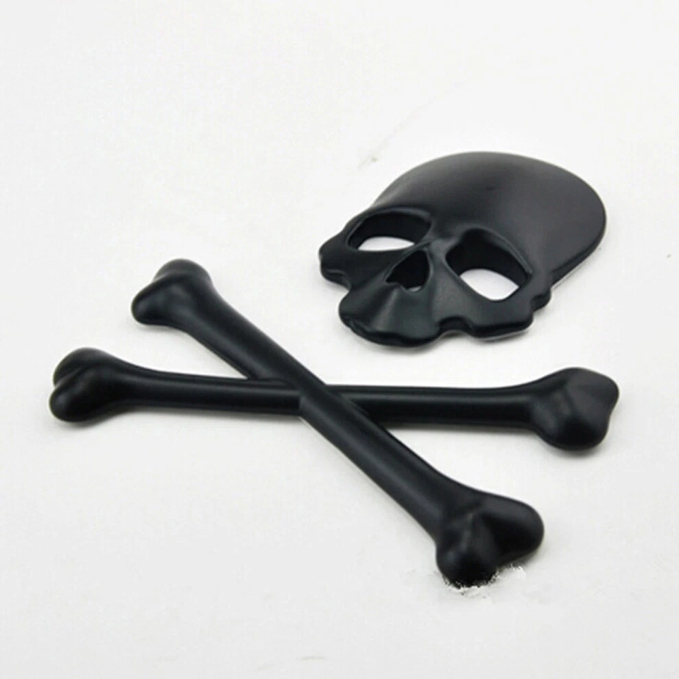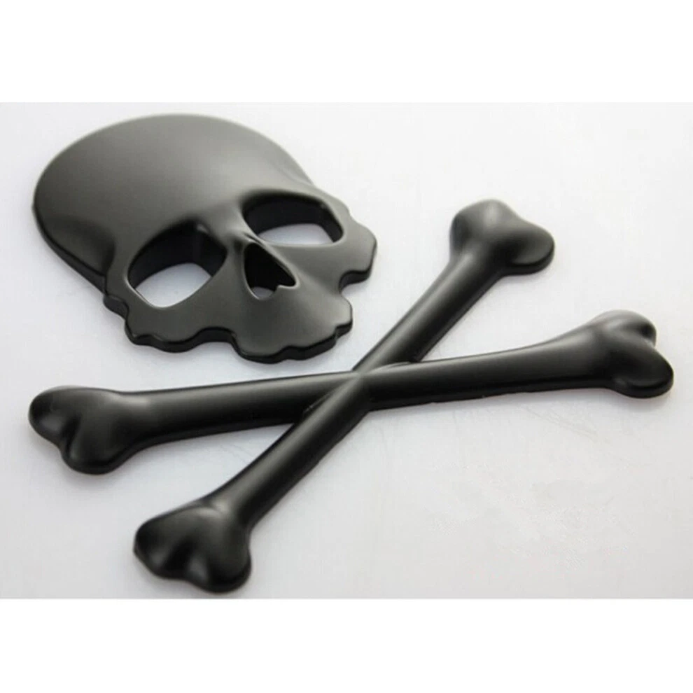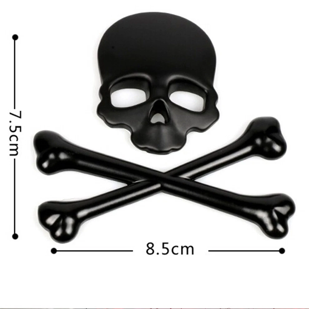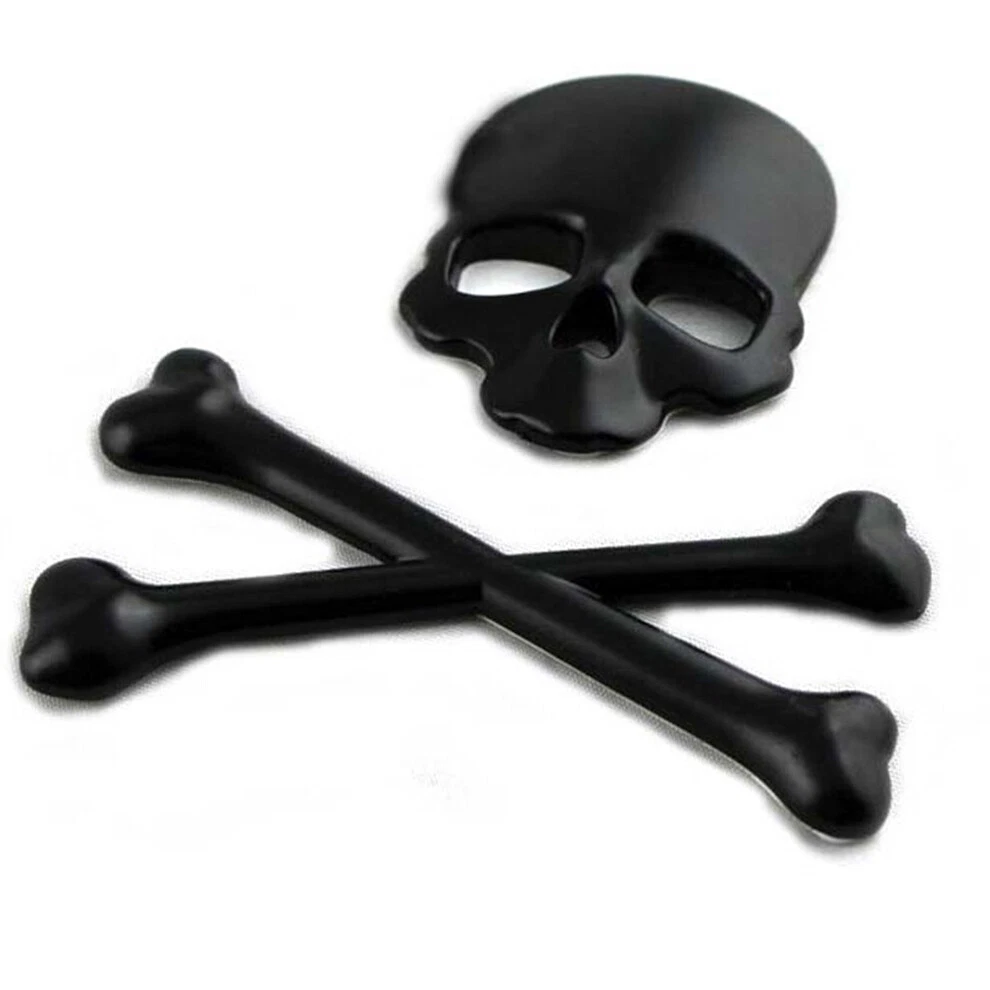 2PCS Black 3D Crossbones Skull Metal Logo Emblem Badge