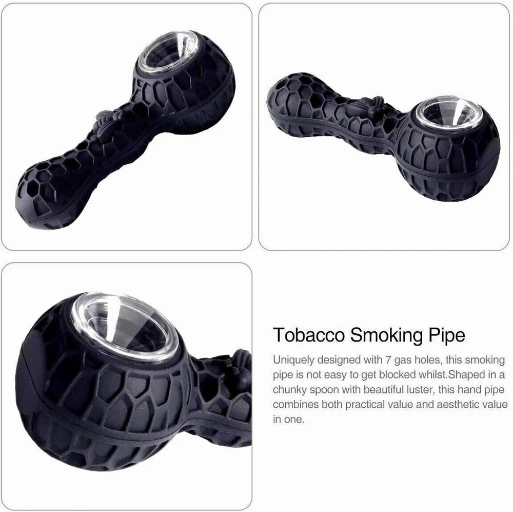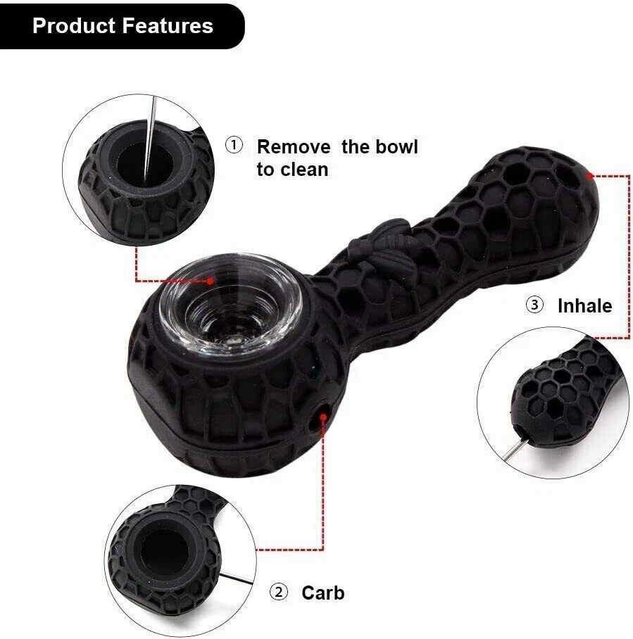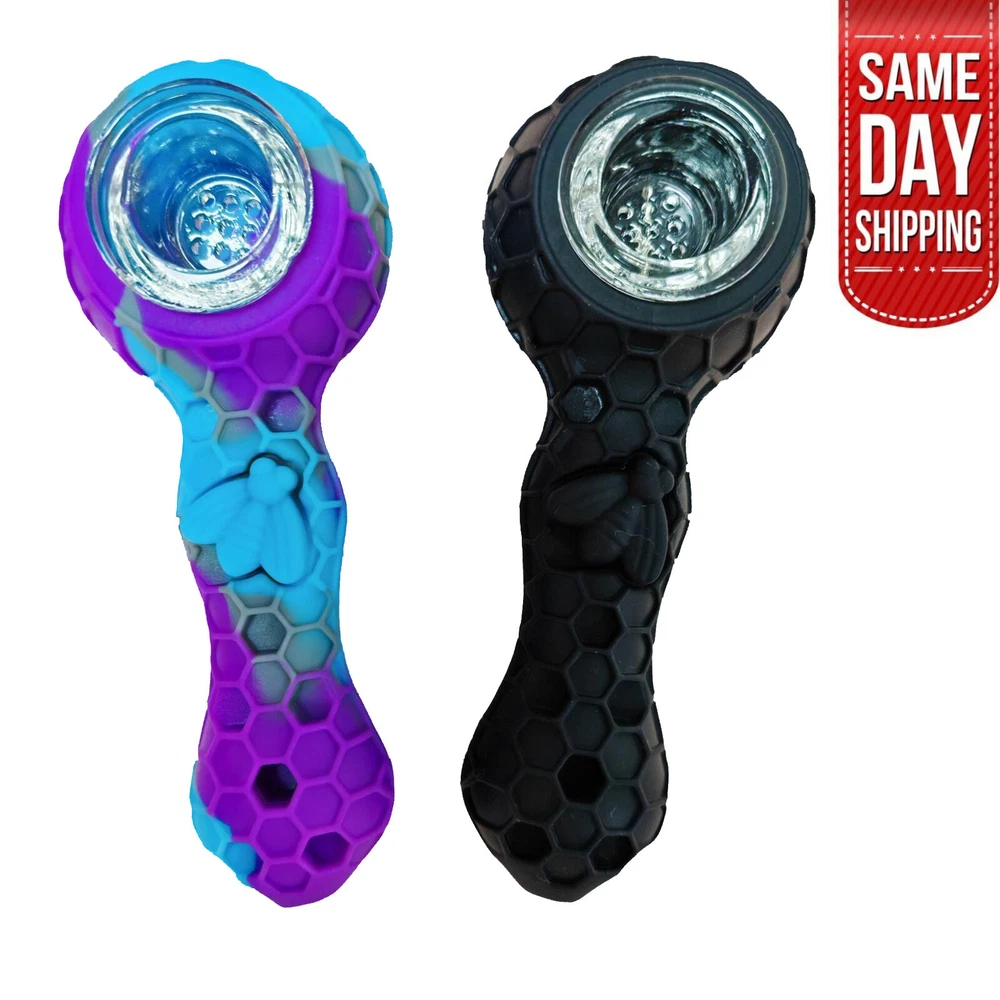 Description: We manufacture all kinds of silicone pipes for years Product Name?Honeybee Silicone Smoking pipe Color: Blue&Purple+Black High temperature (low temperature) characteristics, the highest heat resistance With longer life than other materials; greasy, corrosion-resistant, Conveniently sized 100% handmade and Real picture. Top quality 100% food grade silicone Weight 70g Length4.3 inch CharacteristicsHigh temperature resistance Package Include: 2 pipe with 9 holes glass bowl and clean tool On Aug 6, 2024 at 11:47:29 PDT, seller added the following information:
