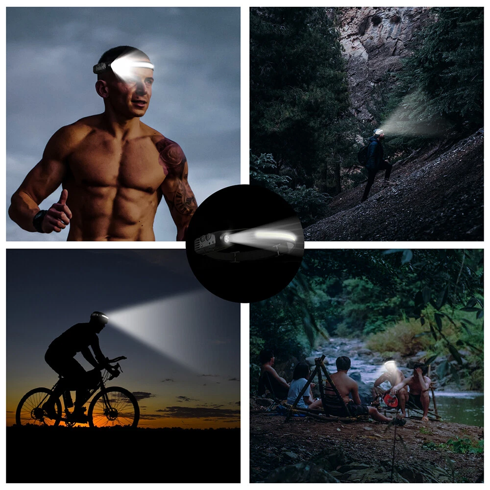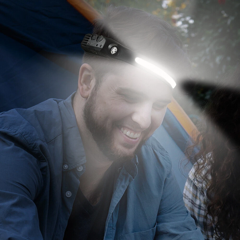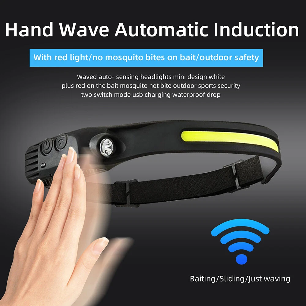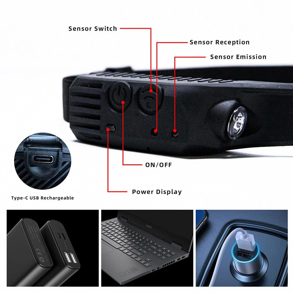 Not e : Only supports 5V 2A chargers. Do not use fast charging, as it may damage the battery of the headlights, leading to inability to charge or use. Description : Hands Free: Thanks to the built-in motion sensor, our rechargeable headlight can be easily turned on/off by waving your hand by running the side of the headlight. First turn on the main switch, adjust to the light you need, then turn on the sensor switch for a few seconds to activate the motion detection mode. When your hands are oily or dirty or you are wearing gloves, the sensor mode will perfectly solve the trouble of needing to touch the button for you. Built-in Battery: The headlamp built-in 1200mAh rechargeable lithium battery, Type-C USB charging cable included. Fully charged the rechargeable LED head torch for 2.5 hours and use up to 6-8 hours(depends on the light mode you use). Comfortable and lightweight: The weight of the headlight is only 100 grams, so you can easily wear it on your head without pressure. Adjustable bands to satisfy people from different head circumference, it will provide the maximum comfort. Different modes of flashlights can meet the light needs of different scenes, which is one of the must -have tools for the family. Multifunctional Usages: Head Torches LED Super bright Rechargeable extremely suitable for jogging , cycling , camping,fishing head torch and other long time night activities. Only supports 5V 2A chargers. Package included: 2x COB headlamps