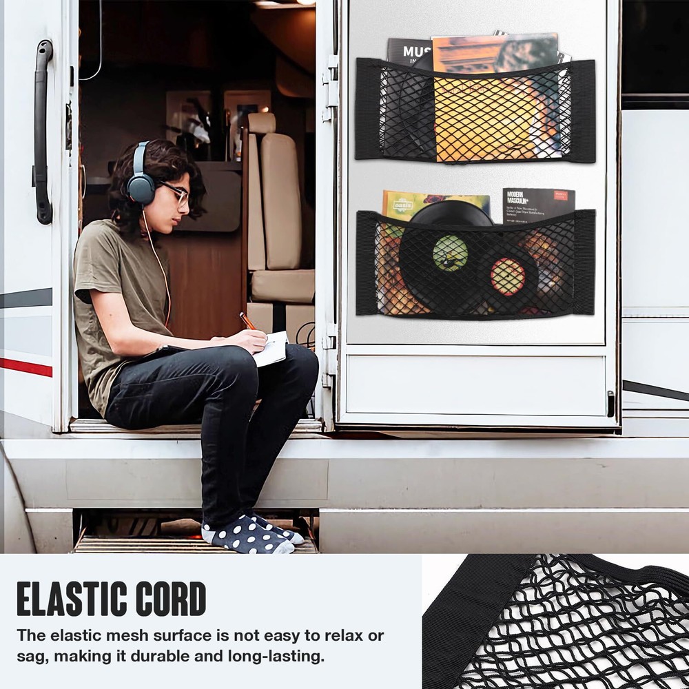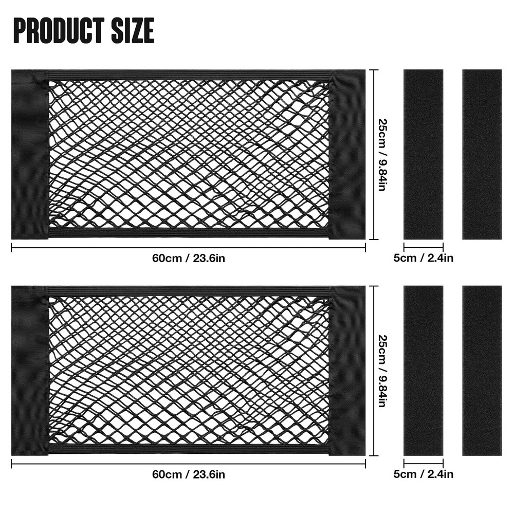 2PCS 25x60cm / 9.8x23.6in Car Storage Net Bag with Tape Stickers, Adhesive Mesh Pocket Net String Pouch Bag, Stretchable RV Storage Netting, Wall Sticker Organizer Pouch Bag for Home Storage 【High Grade Material】-- mesh pocket net is made of premium polyester material. It is so elastic that hold your stuffs steadily and not easy to sag. In addition, what makes our mesh cargo net irresistible to others is that it not only is suitable for fluff surface, but can be attached to smooth surface with an adhesive tape (Note: adhesive tape is included). 【Practical Function】-- This cargo organizer net serves a practical function that it's a best choice for you if you are in a state of fretting about a lot of stuff and narrow space. You can put your phone, card, receipt, glasses and other small items into it, so that adds more space for you and make the room neater. 【Upgrade Design Better Serve You】-- This mesh pocket net applies a simple and friendly design. It can be easily installed in one step with no additional operations and securely attached onto most surface with the Hook-and-loop Fastener. 【Wide Application】-- Our mesh pocket net has a wide scope of application. It can be used for storing lot of small items and saving space in any places you want, such as a car, truck, boats, especially at home. It provides you with additional room in the limited space for bottles, essentials, sports equipment, travel groceries, repairing tools and etc. 【Pack & Size】-- 2 x mesh storage pocket bag (25 x 60cm / 9.8 x 23.6in). makes your life more organized Cargo Storage Organizer Net This adhesive tape storage net combines the nice looking and superb durability for good performance. Crafted with quality polyester material, these pouch bags provides you with a great place to store things without taking up any space. By putting the things you carry like the bottles, keys, cards, wallets and other items inside it, keeping all the items secure from rolling around especially during a long bumpy drive. Adding mesh cargo net to you, you will lead an even more simple and comfortable life. Shipping We offer FREE shipping on all orders! We ship within Three business days of payment, usually sooner. We use a selection of shipping services such as UPS, FedEx, USPS etc. We only ship to the lower 48 states, no APO/FPO addresses or PO Boxes allowed. Local pickups and combined shipping options are not provided at this time. Return You can return a product for up to 30 days from the date you purchased it. Any product you return must be in the same condition you received it and in the original packaging. Please keep the receipt. Payment We accept payment by any of the following methods: PayPal Please pay as soon as possible after winning an auction, as that will allow us to post your item to you sooner! Feedback Customer satisfaction is very important to us. If you have any problem with your order, please contact us and we will do our best to make you satisfied. Contact Us If you have any queries, please contact us via ebay. We usually respond within 24 hours on weekdays. Please visit our eBay store to check out other items for sale! Thank you for shopping at our store.