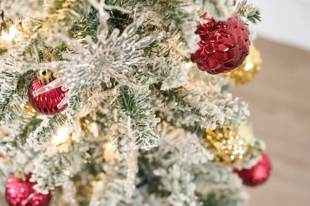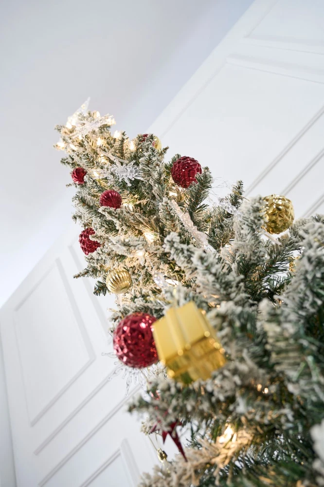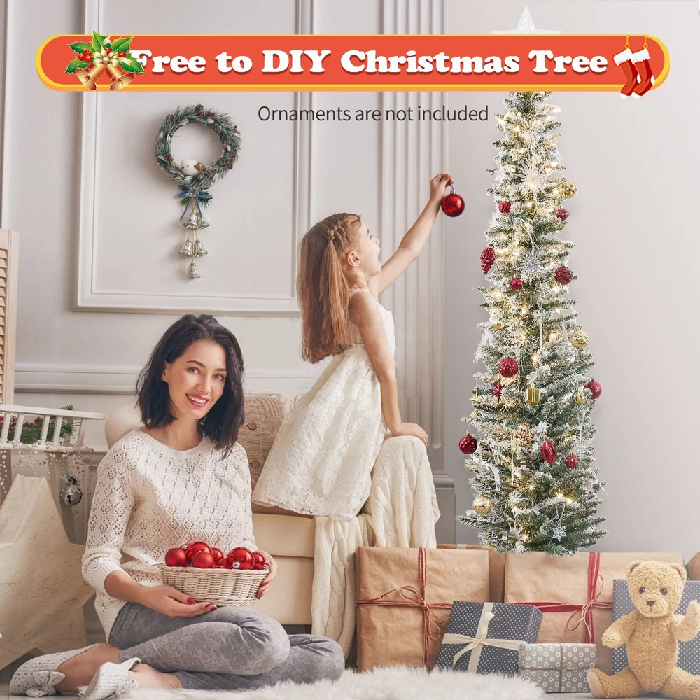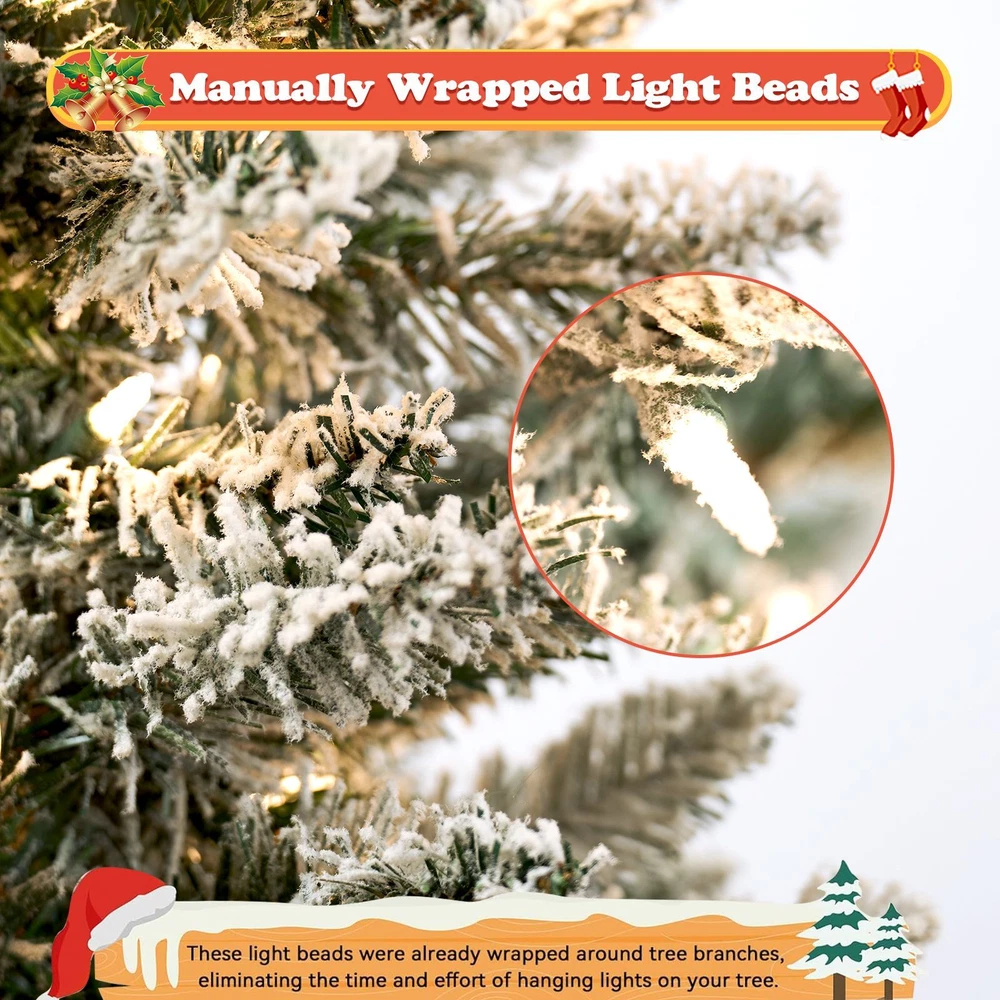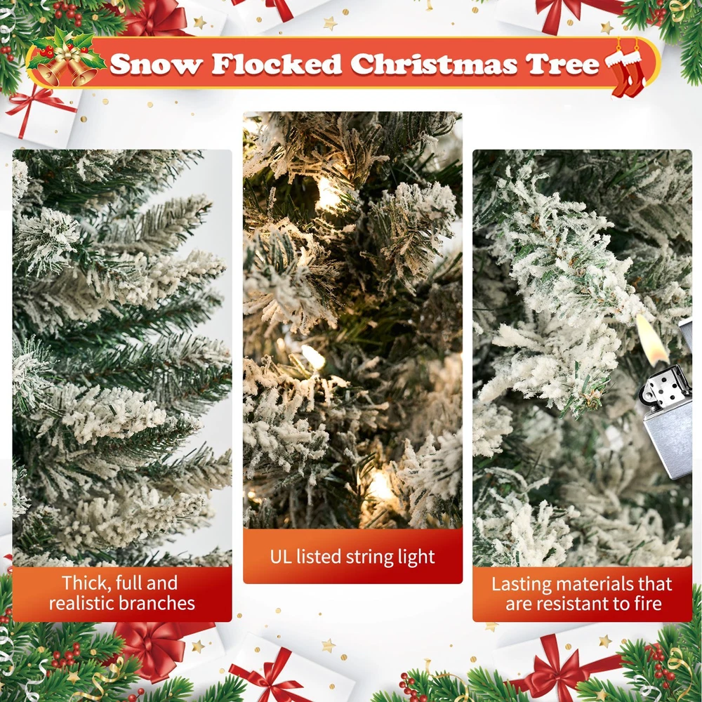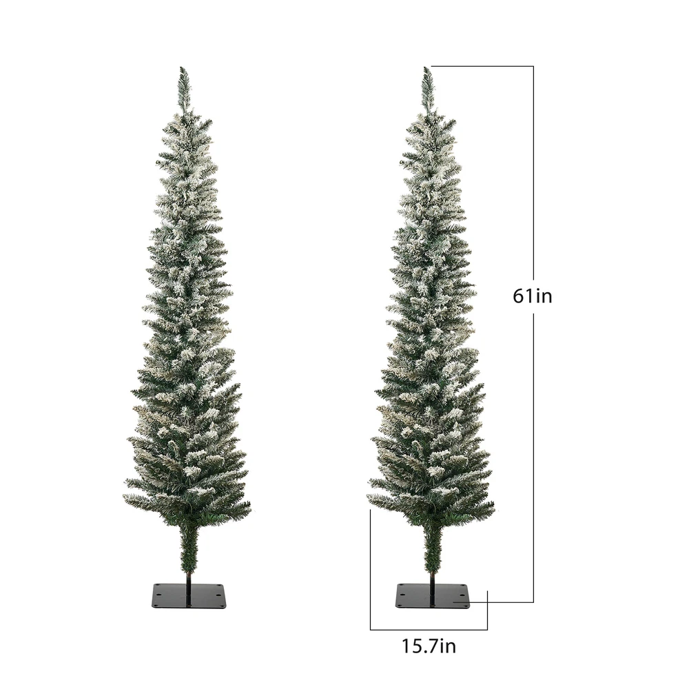 2PCS Christmas Tree 5ft Deluxe With Lights and Stand Snow Flocked XMAS Tree