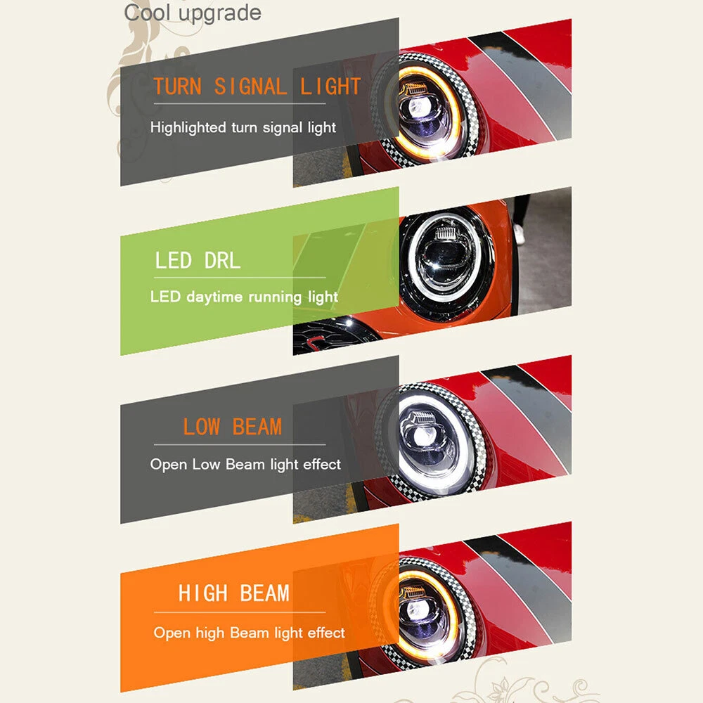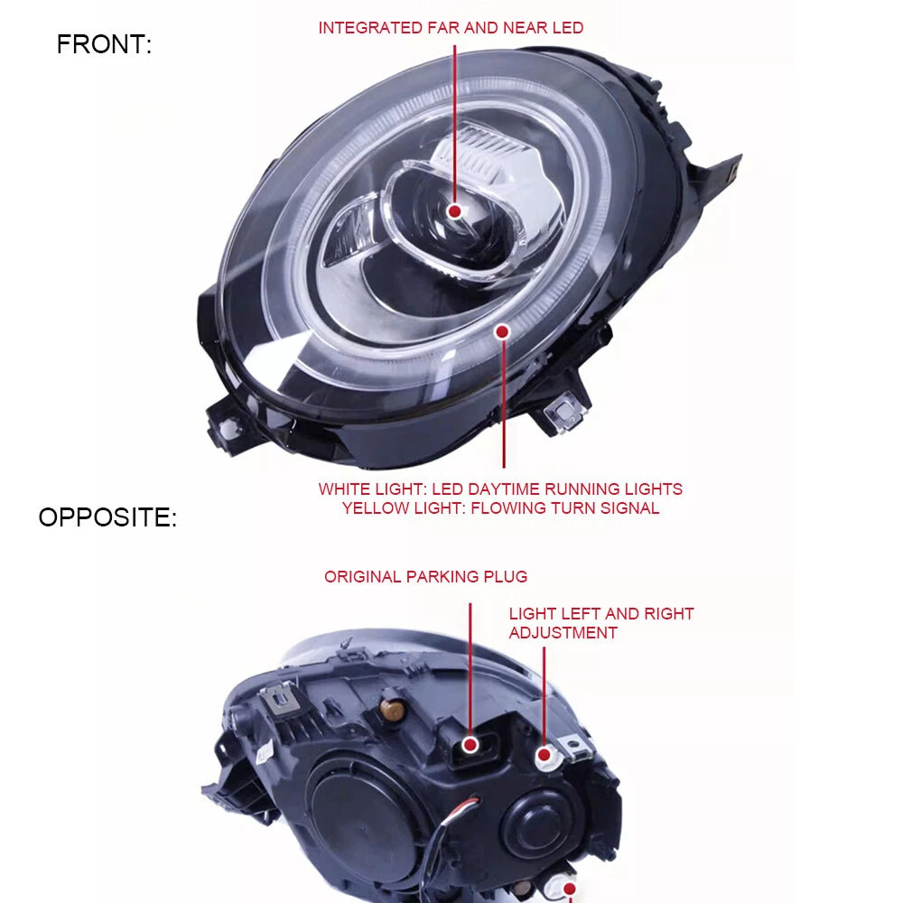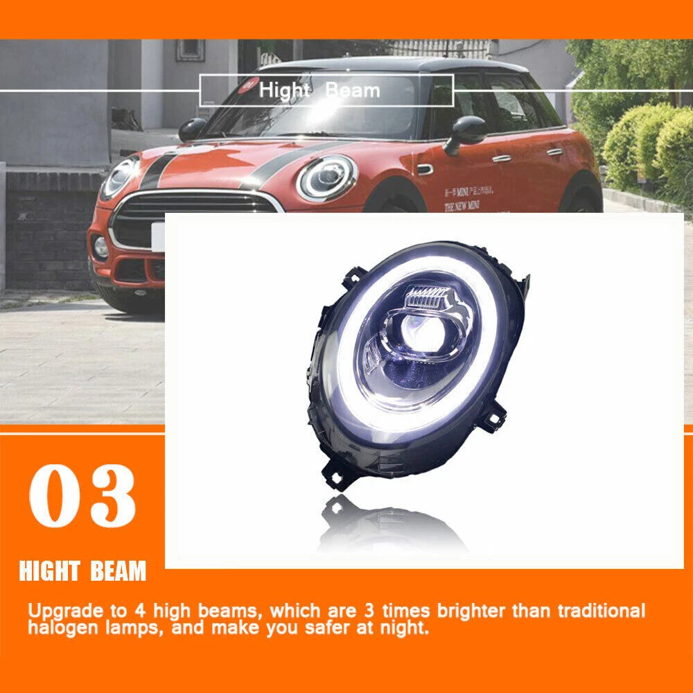2PCS For BMW MINI F56 All Led Headlights Assembly 2014-2019 Dynamic Turn Signal Note: Headlights Type:Halogen Headlights Features: 1. One pair: Left + Right head lights 2. Bulbs: All bulbs are built-in, no extra bulbs needed 3. Function: DRL+Turn Signal(Yellow)+High Beam+Low Beam lights 4. Easy installation: plug and play,same as original one to install 5. Assembly: all parts are included in the package,no need to buy extra bulbs or harness Fits: For BMW MINI F56 14-19 LED DRL Replace Factory Halogen Specifications: Item type: Headlight assembly Material: High quality ABS+LED Features: Dynamic turn signal Headlight function: high beam, low light, turn signal, day running light Include: Yes Lamp type :LED Color processing: Transparent case/transparent lens Light color: as shown Installation position: Front, left, passenger side, right, driver's side This is an aftermarket replacement item, but it's not the real thing Package List: 2x Headlight assembly (Left+Right) Note: Color may vary slightly due to the color setting of each individual monitor. Installation instruction is NOT included, professional installation is highly recommended. Payment Delivery details Terms of sales About us Contact us Payment We accept PayPal,ebay payment. Please make sure your address is correct before you pay. Feedback will be left automatically after we receive your feedback. Please contact us before leaving a Negative feedback or Neutral feedback. We would try our best to help you solving any problem. Delivery details Shipping USA --Our warehouse in the East United States East United States-----------------------1-3days Western of the United States-----------------------3-5days Southern United States-----------------------2-4days Terms of sales We offers 30-day refund, and 1 year manufactured warranty on all products, Warranty period starts from the date of purchase. After 30 days from the date of purchase, all return can only be replaced by same item, unless this item is out of stock at that moment,buyer need pay the shipping fee. * Warranty will be voided if the product is mishandled or physical damaged by customer. We will refuse back all the returns which are out of warranty. * We are not responsible for any kind of compatible issues, or problems related to any specific software or games. Return Policy Returns are permitted and must be initiated by the buyer within 30 days from the date of purchase. About us Contact us - Our Support Team is Here For You! Our goal is to earn 5 Star Positive Feedback on every sale! 1 or 2 Star DSR Ratings Destroy Our Company. We would appreciate the chance to correct any problems before posting anything other than positive feedback. We encourage our customers to contact in order to resolve any issues regarding the transaction before leave negative feedback on eBay. Please make sure to contact us before you leave feedback. Contact us Our Duty Time China Time USA(pacific time) Start End Start End Monday AM 9:00 PM 18:00 Sunday PM 17:00 Monday AM 2:00 Tuesday AM 9:00 PM 18:00 Monday PM 17:00 Tuesday AM 2:00 Wednesday AM 9:00 PM 18:00 Tuesday PM 17:00 Wednesday AM 2:00 Thursday AM 9:00 PM 18:00 Wednesday PM 17:00 Thursday AM 2:00 Friday AM 9:00 PM 18:00 Thursday PM 17:00 Friday AM 2:00 Saturday Out of Duty Friday Saturday Sunday Out of Duty Saturday Sunday Please leave us positive feedback upon satisfactory receipt of the item. We have a program that automatically replies as soon as you leave your feedback. We care about our valued customers, and will always try to help you. So if you have any problems, please e-mail us immediately. Please give us the opportunity to resolve a problem. We understand the concerns and frustrations you might have, and will try our best to resolve the issues. Please email us before leaving negative feedback . All communications are handled through Email. We strive to answer all emails as quickly as possible, but due to high email volume it may take time for us to reply. Thanks in advance for your patience. Due to some ISP SPAM filter settings, you may not be able to receive our email replies; if you have problems receiving our emails, you may need to use a different email account to contact us. Brand Unbranded Features Factory Headlights, Dynamic turn signal Manufacturer Warranty 1 Year OE/OEM Part Number For BMW MINI F56 14-19 Certifications CCC Fitment Type Direct Replacement Ballast Included Yes Lighting Technology LED Country/Region of Manufacture China Lens Color Clear Light Color Cold White Number of Bulbs 1-5 Placement on Vehicle Front, Left, Right Housing Color Black Bulbs Included Yes Surface Finish Super Bright Type Headlight Assembly Items Included Ballast Material High quality ABS+LED Note This is an aftermarket replacement item, not the real thing Headlights Type Halogen Headlights