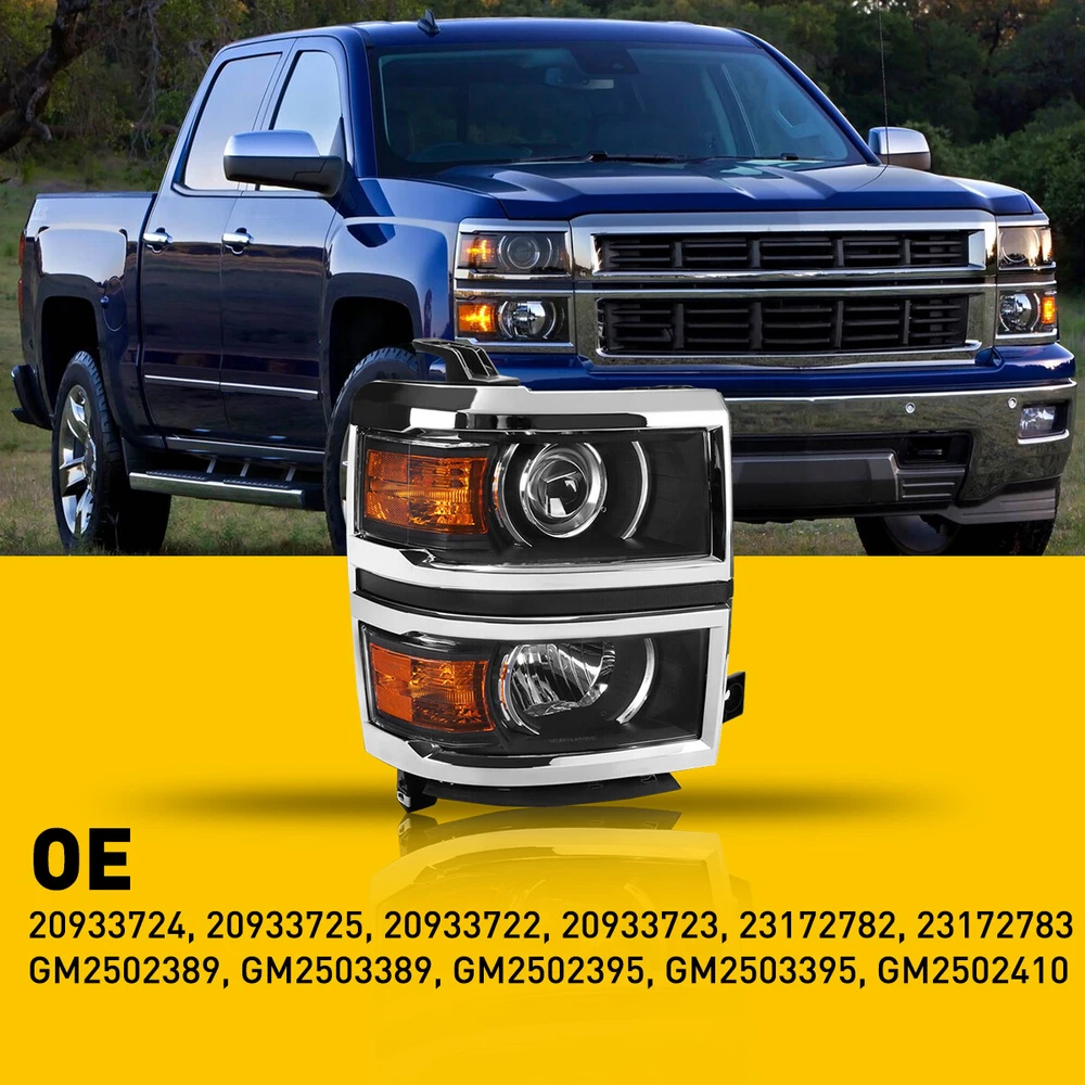 Fit for: 2014-2015 Chevy Silverado 1500 models only (Fit 2014 New Body style models only; Does NOT fit HD models) Specifications: OE number: 20933724, 20933725, 20933722, 20933723, 23172782, 23172783 GM2502389, GM2503389, GM2502395, GM2503395, GM2502410 Material: ABS+PC (ABS Plastic Housing/Polycarbonate lens) Appearance color: 1.Housing Color: Black 2.Lens Color??Clear 3.Reflector Color??Amber The original bulb type: 1.Low beam:H1 2.High beam:9005 3.Turn signal light:7443 4.Parking light:7443 Note: Projector √??include?? 2PCS For Chevy 2014-2015 Silverado 1500 Projector Headlights Lamps Amber Corner Fit for: 2014-2015 Chevy Silverado 1500 models only (Fit 2014 New Body style models only; Does NOT fit HD models) Specifications: OE number: 20933724, 20933725, 20933722, 20933723, 23172782, 23172783 GM2502389, GM2503389, GM2502395, GM2503395, GM2502410 Material: ABS+PC (ABS Plastic Housing/Polycarbonate lens) Appearance color: 1.Housing Color: Black 2.Lens Color??Clear 3.Reflector Color??Amber The original bulb type: 1.Low beam:H1 2.High beam:9005 3.Turn signal light:7443 4.Parking light:7443 Note: Projector √??include?? DRL × (Not include) Bulb × (Not include) Features: *Easy to install: Direct replacement, drilling and cutting are not required. *Superior quality: Made of ABS and PC materials with toughness and heat resistance functions to ensure its long service life and durability. *Angle adjustment: Equipped with a headlamp Angle adjustment knob, you can adjust the best Angle of view through the knob. *Suggestion: 1.Please confirm the OE number before purchasing!!! 2.Professional installation is required!!! Packaging include: Headlights*2(Left+Right) Item Specifics Brand Unbranded Number of Bulbs No Bulbs Included Type Headlight Assembly Features Projector Housing Placement on Vehicle Front Manufacturer Warranty 2 Years Material ABS Plastic Housing / Polycarbonate Lens Tips Professional installation is required Housing Color Black Lens Color Clear Reflector Housing Color Amber Interchange Part Number 20933724, 20933725, 20933722, 20933723, 23172782, 23172783 OE/OEM Part Number GM2502389, GM2503389, GM2502395, GM2503395, GM2502410 Payment 1. Instant PayPal payment is the preferred method of payment. We also accept payment via PayPal, DebitCard, Visa, MasterCard, Discover. 2. Before payment,Please keep the consistency of Paypal address and ebay address. 3. Quantity orders are welcome! Shipping 1. All items will be shipped in 24 hours after receiving your payment . 2. We ship this item to US only via USPS first class mail. It usually takes 3-6 working days to deliver. Returns 1. We offer free return & money back guarantee. If you are not satisfied with your purchase for any reasons, you can return the item for refund or replacement/exchange. All returns must include the original packaging. (Please refer to our return policy for details.) 2. If you don't return goods within 60 days from date of purchase, your right to cancel will be revoked. Any items damaged because of incorrect installation will not be refunded. Please contact us for return or troubleshooting help prior to returning any products. Contact Us 1. Negative feedback will not help resolve any problems you have, please contact us via eBay messages before leaving negative feedback, our customer service will make best effort to help you with the issues. 2. We maintain high standards of excellenceand strive for 100% customer satisfaction! Feedback is very important to us. We request that you contact us immediately Before you give us neutral or negative feedback, so that we can satisfactorily address your concerns. FAQ 1. Can you tell me when my order will be shipped? Actually we will ship the item within 1 business day after receiving orders. But USPS need to take longer time to update tracking info and arrange delivery during the challenging time for now. If your order was not shipped more than 3 business days, please contact us with your order number to get quick support. 2. My item has not arrived, what's taking so long? Sometimes items take longer than expected, especially if it's going far or to rural area. Check with your post office to see if your item has been held up. Sometimes USPS will not update a tracking number until it has arrived at its destination. If your item still has not arrived after a few days, let us know so we can double check for you and help solve it asap. 3. Do you ship to Canada, United Kingdom, Australia, etc.? Unfortunately, we could only ship to United States (Domestic shipment) at the moment. 4. I bought the wrong items/ the items were not compatible with my vehicle. Please contact us via ebay message to get quick support. DESCRIPTION PAYMENT SHIPPING RETURN POLICY CONTACT US Hot Item Fit for 1999-2004 Ford Left Mustang & Halogen Right Side Headlights Headlamps USD 79.99 1PC Headlight Harness Wiring 25962806 For Chevy 2007-14 Silverado 1500 3500 2500 USD 15.99 FOR 1999-2005 VW Jetta/Bora MK4 Models Only HEADLIGHTS Black HOUSING Clear Pair USD 86.99 Socket Headlight Harness Wire Plug Connector For 2007-2014 Chevy Silverado 1500 USD 15.19 AUXITO 9006 LED Headlights lights fog Bulbs Kit 6500K Low High Beam Super White USD 19.99 New List Item HB4 9006 LED Headlight Bulbs Conversion Kit Low Beam 6500K White Canbus 3900LM USD 43.19 12V LED Amber Cab Marker Roof Running Light Kit For Ford 1980-97 F150 F250 F350 USD 26.69 AUXITO License LED Plate Light LampS 6000K Xenon White 168 192 194 2825 2821 T10 USD 9.59 Engine Temperature Coolant Sensor For Toyota 2005-14 RAV4 Tacoma Camry Avalon USD 13.39 For 2007-2013 Silverado Chevy GMC Sierra 1500 CHROME 2500 3500 4Dr Covers Handle USD 21.94 Excellent Delivery 2PCS For Chevy 2014-2015 Silverado 1500 Projector Headlights Lamps Amber Corner Fit for: 2014-2015 Chevy Silverado 1500 models only (Fit 2014 New Body style models only; Does NOT fit HD models) Specifications: OE number: 20933724, 20933725, 20933722, 20933723, 23172782, 23172783 GM2502389, GM2503389, 