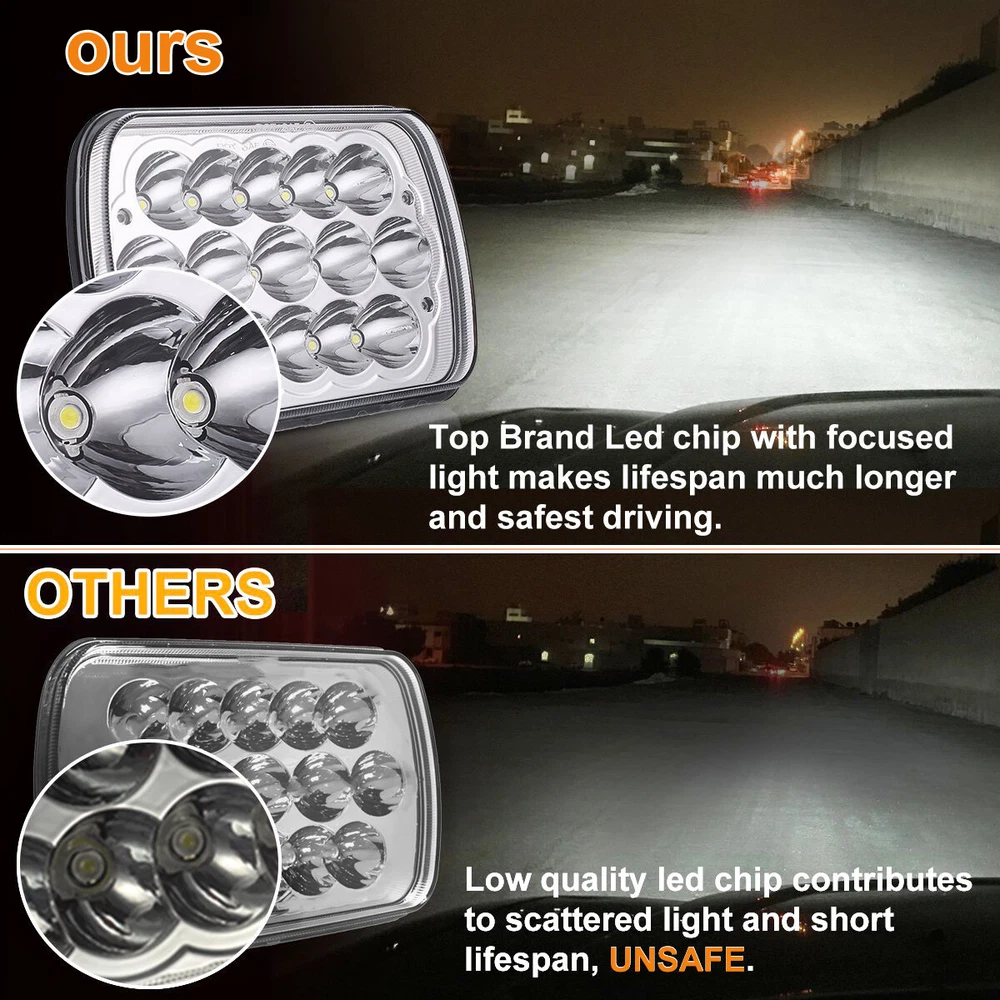 7X6 LED Headlights HIGH LOW BEAM 2PCS For Toyota Tacoma 1995-1997 & Pickup 5X7" 7X6 LED Headlights HIGH LOW BEAM Description: This high quality headlight is carefully crafted with high quality materials and effectively acts as a prominent warning to improve the safety of vehicles and pedestrians driving at night. It offers excellent cost effectiveness and durability. The product is specifically designed to ensure a hassle-free installation process, enabling you to effortlessly replace the headlight housing while enhancing the aesthetic appeal of your vehicle. Whether traversing rugged mountain roads or navigating city streets, this headlight will be a useful partner in your adventure. Choose now, drive the unknown journey! Specification: Type: 7x6 5X7 LED Headlights Case color: black Size: 5x7 inches / 7x6 inches LED power: 50W/ PC Luminous flux:12000LM@high beam, 6500LM@low beam Operating voltage: 9-32V DC Waterproof class: IP 68 Color temperature: 6000K-6500K Material: Aluminum alloy Lens material: PMMA lens Life: more than 80,000 hours Operating temperature: -40~85C Function: Hi/Lo Beam Installation type: Direct replacement Package Contents: 2PCS Black 5x7 7x6 inch 100w led headlights Fitment: Compatible for Any other car H6054 H6014 H6054LL 69822 6052 6053 with 5”x7”/7”x6” Rectangular Headlight Compatible for Toyota Pickup Compatible for Toyota 4Runner Pickup Compatible for Toyota Celica, Corolla, MR2, Starlet, Supra, Tacoma, Tercel Note: 1. Please confirm if the headlight fits your vehicle before purchasing. 2. Please check whether the headlight is firmly installed before driving to ensure driving safety. 3. The picture may be a little different from that of real item due to the different display and different light. 4.Search our shop Compatible for the vehicle year, make, model, and installation location. If you are unsure about this, please contact us via eBay message with the year, make, and model of your vehicle. Let us know what kind of product you are interested in, so we can check the accessories and get back to you as soon as possible.