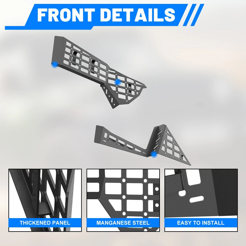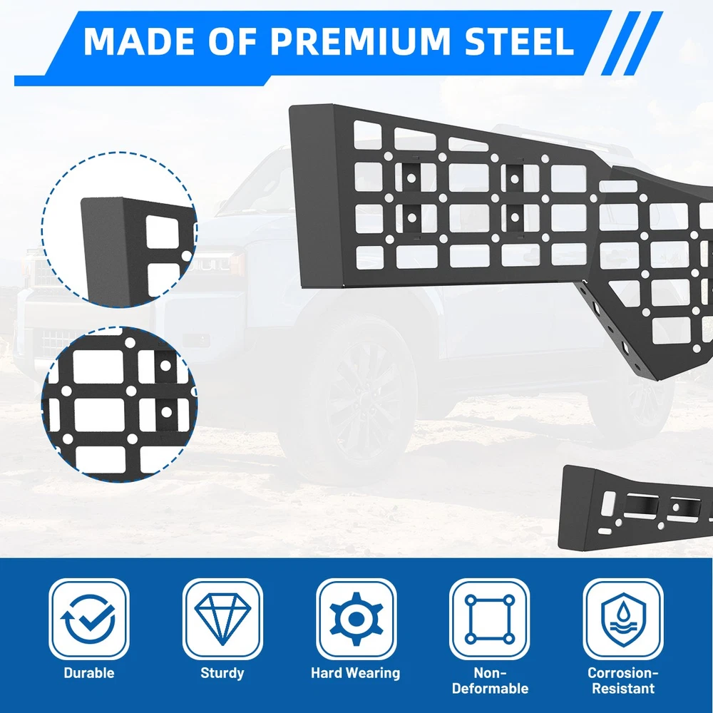 2PCS Front Bed MOLLE Panel Fit Toyota Tacoma 2024-2026 Center Console Storage Specifications: Color: Black Material: Steel Surface treatment: Powder coating Accessory type: Performance/Custom/Multi-function Installation: Direct installation Fitment: Fit For Toyota Tacoma 2024-2026 Features: π© Compatibility - Suitable for For Toyota Tacoma 2024-2026 vehicles π© Easy to install - Simple bolt-on installation process, no drilling or other complex tools required. You can easily install the product yourself without professional help. π© High-quality materials - Molle panel storage system is made of durable steel and finished with high-quality black powder coating, so it is very strong and will not rust. Specially treated to prevent scratches and blemishes. π© Function - Modular storage panels create more storage possibilities, maximize your storage space and keep your vehicle tidy. π© Versatile design - Able to integrate many small tools and accessories into one easy-to-manage and clean space, convenient for storing tool kits, driver's license, mobile phone, flashlight, etc. Packing Includes: 2PCS Center Console Side Bed MOLLE Panel Payment Delivery details Terms of sales About us Contact us Payment π We accept PayPal (Recommended), credit card, VISA, Google Pay & Discover etc. π Please submit your payment within 7 days after your purchase. π If not, eBay will automatically open an Unpaid Item Dispute on our behalf if the item(s) are not paid within 7 days. Delivery details π Please check your delivery address and contact information careful . π All items will be shipped within 1 business days after payment received. π Tracking numbers will be easily accessible they are created and processed ASAP . Terms of sales π Free 60 days Return, we will cover the return post fee. π If the defective product received, please do not hesitate to contact us via eBay message. π We will response in 24 hours in business to resolve the problem π We stand behind our products. Items can be returned for exchange or full refund within 60 days from the date you receive. About us π wolfstoem a Professional Automotive Accessories company ,we has a huge warehouse and office located in the United States. π All US domestic 48 states customers are able to benefit from the FREE SHIPPING services. π Our experienced, professional customer service representatives offers prompt and courteous service. π Best quality products, outstanding services and professional experience keep our customers. Contact us π Please feel free to contact us if you have any problems. π Emails will be replied within 24 hours in working days. π After hours emails will be replied on the next business day. Color Black Manufacturer Part Number NTA04N107 Material Metal Placement on Vehicle Left, Right Brand Wolfx Type Side Bed MOLLE Panel Manufacturer Warranty 1 Year OE/OEM Part Number Fit for Toyota Tacoma 2024-2026 Finish Powder-Coated Universal Fitment No Attachment Type Bolt-On Features Quick Assembly, Quick Release Items Included Mounting Hardware Maximum Weight Capacity