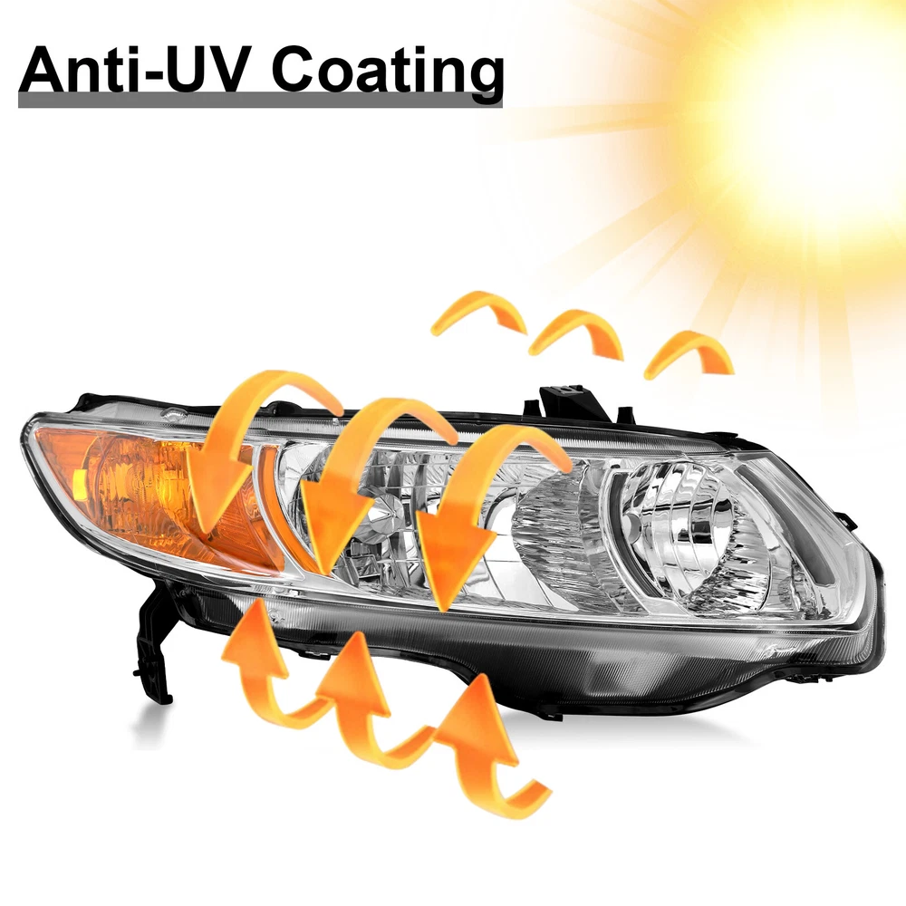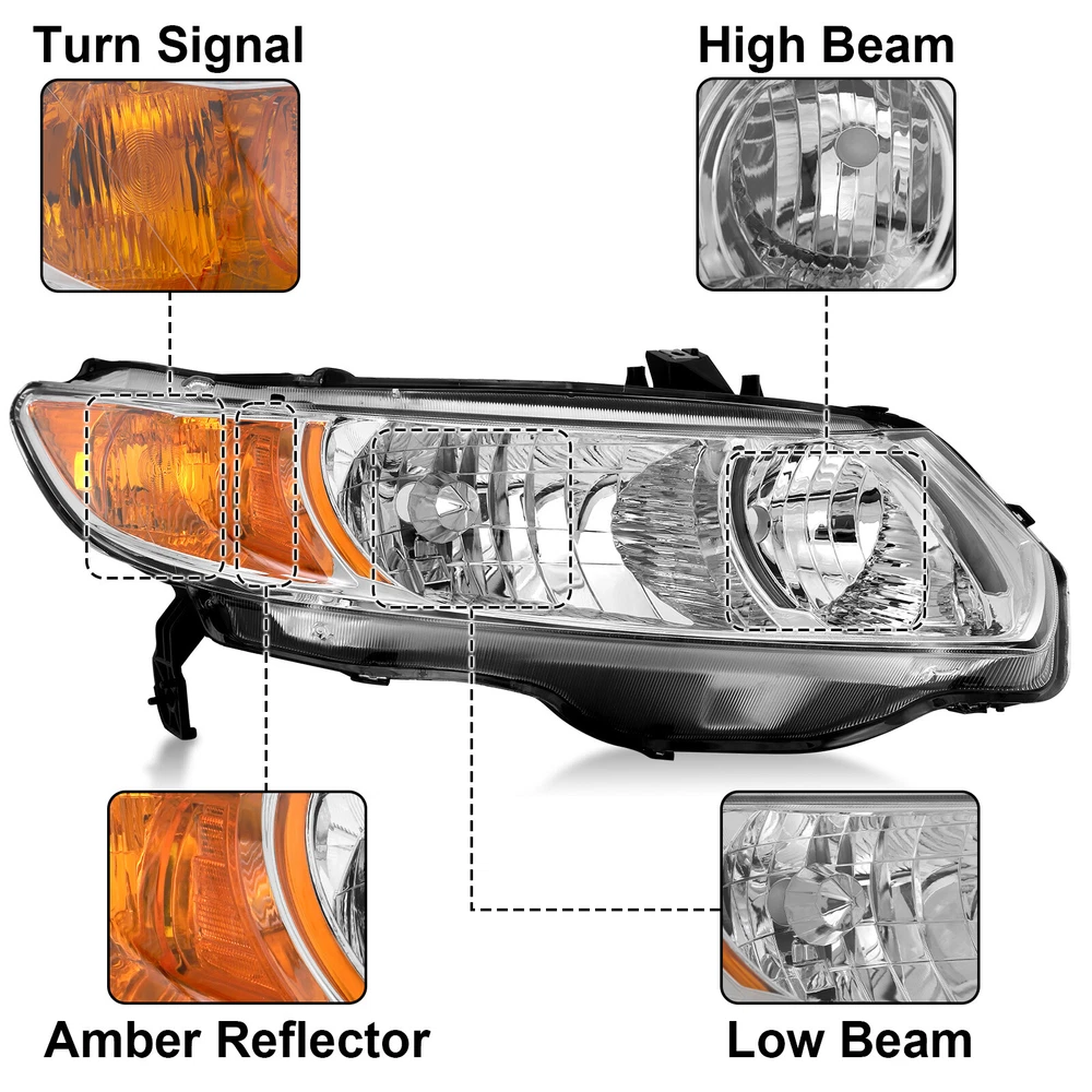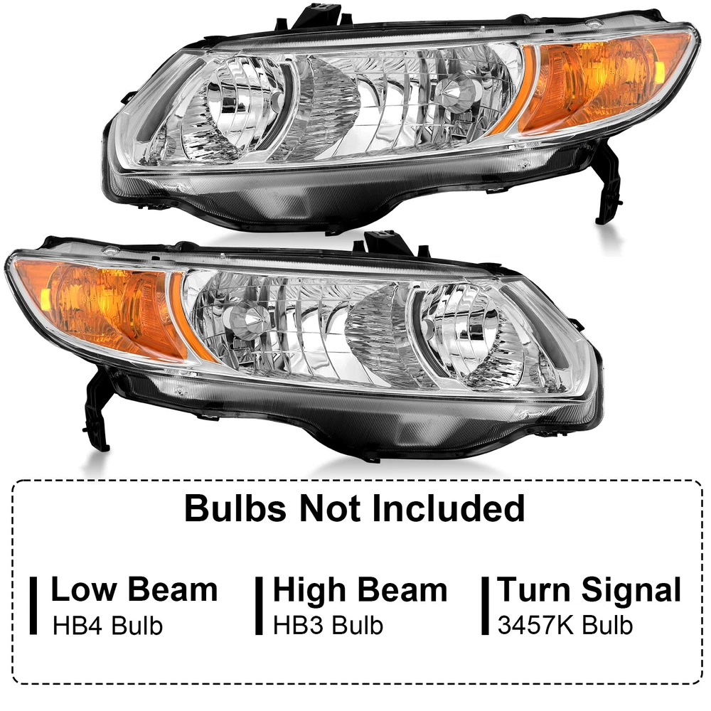 2PCS Headlights For 2006-2011 Honda Civic 2-Door Coupe Headlamps LH+RH Pair Specifications: 1.Color: Black Housing Amber Reflector 2.Material: ABS Plastic+ Polycarbonate Lens 3.The bulb type: High Beam:HB3 (Blubs Not included) Low Beam: HB4 (Blubs Not included) Features: 1.Anti-UV coating specially added to strengthen the lenses 2.Well sealed with premium silica glue and gone through air-tight tests 3.Plug and play operation; no drilling or wiring required 4.Meet or exceed DOT and SAE standards 5.Professional Installation is Highly Recommended. Installation Instruction is NOT Included. 6.3-Months Limited Warranty. Buy With Confidence! Compatible With: 2006-2011 Honda Civic 2Dr Sedan Model Only Not compatible with 4Dr Model Package includes: 1 pair of Headlights Driver and Passenger Side ( Left and Right Side ) Payment Shiping Policy Returns Policy Feedback Contact us Payment We accept PayPal, Google Pay, Credit Cards, and Debit Cards. Shiping Policy All Orders Will Ship Within Two Business Days.Except PR,HI,AK,GU and PO Box addresses. No local pick up All Packages Will Be Inspect Before Shipping, We Will Provide All Packing Material Needed For Your Package For Shipping Such As Boxes, Cushioning And Tape To Improve Shipping Quality. Very Important: Double check shipping address. We are not responsible for incorrect or undeliverable addresses. Returns Policy 60 Days returns satisfaction guarantee. All of Our Items Are 100% Brand New. If The Item Shows Up Defective or Broken, Please Contact Us Within 3 Business Days By Using "Ask A Question" Link Located At The Bottom of Our Listing. Your Questions/Concerns Will Be Responded Within 12 Hours Monday To Friday. Buyers May Contact us On The Weekends or Pubic Holidays And We Will Respond On The Next Working Day. We Will Offer Replacements, Exchange or Full Refund. 100% Satisfaction Guaranteed. We Will File Damage Or Lost Claim For Our Buyers Feedback We will leave a positive feeback immediately after payment is received. We appreciate a positive feedback as much as you do. If you have any issue with order,pls. contact us before leaving a feedback. We will glad to resolve your issue.Your satisfaction is our priority. Contact us If you have any concerns, Pls. feel free to contact us at any time.