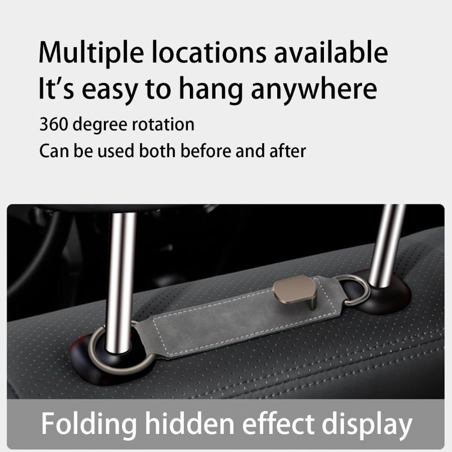About this item 【High Quality Material】: Made from soft leather and durable zinc alloy, ensuring a comfortable user experience. The zinc alloy provides excellent mechanical and anti-fatigue properties, allowing it to withstand significant tension and pressure, ensuring safety during use. 【Flexible & Space Saving】: Provides an extra level of flexibility and convenience for car owners and passengers. Items from a short shopping trip or small belongings for a long journey can be conveniently hung on the hooks located on the seat backs, optimizing space usage in the car for a neater arrangement. 【Universal Application】: These headrest hooks are sold in packs of 2 and fit most cars, SUVs, minivans, or trucks with headrest bars. They transform unused space into practical storage for essentials like groceries, handbags, backpacks, umbrellas, water bottles, and shopping bags. 【Quick Installation】: Designed with D-shaped hooks for easy installation without tools. Simply hang the hook on the seat headrest pole for instant storage convenience. It can be placed in the front or back seat for added style and practicality. 【360° Rotation】: The unique 360-degree swivel design offers unrivaled flexibility and convenience. Easily adjust it to the most suitable position in either the front or back seat to meet diverse needs. A simple turn allows items from the back seat to be transferred to the front seat area, enhancing convenience while traveling. Dimensions: 0.23 x 3.45 x 6.7 inches.