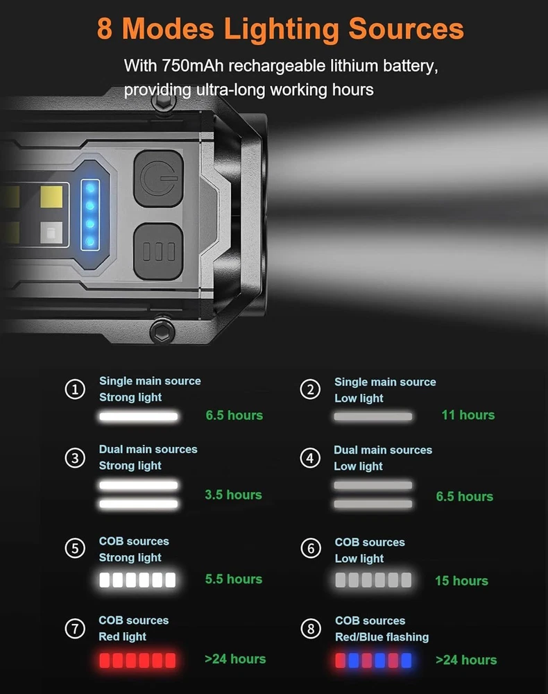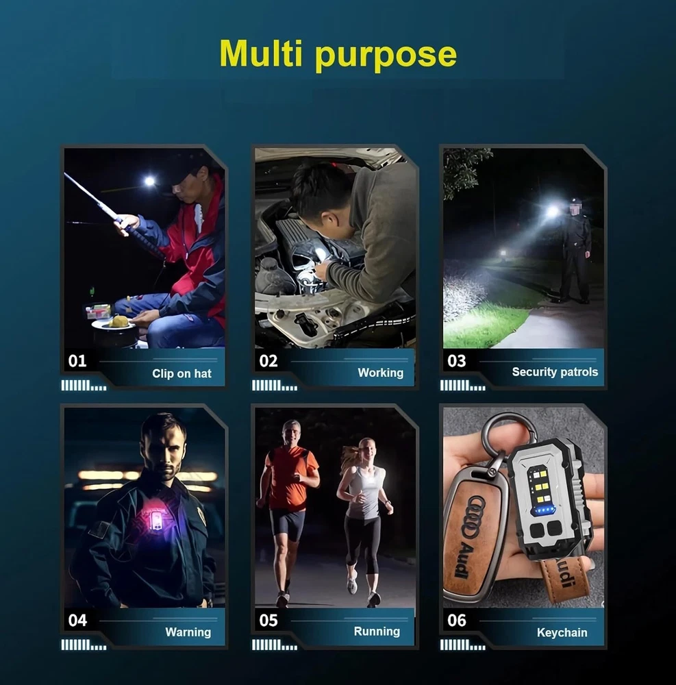 2PCS Rechargeable Mini EDC Keychain Flashlight Compact Pocket COB Light Night 【Super Bright Keychain Flashlight】This clip flashlight has dual LED main lights that can produce up to 500 lumens. Lighting distance exceeds 98 feet/30 meters. IP65 waterproof, you can use it even when it rains (Please note: it cannot be immersed in water). Press and hold the switch for 2 seconds to turn it on, then press the button to switch the lighting mode. Press and hold for 2 seconds to turn it off. 【8 Modes Light Sources】This keychain flashlight has 8 light modes. 4 Types of main lights: single source/strong light, single source/low light, dual source/strong light, dual source/low light. 4 Types of COB side lights: white /strong light, white/low light, red light, red and blue flashing light. Besides, the main light and COB light can work at the same time. Multiple light modes to meet your various needs. 【Lightweight & Compact Flashlight】This clip on EDC flashlight has a mini body and a 2.4oz/43.5g weight. It can be hung on your keychain, very convenient for daily carry. The shell of the light is fixed with an aluminum alloy, which is very sturdy and shock-resistant. It is the perfect flashlight for daily use or emergency use. 【Extremely Long Working Hours】This mini flashlight is powered by a rechargeable 750mAh lithium battery, which can provide ultra-long working time. Besides, this keychain light uses USB C fast charging (charging cable included) and can be fully charged in as soon as 2 hours. Moreover, the pocket light has battery indicator lights, which allow you to quickly know the remaining power. No longer worry about battery when you are outdoors. 【Magnetic & Clip on Flashlight】This flashlight has a powerful clip on the back, which can be clipped on hats, clothes, and bag straps. Great for night running, hiking, exploring, fishing, camping, and more. It can also be used as a warning light for dog walking at night. There is a strong magnet at the tail, which can be used as vehicle repair lighting or as a warning light in emergencies. This flashlight also has a keychain hole, so you can hang it on your keys and take it with you every day. package include: 2 X Mini keychain flashlight 2 X Charging cable On Oct 18, 2024 at 02:52:46 PDT, seller added the following information: