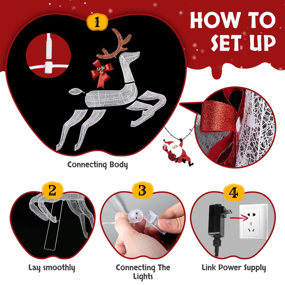 listing template Visit our store Sigh up for email 2PCS Reindeer with Sleigh Christmas Outdoor Decoration with Pre-lit 270 LEDs 3-Piece Lighted Set of 2 Reindeer & Sleigh, Weather Proof Christmas Outdoor Decorations with Pre-lit 270 LED White Lights and Stakes for Xmas Outdoor Holiday Indoor Decor Lighted Holiday Displays, Whi Intr oductions: This charming 3-Piece Lighted Set of 2 Reindeer & Sleigh is the perfect addition to your holiday décor. Featuring two reindeer pulling a santa's sleigh, this set is beautifully adorned with festive bowknots and sparkling glitter, capturing the magic of the holiday season. With its durable, weatherproof design and warm LED lights, it adds a cozy, enchanting glow to any indoor or outdoor space. Easy to assemble and store, this reindeer set will bring joy and festive cheer to your home year after year. Features: 1. Charming Reindeer & Sleigh Set: This delightful set features two reindeer pulling a santa's sleigh, each detailed with a festive bowknot and glistening glitter for added holiday sparkle. Loved by both kids and adults, this reindeer and sleigh set is sure to bring warmth and festive joy to your outdoor or indoor Christmas decorations. 2. Eye-Catching LED Lights: Pre-lit with 270 white LEDs, these reindeer glow beautifully in the night, creating an inviting holiday atmosphere. The well-placed LED lights make the reindeer a stunning focal point for your Christmas display, both day and night. 3. Weather-Resistant and Sturdy Build: Made from a durable, rustproof metal frame with waterproof fabric, the reindeer set is built to withstand wind, rain, and snow. The included ground stakes provide extra stability, ensuring your decorations stay secure in winter weather. 4. Easy Assembly & Storage: This collapsible reindeer set can be set up in minutes, allowing you to enjoy your festive display without hassle. The lights are pre-installed, simply connect the wires and plug them in to watch them come to life. 5.Perfect Holiday Decor for Indoor & Outdoor: Whether placed indoors near your Christmas tree, on the porch, or outdoors in the yard, this lighted reindeer set enhances any holiday setting. Perfect for holiday parties, weddings, or as a festive yard display, these reindeer bring elegance and a joyful touch to your celebrations. Specifications: 1. Overall Dimensions: (83 x 10.8 x 39.4) in / (211 x 27.5 x 100) cm 2. Number of Lights: 270pcs 3. Light Color: White Package Includes: 1 x 2 Reindeer & Sleigh Set 1 x Set of Ground Stakes You might like this more>> 6-Tier Bamboo Bookshelf Adjustable Storage Shelf Rack $49.99 Professional Cello 4/4 Full Size BassWood Set with Bag $148.99 Stainless Steel 4 Tier Steamer Cooker Steam Pot Kitchen Food $39.29 110 LB x 0.1oz All-In-One Digital Postal Shipping Scale 50kg $22.79 2Pack 10000LM LED Zoomable Flashlight Torch Lamp Light $9.99 Mini Exercise Bike Desk Pedal Bicycle $35.14 Shipping Policy 1. Ship worldwide from New Jersey by reliable shipping companies -- USPS, UPS, FEDEX, DHL, etc., and only to VERIFIED PAYPAL ADDRESS. Transport Delivery ETA. Package handling only takes 1 business day at our warehouse, so please make sure entering correct payment and shipping information before checking out. Once your payment is completed, we are not going to accept any more changes to your order. 2. International Buyers – Please Note: a. Import duties, taxes and charges are not included in the item price or shipping charges. These charges are the buyer's responsibility. b. Please check with your country's customs office to determine what these additional costs will be prior to bidding/buying. 3. Please check your shipping address carefully before checkout, it can't be changed if order completed. 4. Orders placed on weekend will be shipped within 2 days.Notification of shipment with tracking number will be sent to buyers. 5. Standard shipping: 2-7 business days Expedited Shipping: 2-3 business days One-day Shipping: 1 business day International shipping: Varies 6.Ship within 1 business day once payment completed. Notification of shipment with tracking No. will be sent to buyer. 7.We offer discounts for combine shipping. Please contact us first if you need combine shipping, and an invoice with discount will be sent to you. 8.Please allow 5 business days for delivery to US destinations on any eBay orders and 14 business days for delivery to any International destinations. We highly recommend our buyer choose priority/expess mail for international delivery which is much more stable. Return Policies 1. Refunds given only if item DOA and cannot be replaced via PAYPAL . If so, Please contact us with 5 days since you receive the item and and return to us within 30 days from the delivery date for exchange or refund. 2. If you need return, please contact our customer service representative, let us know the detailed problem and send us some pictures for confirmation. Payment Payment should be sent within 8(EIGHT) days of auction closing. Feedback If you are dissatisfied for any reason, please do not be quick to leave negative/neutral feedback. We work hard to make sure EVERY CUSTOMER 100% SATISFIED and resolve any problem for you. Work Time Work Time: Monday to Saturday About Us | Newsletter| Feedback| Contact Us Copyright © 2021 Yallstock. All rights reserved. 无标题文档 2PCS Reindeer with Sleigh Christmas Outdoor Decoration with Pre-lit 270 LEDs 3-Piece Lighted Set of 2 Reindeer & Sleigh, Weather Proof Christmas Outdoor Decorations with Pre-lit 270 LED White Lights and Stakes for Xmas Outdoor Holiday Indoor Decor Lighted Holiday Displays, Whi Intr oductions: This charming 3-Piece Lighted Set of 2 Reindeer & Sleigh is the perfect addition to your holiday décor. Featuring two reindeer pulling a santa's sleigh, this set is beautifully adorned with festive bowknots and sparkling glitter, capturing the magic of the holiday season. With its durable, weatherproof design and warm LED lights, it adds a cozy, enchanting glow to a