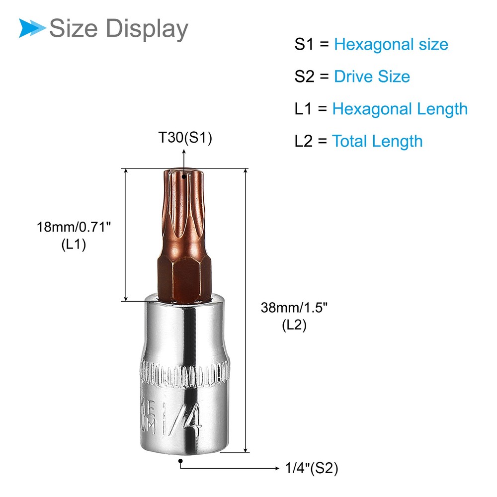 2PCS T30 Torx Bit Socket 1/4-Inch Drive 1.5" CR-V Steel
