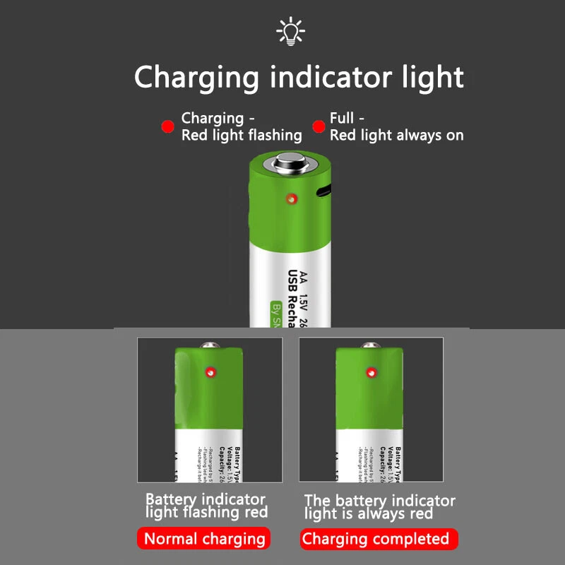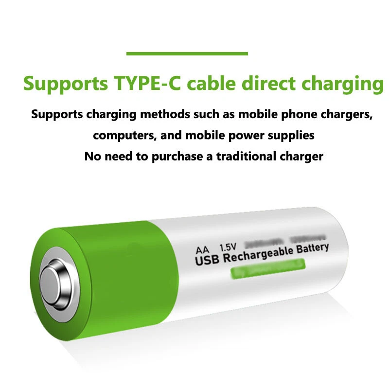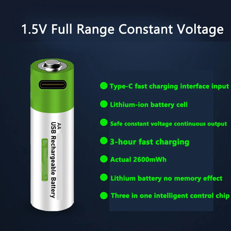 2PCS USB AA 2600mWh 1.5V Li-ion Rechargeable Battery Fast Charge Type C Cable