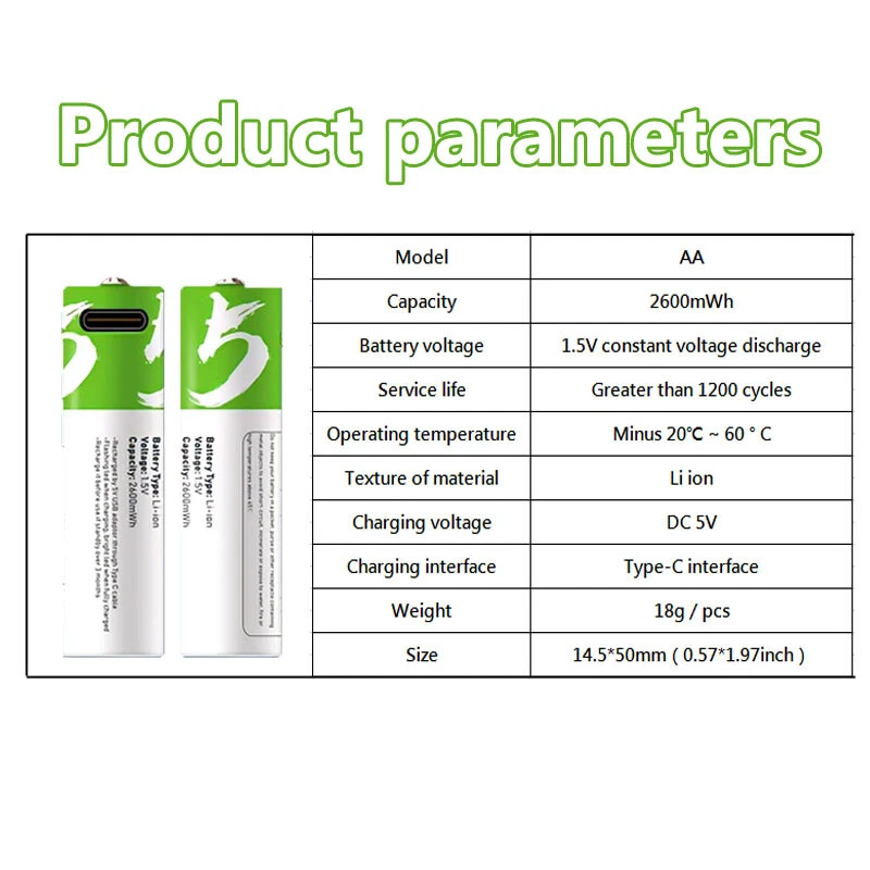 Store Categories Store Categories Sports & Outdoor Home & Garden Tools Business & Industrial Electric & Battery Dolls Other Product Description Descr i b tion : SWITCH TO RECHARGEABLE: Stop wasting money on standard alkaline batteries! Switch to our rechargeable lithium batteries for the same great performance. Reuse the batteries repeatedly. Be eco-friendlier and more cost-effective Type C USB CHARGING: Directly plug a Type C USB into the input for quick and easy charging. Use the included cable to connect simultaneously connect 2 batteries to any USB power supply. Connect to an AC adapter, power bank or computer, and fully charge in around 3 hours. Long lifecycle will allow over a 1200 uses LED INDICATORS: When charging, the red LED will blinks and will then LED remains on once it is fully charged. Conveniently see the charging status of each battery LARGE CAPACITY: High capacity provides sufficient power for a wide range of products. Perfect for controller, keyboard, mouse, toys, calculator, toothbrush and much more Featur es : Great performance,a good replace to alkaline c batteries,1.5V constant output,the same usage time as alkaline c batteries. Fast charging ,Type C USB charging fast fully charge in around 3 hours. Easy charging,connect type C cable to the batteries and suitable USB power source(such as mobile phone adapter,laptop,power bank or car charger).Two batteries can be charged at the same time. Package includ e : 2*AA Batteries (Come with storage box and data cable) Not e : Due to the light and screen setting difference, the item's real color may has slight difference. Please allow slight dimension difference due to different manual measurement. The charging time and usage time of batteries may vary in different environments Thank you for your kindly understanding. Payment Policy Shipping Policy Returns Policy About Us Contact Us Payment Policy 1. We accept PayPal only. 2. All major credit cards are accepted through secure payment processor PayPal. 3. Payment must be received within 7 business days of auction closing. 4. If you have bought multiple items from me, you can send me one payment for all the items instead of paying for them individually. When you click the Pay Now button, eBay will automatically determine if there are other items you have won or purchased from me and will combine them for your review. 5. NOTE: Import duties, taxes and chargers are not included in the item price or shipping charges. These charges are the buyer's responsibility. Please check with your country's customs office to determine what these additional costs will be prior to bidding buying. Shipping Policy 1. We Ship to Worldwide. 2. Items will be shipped within 7-14 business day on payment received. 3. Item are shipped from Shenzhen using Airmail, reach most of the countries within 10 to 35. 4. Delivery time depends on destination and other factors, it may takes up to 40 business days. 5. We are not responsible for undeliverable address, we reserve the right to charge the shipping fee again for returned items due to wrong address. 6. If you do not receive your item by 30 business days, Please feel free to contact us via ebay mail system, we will try our best to resolve any problems with you. Returns Policy 1. You have 7 day to contact us and 10 days to return it from the date it was received. If this item is in your possession more than 7 days, it is considered used and WE WILL NOT ISSUE YOU A REFUND OR REPLACEMENT.There are NO EXCEPTIONS! 2. All Returned items Must Be in the original packaging and you MUST PROVIDE us with the shipping tracking number, specific reason for the return,and your ebay ID. 3. We will refund YOUR FULL WINNING BID AMOUNT, upon receipt of the item in its original condition and packaging with all components and accessories included, AFTER BOTH Buyer and Seller cancel the transaction form ebay.OR, you may choose to have a replacement. 4. Return shipping is to be paid by the Buyer. About Us 1. We strive for our customer satisfaction at best possible. If you have any questions, please feel free to email our service specialists 24 Hours a Day, 7 Days a week. We will reply you ASAP. If no response within 24 Hours, please check the spam in your mail box. 2. We greatly appreciate your POSITIVE feedback. Please do NOT leave negative feedback without asking for help. Our aim is to provide Top Level Customer Service, normally so we will try our best to solve any problem you have. 3. Please DON'T leave negative or neutral feedback if you haven't received item in 30 days, because we have mentioned the shipping time repeatedly. Contact Us Our customer-oriented service strives for positive feedbacks with all 5 star selling ratings . Please feel free to contact us via eBay message once you have any question before you giving us negative feedback or open case. Business time: GMT8 (9:00-18:00) from Monday to Friday Copyright © 2023 Dianxiaomi