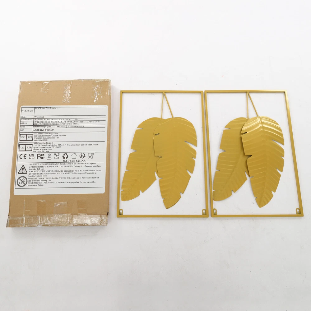 Specifications Material: Iron Color: Gold Style: Modern Pattern: Begonia Leaf Frame Shape: Rectangle Process: Baking Paint Mounting Type: Wall Mount Indoor/Outdoor Use: Indoor Assembly Required: No Number of Items: 2 Each Product Thickness: 10mm/0.39in Each Product Size(L*H): 41*61cm/16.14*24.02in Package Size: 62*42*5.5cm/24.4*16.54*2.17in Gross Weight: 2.7kg/5.95 lbs Net Weight: 2.57kg/5.67 lbs Package Included 2* Wall Decorations Other Accessories for Installation 2PCS Wall Decorations Gold Iron Leaf Wall Hanging Home Decor w/Frame Wall Decor Description Do you want to add a unique touch of beauty to your space? This wall decoration is undoubtedly your ideal choice. It is meticulously crafted from premium iron, ensuring durability and a like-new appearance even after long-term use. Choosing it is not only a pursuit of a life of exquisite taste but also a reflection of an endless yearning for nature and a profound admiration for beautiful things deep within your heart. Key Features Long Service Life: Made of high-class iron with a baking painting process, this product is wear-resistant, not easy to oxidize or deform, and can be used for a long time. High Stability: Each decoration has two holes that are small at the top and large at the bottom, which not only facilitate installation but also help the product to be firmly fixed on the wall. Thoughtful Design: The thickness of the product is only 10mm, together with the size of 16.14*24.02 inches, which will not make the wall feel abrupt or occupy too much space, beautifying your space without any unusual feeling. Set of 2: This set contains 2 pieces of decorative items of begonia leaf, whether the combination of hanging on the living room wall or separately embellishing different spaces, can easily cope with it. Fashionable Appearance: The leaves are lifelike in shape and have a strong sense of three-dimensionality. Paired with dazzling golden tones, they showcase a fashionable and elegant artistic atmosphere and can be integrated into various home styles. Ideal Gift: This product is not only elegant and stylish but also highly practical, making it a great choice for those who want to add a decorative art wall to their home for friends, family, and colleagues. Simple Installation: With the one-piece structure, You just need to use the screws to fix the product on the wall, which is convenient and simple. Easy to Clean: The simple structure makes this product easy to clean, you just need to wipe the surface with a damp cloth. Customer Service: We stand behind all our guests and look forward to assisting you with your purchase. It is our pleasure to answer your confusion and questions. The end of the story between us is not "we sell and you buy". Details Smooth Edges: They can protect your hands from getting scratched during installation and daily cleaning. Iron Frame: It provides stable and solid support, ensuring that the decorations can be securely fastened. Exquisite Texture: The delicate texture on the leaves enhances the aesthetic feeling of this product, making it look more realistic and adding more luxury. Application This product is ideal for bedrooms, staircases, kitchens, corridors, bars, foyers, living rooms, offices, halls, hotels, restaurants, cafes, exhibition halls, and wall art decoration. Specifications Material: Iron Color: Gold Style: Modern Pattern: Begonia Leaf Frame Shape: Rectangle Process: Baking Paint Mounting Type: Wall Mount Indoor/Outdoor Use: Indoor Assembly Required: No Number of Items: 2 Each Product Thickness: 10mm/0.39in Each Product Size(L*H): 41*61cm/16.14*24.02in Package Size: 62*42*5.5cm/24.4*16.54*2.17in Gross Weight: 2.7kg/5.95 lbs Net Weight: 2.57kg/5.67 lbs Package Included 2* Wall Decorations Other Accessories for Installation Notes Please check the product size before ordering to make sure it fits your needs. Please allow the slight color difference caused by the shooting light and 1-3cm error due to manual measurement, and make sure you do not mind before you order. Payment Delivery details Terms of sales About us Contact us Payment We accept ebay payment 。 Fees such as import duties, taxes are not included in the item price or shipping costs. These charges are the buyer's responsibility. Delivery details Shipping: 2-9 working days to: USA Terms of sales We maintain high standards of excellence and strive for hundred percent customer satisfaction. Feedback is very important to us. We hope that you contact us immediately before you give neutral or negative feedback, so that we can address your concerns. It is impossible to address issues if we do not know about them! About us Your satis faction is our ultimate goal. We work hard to earn your trust and future business. Our certified technicians have tested each item before shipping. The unit comes with 1 year limited warranty on all manufacturing defects. a) If you receive a defective item, you may return it or ask for a discount. Please contact us within 14 days after you receive the package. b) What you returned must be intact and in its original packaging as re? u. Customer is responsible for shipping costs of the returned item. c) We will cover the cost of shipping back t with the shipping rate indicated in the registration page. We will send you a new unit or refund the full payment you paid. Thank you. Contact us Business Hour Business Hour: Monday To Friday: 8:30 AM to 5:00 PM (Beijing China time) Due to time zones, our reply to your questions may not be immediately. But within above working time, we will reply your email within 24 hours. If it's non-workdays, please kindly be patient and wait till Monday. Please contact us with ebay message. Please feel free to contact us if you have any questions. Monday To Friday: 8:30 AM to 5:00 PM (Beijing China time) Due to time zones, our reply to your questions may not be immediately. But within above working time, we will reply your email within 24 hours. If it's non-workdays, please kindly be p
