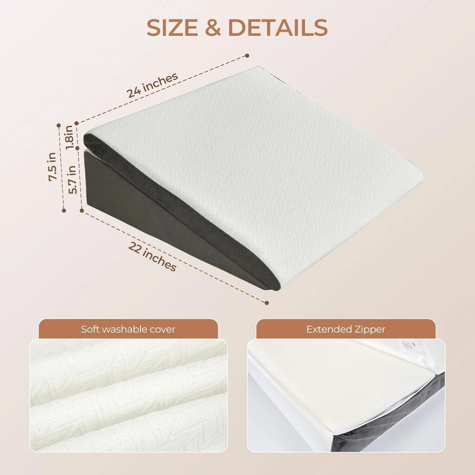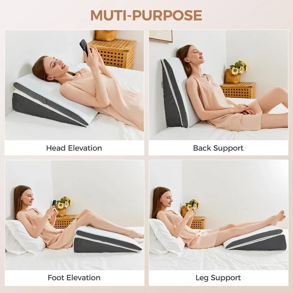 2 Heights & 2 Softness Adjustable: Compared to the double layer design wedge pillows on the market, our wedge pillow for sleeping is composed of 2 separate pillows with different heights and different firmness. You can adjust the height and firmness according to your own habits.Sleep wedges for adults. Comfort and Support Coexist: The bed wedge pillow main body is 5.7 inches of medical-grade high-density foam, which can provide great body support, and we also have a 1.8-inch independent memory foam wedge pillow composed of aviation-grade memory foam, which is an important guarantee of pillow comfort and a good night's sleep. Vintage Premium Patterned Fabric: Pillowcase is soft, breathable and skin-friendly, you can even use it without clothes.2 pillows have super long zippers, easily removable and machine washable. Multi-scene and Multi-function Use: Incline pillows for sleeping,can provide stable and comfortable support for your neck, back, legs and hip, for acid reflux, back pain, leg pain, abdominal pain and other physical discomfort.Suitable for bed, sofa, floor Sincere and Thoughtful Gift: Wedge Pillows for after surgery.Our pillows are especially suitable as gifts for yourself, your family and friends. It can carry your care and thoughts. And it is very useful for those who need to improve their sleep and recover from surgery. Vekkia never compromises on quality - if you have any problems, please don't hesitate to contact us and we will give you 100% satisfaction with our after-sales service!
