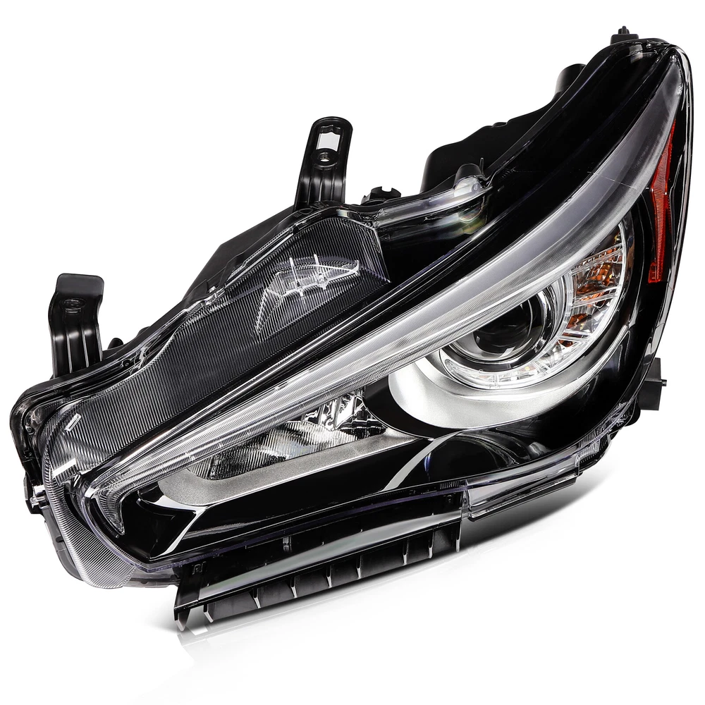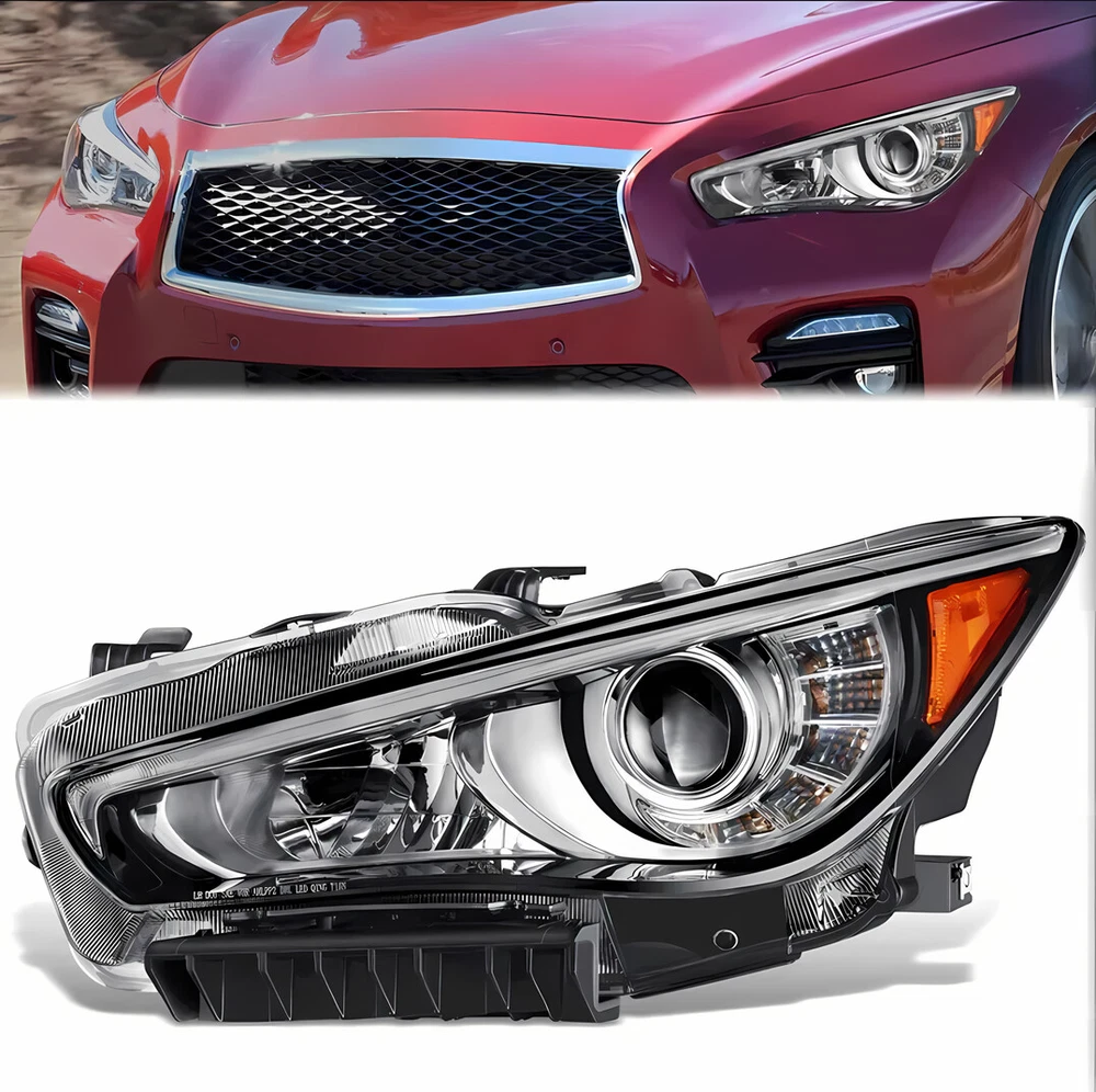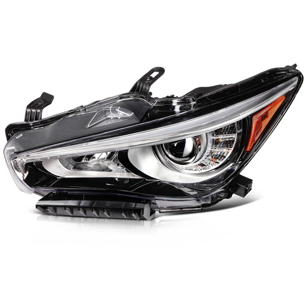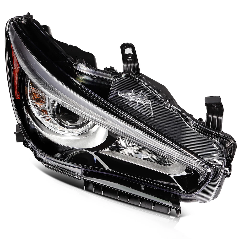 1.Vehicle Fitment [2PCS/PAIR] For 2014-2022 INFINITI Q50 Seduction Full LED Headlights w/ LEDDRL 1.Vehicle Fitment Fit Models With OEM Front Projector Full LED Headlight Assembly Without Adaptive Front Lighting System(AFS) Only Fit Models Without Adaptive Front Lighting System(AFS) Headlights Assembly Only Not Fit Models w/ OEM Front Projector HID/Xenon/Halogen Headlight Assembly Not Fit Models With Adaptive Front Lighting System(AFS) Headlights Assembly For INFINITI Q50 400 Sport Sedan 4-Door Automatic AWD/RWD 3.0L 2018-2020 For INFINITI Q50 Base Sedan 4-Door Automatic AWD/RWD 2.0L 2016-2017 For INFINITI Q50 Base Automatic AWD/RWD 3.7L 2014-2015 For INFINITI Q50 Edition 30 Automatic AWD/RWD 3.0L 2020 For INFINITI Q50 Essential Tech Automatic AWD/RWD 3.0L 2021 For INFINITI Q50 Hybrid Automatic AWD/RWD 3.5L 2014-2021 For INFINITI Q50 Inspiration Automatic AWD/RWD 3.7L 2015-2017 For INFINITI Q50 Luxe Automatic AWD/RWD 2.0L 2018-2019 For INFINITI Q50 Luxe Automatic AWD/RWD 3.0L 2018-2022 For INFINITI Q50 Luxury Automatic AWD/RWD 3.7L 2018 For INFINITI Q50 Perfection Automatic AWD/RWD 3.7L 2015-2018 For INFINITI Q50 Premium Automatic AWD/RWD 2.0L 2016-2018 For INFINITI Q50 Premium Automatic AWD/RWD 3.0L 2016-2017 For INFINITI Q50 Premium Automatic AWD/RWD 3.7L 2014-2015 For INFINITI Q50 Pure Automatic AWD/RWD 2.0L 2018-2019 For INFINITI Q50 Pure Automatic AWD/RWD 3.0L 2020-2022 For INFINITI Q50 Red Automatic AWD/RWD 3.0L 2016-2022 For INFINITI Q50 Seduction Automatic AWD/RWD 3.7L 2015-2018 For INFINITI Q50 Sensory Automatic AWD/RWD 3.0L 2021-2022 For INFINITI Q50 Signature Edition Automatic AWD/RWD 3.0L 2019-2021 For INFINITI Q50 Sport Automatic AWD/RWD 2.0L 2017 For INFINITI Q50 Sport Automatic AWD/RWD 3.0L 2016-2022 For INFINITI Q50 Sport Automatic AWD/RWD 3.7L 2014-2015 2.Package Includes:2pcs/Pair Front Projector Headlights Assembly 1xFront Driver Left LH Side Front Projector Headlights Assembly 1xFront Passenger Right RH Side Front Projector Headlights Assembly 3.Item Specification Automotive Front Projector Headlight Assembly Function Included: Projector LED Low Beam | Projector LED High Beam | Front Turn Signal Light | Front Side Maker Light | Front Parking Light | Front LED DRL | Front Position Light | Front Hazard Warning Flashers Style: Factory Style & OEM-Style & Projector Style Color: Chrome Housing | Clear Lens | Amber Corner Reflector Full LED Bulbs & Ballast & Error-Free Resistors Included: Built-in; Full LED Unit - No Bulbs are Required Wiring Harness & Mounting Hardware Included: Same as the Picture Interchange Part Number: IN2502157,IN2502179,260604HB0B,260604HB0A,260106HH7A,114-60189L,IN2503157,IN2503179,260104HB0B,260104HB0A,260606HH7A,114-60188R 4.Item Description Direct Replacement of Factory Full LED Headlights Assembly without AFS (Adaptive Front Lighting System) Made by an ISO certified manufacturer using materials that meet strict OEM requirements Each LED uses are High Power SMD LED Our Polycarbonate Lens offer Superior UV protection and a High Impact Resistance Highly Reflective Amber Reflectors offer OEM compliances with DOT and SAE standards Our Lights Use the Highest Quality Butyl Sealant to Prevent any Imperfections to Enter the Light Housing Installation Instruction Not Included Professional Installation Recommended Item Specifics Buyer Attention Full LED Bulbs & Ballast & Error-Free Resistors(Built-in) Fit Models w/ OEM Front Projector Full LED Headlight w/o AFS Only Fit w/o Adaptive Front Lighting System Model Only Not Fit Models w/ OEM Front Projector HID/Xenon/Halogen Headlight Features OE-Certified ISO-Certified DOT-Certified SAE-Certified Factory Headlights Projector Housing Brand Factory Automotive Distributors OE/OEM Part Number IN2502157 IN2502179 260604HB0B 260604HB0A 260106HH7A 114-60189L IN2503157 IN2503179 260104HB0B 260104HB0A 260606HH7A 114-60188R Type Headlight Assembly Assembly Type Composite Automotive Front Projector Headlight Assembly Function Included Projector LED Low Beam Projector LED High Beam Front Turn Signal Light Front Amber Side Maker Light Front Parking Light Front LED DRL Front Position Light Front Hazard Warning Flashers Automotive Front Projector Assembly Headlight Working Principle Light bulb is placed in a curved reflector called projector bowl This reflector focuses light onto condenser lens and emits it in a controlled and precise manner. Auto Front Projector Headlight Assembly Projector Basic Structure Light Source Elliptical-Shaped Reflector Cut-off Shield/Shutter Condenser Lens Automotive Front Projector Headlight Assembly Lens Type Condenser lens is used to focus the light and by using Condenser lens bulb will shine brighter and will exhibit less waste (scattering). Automotive Front Projector Headlight Assembly Main Components Condenser Lens Projector Housing Wiring Harness(Same as the picture) Full LED Bulbs & Ballast & Error-Free Resistors(Built-in) Mounting Hardware & Wiring Harness Included Same as the picture Lighting Technology LED Daytime Running Light(DRL) Lighting Technology SMD LED Light Color Cold White Color Temperature 6000K-6500K Housing Color Chrome Lens Color Clear Corner Reflector Color Amber Automotive Front Projector Headlight Assembly Component Materials ABS PC PMMA Plastic Automotive Front Projector Headlight Assembly Style Projector & Factory & OEM-Style Automotive Front Projector Headlight Assembly Lighting Type Projector LED Low Beam / Projector LED High Beam Automotive Front Lighting Systems Dual Beam Headlight System (one bulb with dual functions low beam & high beam integrated) Automotive Front Projector Headlight Assembly Lighting Systems Dual Beam Headlight System (one bulb with dual functions low beam & high beam integrated) Automotive Projector Headlight Assembly Trim Type Chrome & Amber Trim Performance Part Yes Vintage Part Yes Universal Fitment Yes Manufacturer Warranty 5 Years Models For[Q50 Luxe Pure Red Sport 400/I-Line ProACTIVE/I-Line Sensory Sport Tech/Plus Essential Tech Hybrid