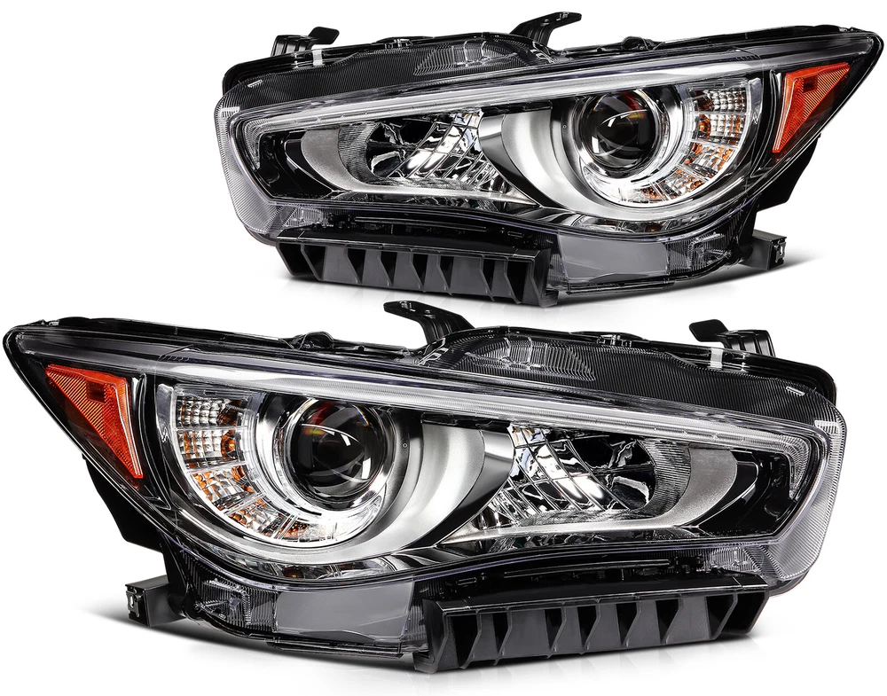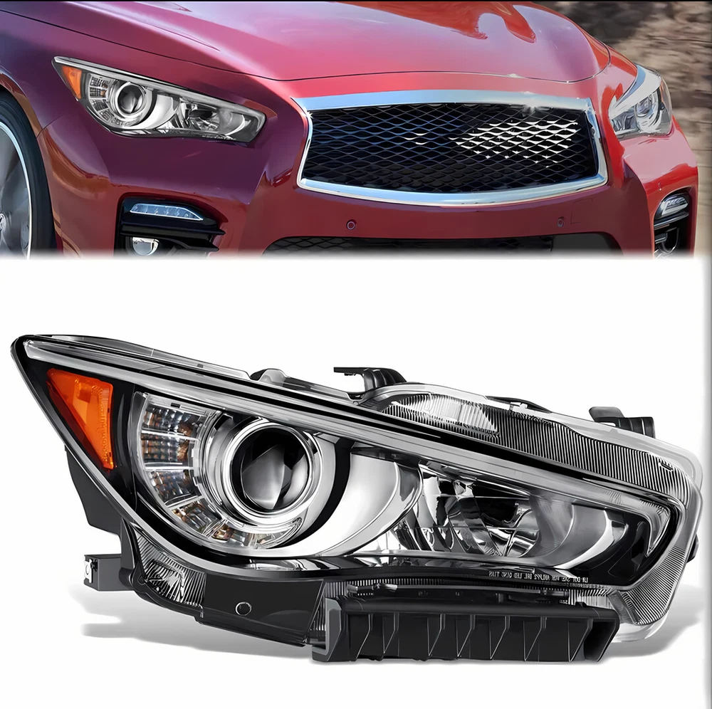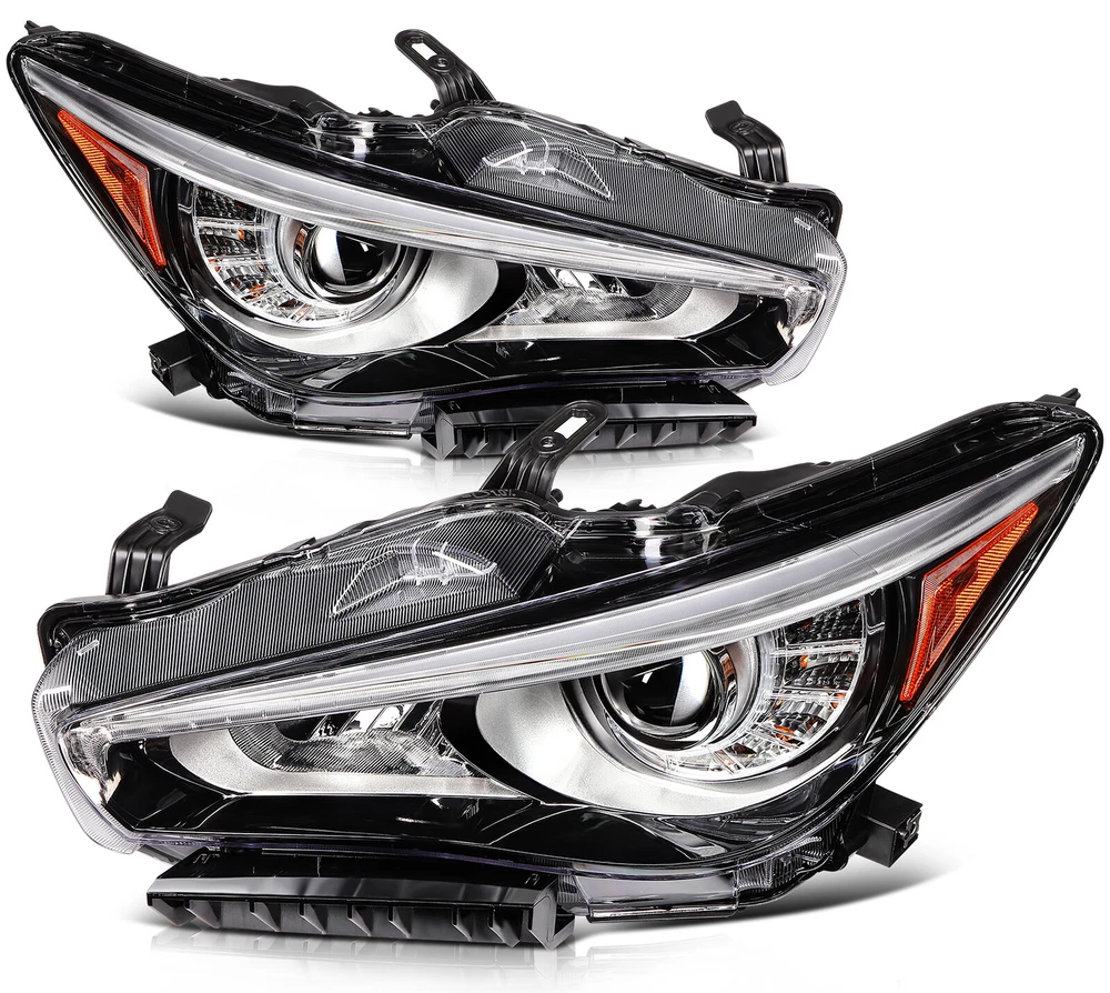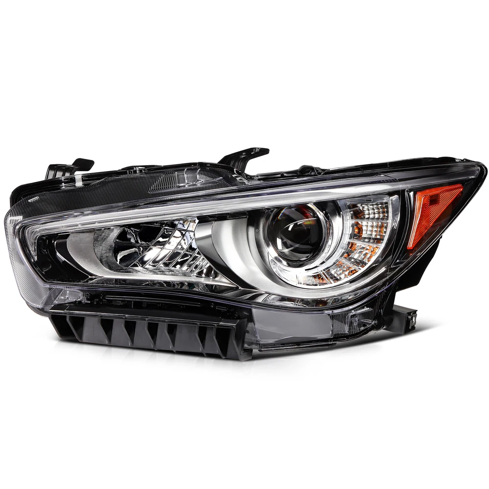 1.Vehicle Fitment [2PCS/PAIR] For 2014-2022 INFINITI Q50 Seduction Full LED Headlights w/ LEDDRL 1.Vehicle Fitment Fit Models With OEM Front Projector Full LED Headlight Assembly Without Adaptive Front Lighting System(AFS) Only Fit Models Without Adaptive Front Lighting System(AFS) Headlights Assembly Only Not Fit Models w/ OEM Front Projector HID/Xenon/Halogen Headlight Assembly Not Fit Models With Adaptive Front Lighting System(AFS) Headlights Assembly For INFINITI Q50 400 Sport Sedan 4-Door Automatic AWD/RWD 3.0L 2018-2020 For INFINITI Q50 Base Sedan 4-Door Automatic AWD/RWD 2.0L 2016-2017 For INFINITI Q50 Base Automatic AWD/RWD 3.7L 2014-2015 For INFINITI Q50 Edition 30 Automatic AWD/RWD 3.0L 2020 For INFINITI Q50 Essential Tech Automatic AWD/RWD 3.0L 2021 For INFINITI Q50 Hybrid Automatic AWD/RWD 3.5L 2014-2021 For INFINITI Q50 Inspiration Automatic AWD/RWD 3.7L 2015-2017 For INFINITI Q50 Luxe Automatic AWD/RWD 2.0L 2018-2019 For INFINITI Q50 Luxe Automatic AWD/RWD 3.0L 2018-2022 For INFINITI Q50 Luxury Automatic AWD/RWD 3.7L 2018 For INFINITI Q50 Perfection Automatic AWD/RWD 3.7L 2015-2018 For INFINITI Q50 Premium Automatic AWD/RWD 2.0L 2016-2018 For INFINITI Q50 Premium Automatic AWD/RWD 3.0L 2016-2017 For INFINITI Q50 Premium Automatic AWD/RWD 3.7L 2014-2015 For INFINITI Q50 Pure Automatic AWD/RWD 2.0L 2018-2019 For INFINITI Q50 Pure Automatic AWD/RWD 3.0L 2020-2022 For INFINITI Q50 Red Automatic AWD/RWD 3.0L 2016-2022 For INFINITI Q50 Seduction Automatic AWD/RWD 3.7L 2015-2018 For INFINITI Q50 Sensory Automatic AWD/RWD 3.0L 2021-2022 For INFINITI Q50 Signature Edition Automatic AWD/RWD 3.0L 2019-2021 For INFINITI Q50 Sport Automatic AWD/RWD 2.0L 2017 For INFINITI Q50 Sport Automatic AWD/RWD 3.0L 2016-2022 For INFINITI Q50 Sport Automatic AWD/RWD 3.7L 2014-2015 2.Package Includes:2pcs/Pair Front Projector Headlights Assembly 1xFront Driver Left LH Side Front Projector Headlights Assembly 1xFront Passenger Right RH Side Front Projector Headlights Assembly 3.Item Specification Automotive Front Projector Headlight Assembly Function Included: Projector LED Low Beam | Projector LED High Beam | Front Turn Signal Light | Front Side Maker Light | Front Parking Light | Front LED DRL | Front Position Light | Front Hazard Warning Flashers Style: Factory Style & OEM-Style & Projector Style Color: Chrome Housing | Clear Lens | Amber Corner Reflector Full LED Bulbs & Ballast & Error-Free Resistors Included: Built-in; Full LED Unit - No Bulbs are Required Wiring Harness & Mounting Hardware Included: Same as the Picture Interchange Part Number: IN2502157,IN2502179,260604HB0B,260604HB0A,260106HH7A,114-60189L,IN2503157,IN2503179,260104HB0B,260104HB0A,260606HH7A,114-60188R 4.Item Description Direct Replacement of Factory Full LED Headlights Assembly without AFS (Adaptive Front Lighting System) Made by an ISO certified manufacturer using materials that meet strict OEM requirements Each LED uses are High Power SMD LED Our Polycarbonate Lens offer Superior UV protection and a High Impact Resistance Highly Reflective Amber Reflectors offer OEM compliances with DOT and SAE standards Our Lights Use the Highest Quality Butyl Sealant to Prevent any Imperfections to Enter the Light Housing Installation Instruction Not Included Professional Installation Recommended Item Specifics Buyer Attention Full LED Bulbs & Ballast & Error-Free Resistors(Built-in) Fit Models w/ OEM Front Projector Full LED Headlight w/o AFS Only Fit w/o Adaptive Front Lighting System Model Only Not Fit Models w/ OEM Front Projector HID/Xenon/Halogen Headlight Features OE-Certified ISO-Certified DOT-Certified SAE-Certified Factory Headlights Projector Housing Brand Factory Automotive Distributors OE/OEM Part Number IN2502157 IN2502179 260604HB0B 260604HB0A 260106HH7A 114-60189L IN2503157 IN2503179 260104HB0B 260104HB0A 260606HH7A 114-60188R Type Headlight Assembly Assembly Type Composite Automotive Front Projector Headlight Assembly Function Included Projector LED Low Beam Projector LED High Beam Front Turn Signal Light Front Amber Side Maker Light Front Parking Light Front LED DRL Front Position Light Front Hazard Warning Flashers Automotive Front Projector Assembly Headlight Working Principle Light bulb is placed in a curved reflector called projector bowl This reflector focuses light onto condenser lens and emits it in a controlled and precise manner. Auto Front Projector Headlight Assembly Projector Basic Structure Light Source Elliptical-Shaped Reflector Cut-off Shield/Shutter Condenser Lens Automotive Front Projector Headlight Assembly Lens Type Condenser lens is used to focus the light and by using Condenser lens bulb will shine brighter and will exhibit less waste (scattering). Automotive Front Projector Headlight Assembly Main Components Condenser Lens Projector Housing Wiring Harness(Same as the picture) Full LED Bulbs & Ballast & Error-Free Resistors(Built-in) Mounting Hardware & Wiring Harness Included Same as the picture Lighting Technology LED Daytime Running Light(DRL) Lighting Technology SMD LED Light Color Cold White Color Temperature 6000K-6500K Housing Color Chrome Lens Color Clear Corner Reflector Color Amber Automotive Front Projector Headlight Assembly Component Materials ABS PC PMMA Plastic Automotive Front Projector Headlight Assembly Style Projector & Factory & OEM-Style Automotive Front Projector Headlight Assembly Lighting Type Projector LED Low Beam / Projector LED High Beam Automotive Front Lighting Systems Dual Beam Headlight System (one bulb with dual functions low beam & high beam integrated) Automotive Front Projector Headlight Assembly Lighting Systems Dual Beam Headlight System (one bulb with dual functions low beam & high beam integrated) Automotive Projector Headlight Assembly Trim Type Chrome & Amber Trim Performance Part Yes Vintage Part Yes Universal Fitment Yes Manufacturer Warranty 5 Years Models For[Q50 Luxe Pure Red Sport 400/I-Line ProACTIVE/I-Line Sensory Sport Tech/Plus Essential Tech Hybrid