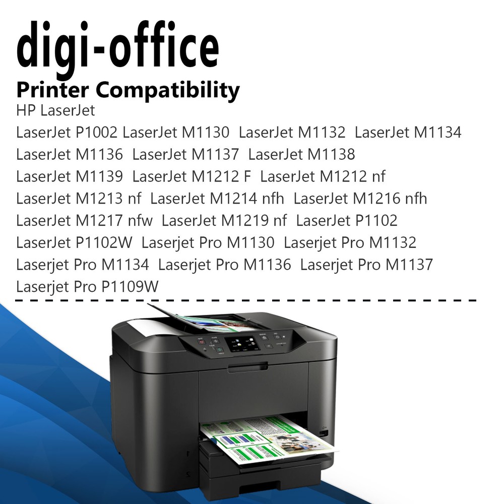 Condition: new It is certified with ISO 9001 and ISO 14001 Item:Brand New Premium Compatible For Hp CE285A Toner Cartridge Model:CE285A Color:Black Shelf Life:2 Years Printed Pages:1,500 Pages at 5% Coverage Compatible Printer models Lists: HP LaserJet M1130 HP LaserJet M1132 HP LaserJet M1134 HP LaserJet M1136 HP LaserJet M1137 HP LaserJet M1138 HP LaserJet M1139 HP LaserJet M1212 F HP LaserJet M1212 nf HP LaserJet M1213 nf HP LaserJet M1214 nfh HP LaserJet M1216 nfh HP LaserJet M1217 nfw HP LaserJet M1219 nf HP LaserJet P1102 HP LaserJet P1102W HP Laserjet Pro M1130 HP Laserjet Pro M1132 HP Laserjet Pro M1134 HP Laserjet Pro M1136 HP Laserjet Pro M1137 HP Laserjet Pro P1109W 2PK CE285A Black Tone Cartridge for HP LaserJet P1102W M1217nfw MFP P1102W P1102 Model CE285A Color Black Page Yield 1,500 pages at 5% Coverage (4A Paper) Warranty 1 Year Condition Brand New ( It is certified with ISO 9001 and ISO 14001 ) Compatible for Printers Listed Below: HP LaserJet P1002 HP LaserJet M1130 HP LaserJet M1132 HP LaserJet M1134 HP LaserJet M1136 HP LaserJet M1137 HP LaserJet M1138 HP LaserJet M1139 HP LaserJet M1212 F HP LaserJet M1212 nf HP LaserJet M1213 nf HP LaserJet M1214 nfh HP LaserJet M1216 nfh HP LaserJet M1217 nfw HP LaserJet M1219 nf HP LaserJet P1102 HP LaserJet P1102W HP Laserjet Pro M1130 HP Laserjet Pro M1132 HP Laserjet Pro M1134 HP Laserjet Pro M1136 HP Laserjet Pro M1137 HP Laserjet Pro P1109W Fast and Safe Shipping Reliability on the Move, Safety in Transportation. Print Effects Clear / Sharp / Vivid At Your Service Anytime Available to help you anytime. Please contact us through eBay messages.