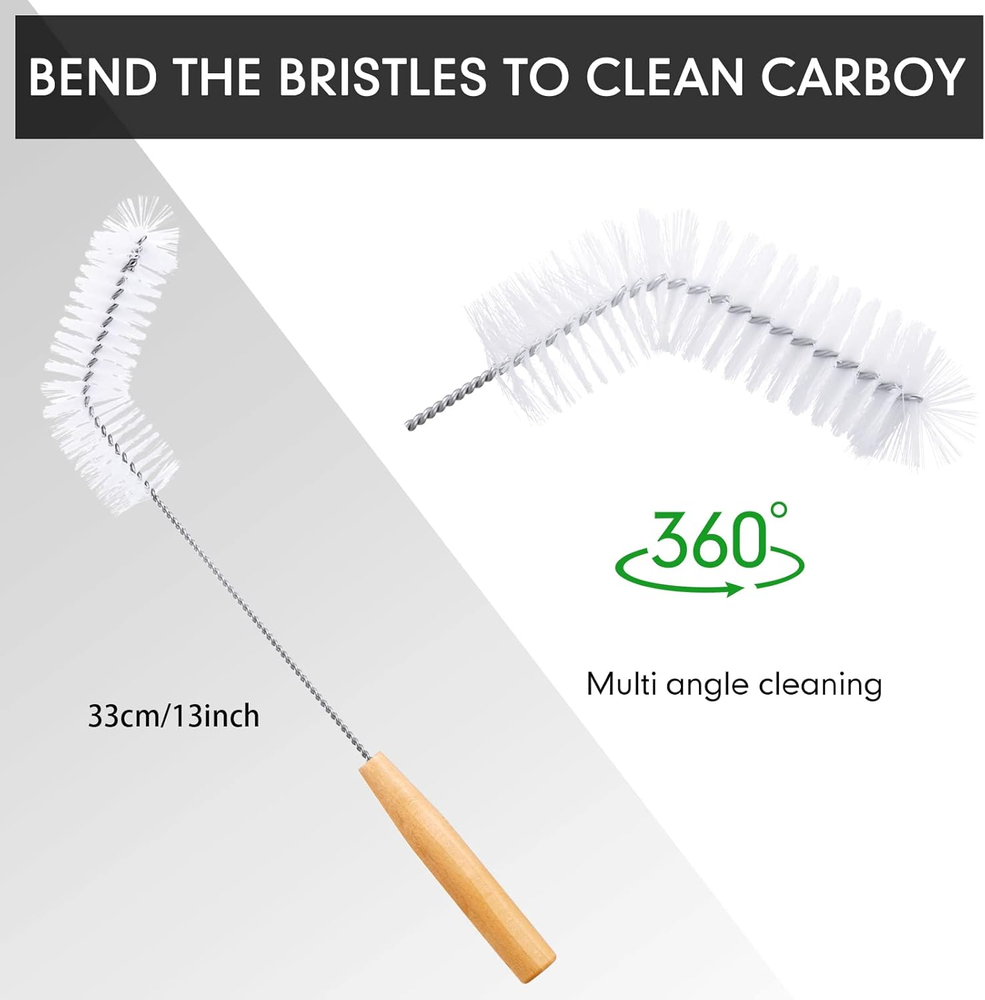 Store New Arrivals Add to Favorite View Feedback Contact 2 Pieces Nylon Carboy Cleaning Brush 13 Inch Long Gallon Jug Brush with Wood Handle Milk Bottle Cleaning Kit for 1 Gallon Glass Corny Kegs Wine Making Home Brewing Description Item Weight 0.352 ounces Package Dimensions 14.29 x 5.31 x 1.69 inches Fine Workmanship: these gallon jug brushes are made of steel wire material, lightweight and firm, the handle is made of wood material, the bristle of carboy brushes are made of nylon, touches comfortably, stylish and modern, not easy to rust or deform, allowing you to use them with confidence, providing long term service for you Where You Can Clean: our brew brush is designed with a 90 degree bend that can reach every hard to reach place in your bottle, such as the neck area, bottom, interior and sides of the bottle, they can be applied to clean the bottle without dead spots Bendable Design: the nylon bristles of the cleaning brushes are very soft and won't scratch your bottle during the cleaning process, this bendable design allows your brush to reach many places, they are good and convenient brewing supplies and tools What You Can Get: the package comes with 2 pieces of milk bottle cleaning brushes, they are about 33 cm/ 12.99 inches in length, you can use them to clean your glass and bottles, they can do well in your house Multiple Usage: our long bottle brush can not only be applied to clean the bottom of wine bottles, tableware, etc., but also can clean milk bottles, glass bottles, wine bottles, make your life more convenient, keeping your kitchen clean and tidy Features: Present supplies: You can give a long bottle cleaning brush to your family, friends, colleagues, couples, neighbors and more on birthday, wedding, ceremony, anniversary, Christmas, Thanksgiving and other important days. Bring fun: Before you clean, you can fill the bottle with an appropriate amount of water and bend the nylon bristles of the glass bottle brush, which can make it clean the bottle we need to clean faster and bring more fun to your life. Specifications: Material: Bristles of the brushes: nylon Brushes: steel wire Handle: wood Color: white Size: approx. 33 cm/ 12.99 inches in length Package includes: 2 x Carboy brushes Notes: Manual measurement, please allow slight errors on size. The color may exist slight difference due to different screen displays. ABOUT US We offer the best prices around on high quality products. Our E-store includes media such as books, movies, music and games while offering electronics, toys, sporting apparel, clothing, tools, general home, garden items and more. SHIPPING We are always working hard to ensure your package arrives as soon as possible. Please understand that some factors like weather, high postal traffic, and the performance of shipping companies are outside of our control. We offer free shipping to the lower 48 states and ship within 2 business days of payment, usually sooner. We do not accept P.O. Boxes. Please provide a physical address. RETURNS We offer a 30-Day Return Policy on items which you are not completely satisfied with. You have the option for a full-refund or an exchange of the item. No returns are available on items shipped outside of the USA. PAYMENT We accept PayPal. CONTACT US This page content is yet to come Please ad us to your favorite seller and visit again later Thank You CUSTOMER SATISFACTION We try our very best to make sure every customer is completely satisfied. If there's a problem, message us! We're happy to help.