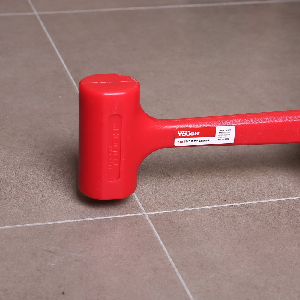 The 2 Pound Dead Blow Hammer suitable for dislodging small parts, installing or removing knock-off hubs, and for popping out small dents. Features a non-marring, non-sparking, double ended soft face with no exposed metal. This will reduce the chances of damage to surrounding surfaces & equipment and will allow the user to control the striking force while marginalizing kick back off the surface. The hollow head of the hammer is filled with steel shot which stops the bounce off from the surface after striking. The reinforced handle will not shatter or break on an overstrike. The textured handle ensures a firm, non-slip grip and bright color makes it easy to locate in worksites and differentiate between other hammers in your tool kit. The Dead blow hammer is resistant to extreme temperatures, meaning it'll stay strong through extreme heat and cold. 2 lb Dead Blow Hammer All the strength of a steel hammer but the poly cover does not mark the surface Steel shot inside head eliminates rebound, conserving energy of each blow Bright green color Diamond textured non-slip handle Great for automotive, woodworking or around the house