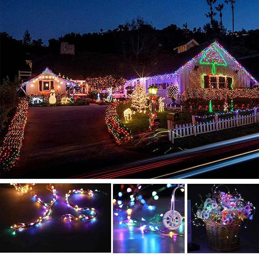 $ 7.382PCS Solar Christmas String Lights Outdoor Waterproof 200LED Copper Wire Garden