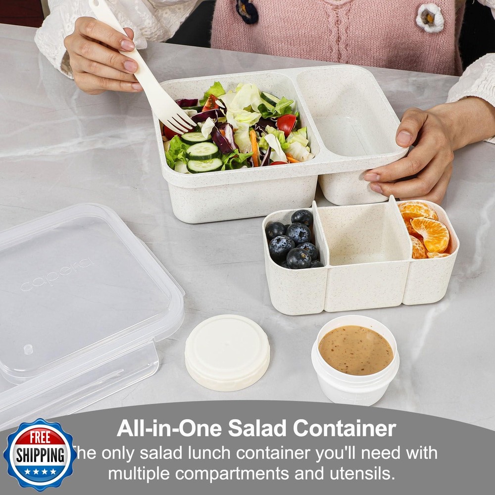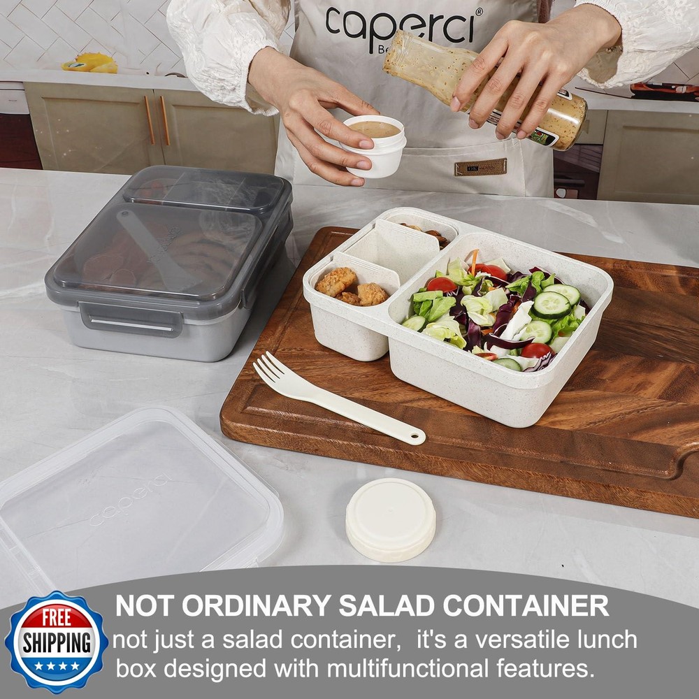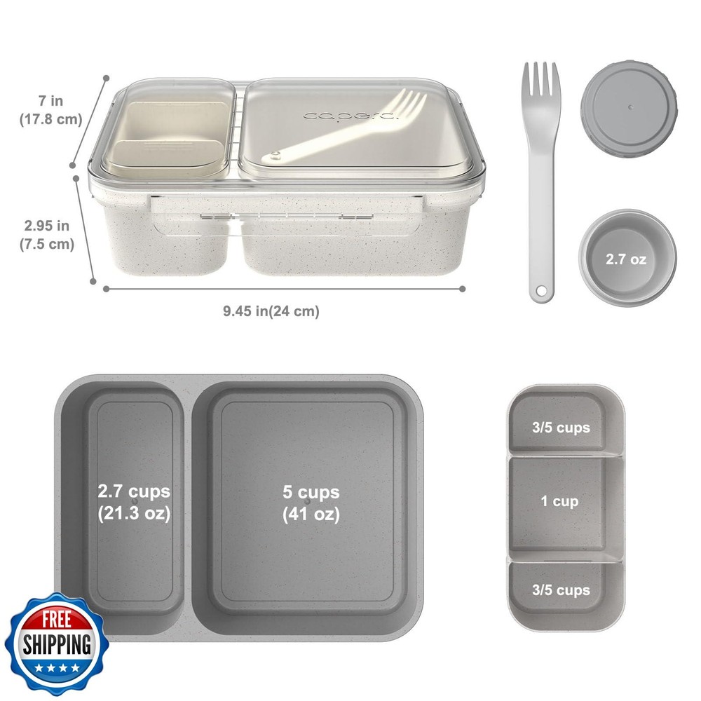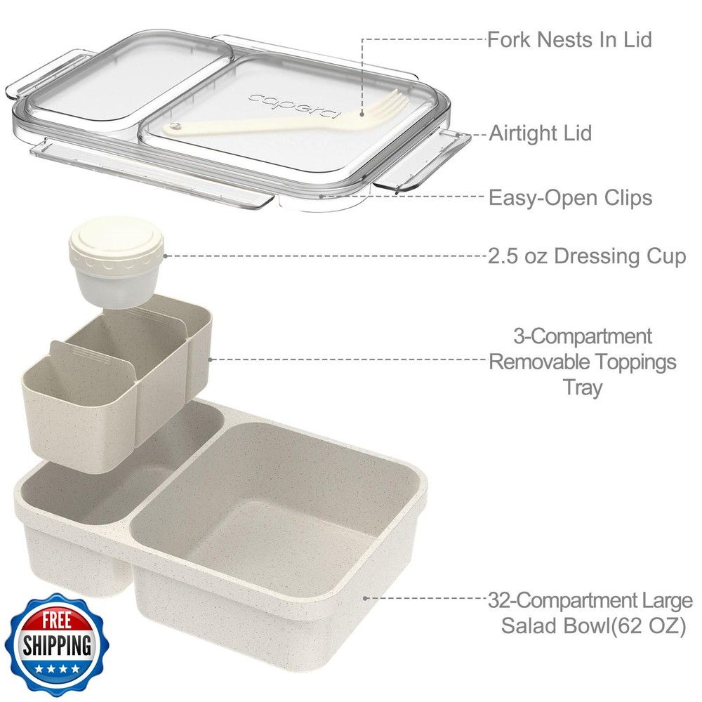 Caperci 2 Pack Salad Container for Lunch - 62 oz Large Bento Lunch Box for Adults, 2-Compartment Meal Prep Container with Removable Toppings Tray, Sauce Cup, Reusable Fork, BPA-Free (Gray and Tofu) Features Adult Salad Lunch Container & All-in-one Bento Box: Take healthy salads and other nutritious meals on the go with this all-in-one set, which features a large 5.1 cups bowl and a 2.7 cups compartment, a removeable 3-compartment toppings tray for fixings, a leak-proof sauce container, and even a reusable fork! Built-In Removeable Toppings Tray: Take healthy toppings and other nutritious snacks on the go with this 3-compartment toppings tray, which features a 1.0 cup and two 3/5 cup compartments, a leak-proof sauce container! Or skip if you don't need them. Keeps Salads & Meals Fresh: Airtight lid features a silicone sealing ring and secure lockings clips seal in freshness, while the 2-compartment food container, built-in removable toppings tray and sauce container keep salads and toppings separated, so everything stays crisp all day long and never gets soggy. Dishwasher & Microwave Safe: Everything is made of BPA-free materials that are safe, durable, and reusable. All parts are easy to clean in the top shelf of your dishwasher, while the lunch box container can go into the microwave, so you can warm chicken, pasta, and other meals. What You Get: 2 Pcs Caperci Salad Containers, 2pcs 3-compartment toppings trays, 2pcs sauce containers, 2pcs reusable forks, and caring customer support.If you experience an issue with your product, get in touch with us for a satisfied solution. Shipping Free & Fast Shipping: We offer free shipping to most of the USA with a normal delivery time of 3-7 days. However, due to the current situation, additional delivery time (up to 3 weeks) may be required for some items. Alternative Carriers: We may use alternative carriers (e.g., USPS, FedEx, UPS) to ensure your package arrives safely and on time. Due to the use of multiple carriers, we are unable to provide a tracking number automatically. Handling Time: Orders are processed and shipped within 1-2 business days of receiving cleared payment. Shipping Restrictions: Shipping to Alaska, Hawaii, Puerto Rico, Guam, and other US territories may incur shipping charges or delivery restrictions. Please contact us before ordering, or your order can be refunded/cancelled. State Restrictions: Certain items may not be shipped to California due to state regulations. Contact for Tracking Updates: If you require tracking updates or have any concerns about the delivery of your order, please feel free to contact us, and we will be happy to assist you. Return Policy 30-Day Hassle-Free Returns: If you are not completely satisfied with your purchase, you can return the item for free within 30 days of receiving it for a full refund or exchange. Easy Return Process: Contact us, and we will provide you with a prepaid return shipping label and detailed instructions. No Restocking Fee: There are no restocking fees for returns. However, the buyer is responsible for return shipping costs if the return is not due to a seller"s error. Refund Processing: Refunds will be processed within 1 business day of receiving the returned item in its original condition. Feedback Your feedback is extremely important to us. We strive to provide the best products and customer service possible. If you are satisfied with your purchase, please take a moment to leave us a positive review. If you have any concerns or issues with your order, please contact us before leaving negative feedback. We are committed to resolving any problems and ensuring your satisfaction. Contact Us If you have any questions or concerns, please feel free to reach out to our customer support team. You can contact us through the eBay messaging system. We are available Monday to Friday, 9:00 am to 5:00 pm EST, and we will do our best to respond to your inquiry within 24 hours. Thank you for supporting our small family business!