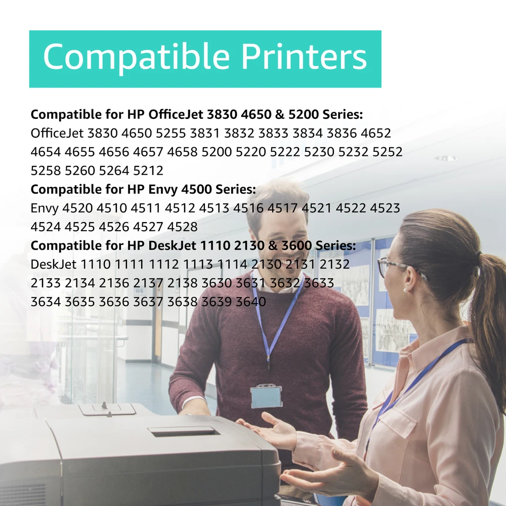 Note: Cartridges are similar to the pictures. Sometimes there are differences due to different suppliers. Product Features Contents: For HP 63XL Black (Show Accurate Ink Levels) Warranty 100% satisfaction guaranteed. Ink Type: Black - Pigment Cartridge Type: Remanufactured(Not OEM) Package include: 2X Black Page Yield: black-700 pages per ink cartridge (determined by 5% page coverage) Compatible With: For HP OfficeJet Series: 3830 3831 3832 3833 3834 5200 4650 4652 4654 4655 5255 5258 5260 For HP ENVY Series: 4510 4511 4512 4513 4516 4520 4522 4524 4525 4526 For HP DeskJet Series: 1110 1111 1112 2130 2131 2132 2133 2134 2136 3630 3631 3632 3633 3634 3635 3636 3637 3638 Seller Note If the printer does not work after installing the cartridge, clean the chip contacts of the cartridge with an eraser or cotton swab. Be careful not to touch the ink nozzles at the bottom of the cartridge. Precautions for Ink Cartridge Use 1. When handling new ink cartridge,don’t touch the electrical contacts or print head nozzle on a cartridge. 2.Do not remove the electrical contacts except for the protective tape. Otherwise the machine will not work properly. 3.If the printer prompts "Low Ink" or "Empty" (or similar messages), you can click "OK", "Continue" or "√" to bypass the printer prompts and use the cartridge directly. Payment 1. We accept Paypal, Visa and MasterCard as payment methods. To pay, please use the eBay checkout system. All orders must be paid immediately. 2. Please do not use the PayPal note field to instruct us to ship to another address. The note will not be read. If you wish to change your shipping address, please contact us via eBay message. 3. If you wish to cancel your order, please request a cancellation within 1 hour of payment, otherwise you will need to contact eBay customer service to cancel your order. Shipping 1. We will provide you with free standard shipping on orders within the United States. 2. Free shipping does not include shipments to AK, HI, GU, PR, VI, PO BOX, military addresses/bases APO and FPO. 3.Shipping within just 24 hours after receipt of payment. (If there is a weekend or holiday in between, the term will be extended accordingly.) Returns 1. Full refund (excluding shipping costs) is available within 30 days from the date of purchase. Any defective or damaged item can be returned or exchanged within 60 days from the date of purchase. 2.Any defective/damaged item can be replaced within 180 days from the date of purchase (we define an item as defective only if it does not function as described). 3.Please contact us via eBay message before making a request to have the opportunity to resolve or correct the problem.