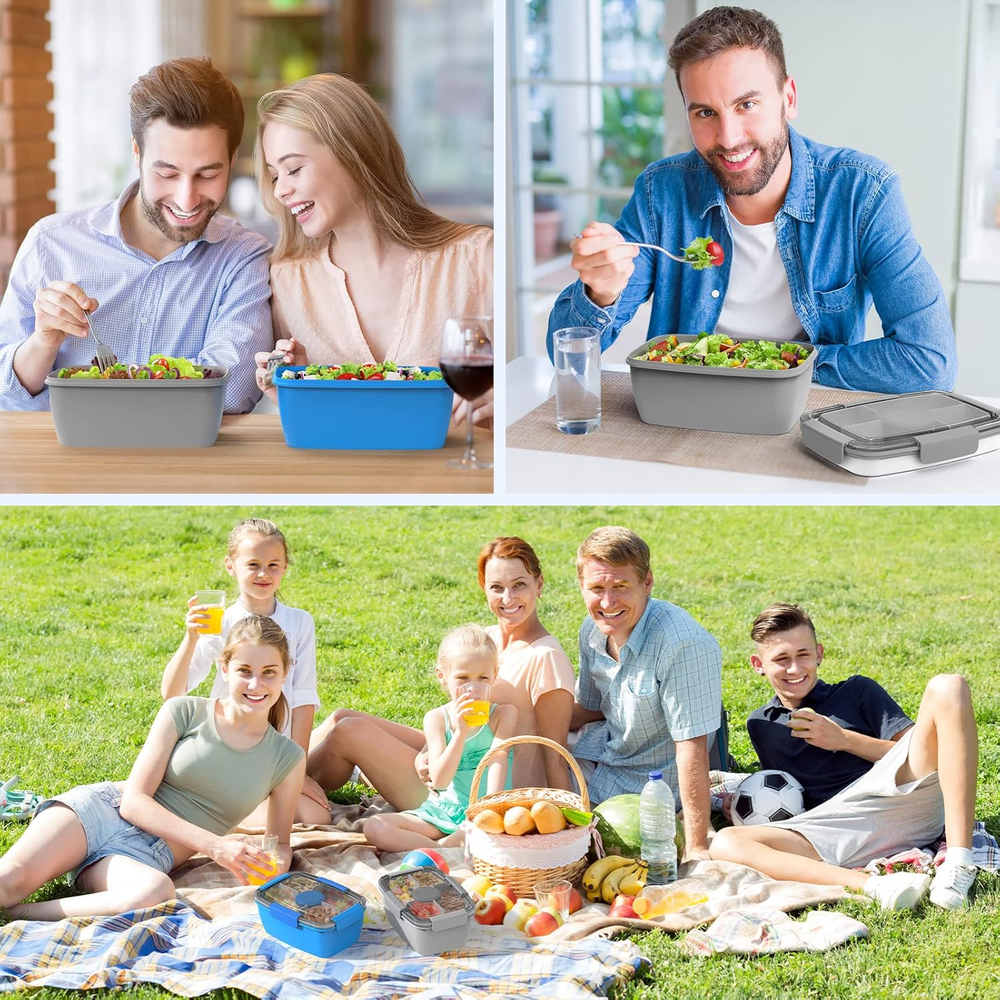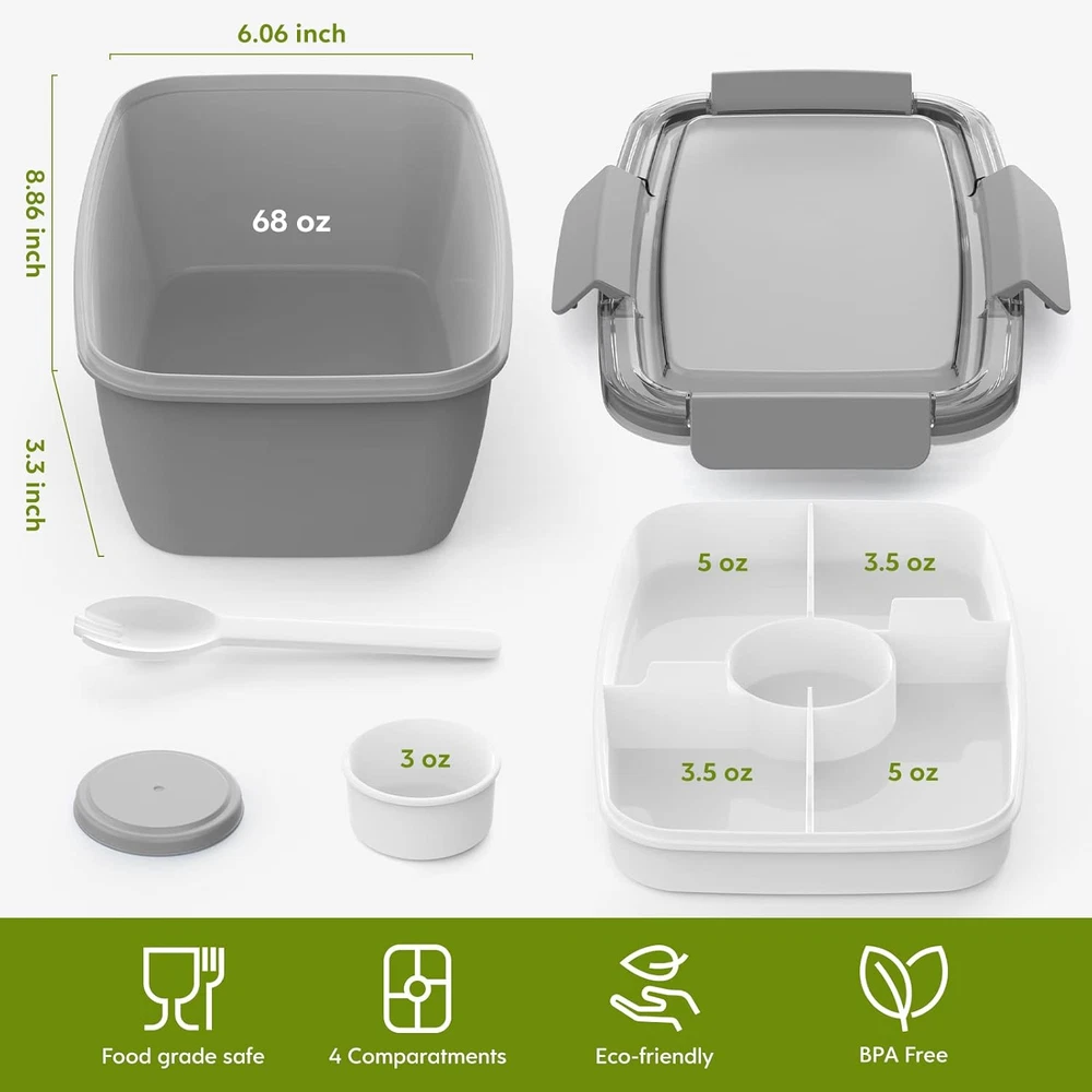 Store New Arrivals Add to Favorite View Feedback Contact Fast deliveries to the customer's home Quality customer service John Make the customers happy! 2Pack Salad Lunch Container, 68Oz Salad Bowls with 4 Compartments Tray,Leak Proof Lunch Box with Fork for Men,Women Bpa-Free Snack Container with Sauce Container for Dressings-Grey Description 4 Compartments to Keep Food Fresh - Get benefit from brilliant idea of the Dietitian,our Salad compartment lunch box match with 4 compartments and 1 separate salad dressings container that allows you to bring a range of different foods without them mixing together in a soggy Large Salad Lunch Container - 68-oz salad bowl is large enough to pack a balanced meal for any size of appetite from kids to adults. 2 large compartments with 5oz for meat as well as fruit. The small compartments with 3oz can be paired with snacks and nuts.It fits easily into your backpack or handbag, making it ideal for use in picnic, office,gym, school, travel, or wherever you want Food Safety Materials - For the health of kids and adults,our salad to go plastic container made of safety materials BPA free, durable, tasteless, non-toxic. It is microwave safe( please open and remove the lid while you microwave the food) freezer safe,dishwasher safe. (Compartments and lid need to be washed separately and cannot be placed in the dishwasher) Seal Ring & Tight Buckle to Reinforced Leak Proof - Come with silicone sealing ring and airtight lid.Store your salad fresh all the day.Unlike other bento boxes, Cherrysea bento salad container with 4 tight buckles to prevent accidental spills What You Get - 2 x salad container to go, 2 x dressings container, 2 x salad fork. Cherrysea customer service,if you have any question with our 68 OZ large capacity salad lunch container,please get in touch with us for a satisfied solution., we will help you ASAP Product Description Item model number SA Style Kids Capacity 2 Liters Number of Items 1 Pattern Solid Theme Grey Number of Pieces 2 Unit Count 1.7583 Fl Oz Number of Compartments 6 Material Plastic Age Range (Description) Kid Item Form Box Included Components 2 x salad container, dressings fork Closure Type Clip Item Weight 1.7 pounds Material Type Free BPA Free Special Feature Leak Resistant, Freezer Safe, Micro Color 2Pack-Grey Shape Fruit Recommended Uses For Product Travel, School, Picnic Product Dimensions 3.8"D x 6.5"W x 3.8"H Product Care Instructions Hand Wash Only, Dishwasher Safe Size 68OZ ABOUT US We offer the best prices around on high quality products. Our E-store includes media such as books, movies, music and games while offering electronics, toys, sporting apparel, clothing, tools, general home, garden items and more. SHIPPING We are always working hard to ensure your package arrives as soon as possible. Please understand that some factors like weather, high postal traffic, and the performance of shipping companies are outside of our control. We offer free shipping to the lower 48 states and ship within 2 business days of payment, usually sooner. We do not accept P.O. Boxes. Please provide a physical address. For shipping outside of the continental USA, we only use eBay's Global Shipping Program. The item is shipped to KY and then sent to the rest of the world. International customers are responsible for all duties and taxes. Continue to 'check out' to calculate costs for shipping the item to your country. Messages regarding eBay's Global Shipping Program MUST be directed at eBay EXCLUSIVELY. RETURNS We offer a 30-Day Return Policy on items in which you are not completely satisfied with. You have the option of a full-refund or an exchange of the item. No returns are available on items shipped outside of the USA PAYMENT We accept PayPal. CONTACT US This page content is yet to come Please ad us to your favorite seller and visit again later Thank You CUSTOMER SATISFACTION We try our very best to make sure every customer is completely satisfied. If there's a problem, message us! We're happy to help. WE ACCEPT