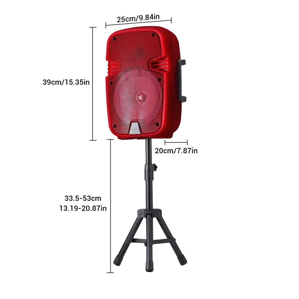 2 Sets Portable Party Bluetooth Speaker 8" Subwoofer Bass Led Tws Fm W/Mic Stand 2 Sets 8-inch Bluetooth Speaker with Transparent Case & Stand (TMS-801SM Red) - Bluetooth, TF Card, USB, AUX, TWS, Dual Mic, Remote Control Elevate your audio experience with our 2 Sets of 8-inch Bluetooth Speakers (TMS-801SM Red) . Designed for both indoor and outdoor use, these speakers deliver powerful sound with a sleek, transparent red ABS casing. Perfect for parties, gatherings, or personal use, this bundle includes everything you need to get started. 1.High-Quality Sound & Versatile Connectivity: Equipped with an 8-inch speaker, this Bluetooth speaker delivers rich, powerful sound. It supports multiple connectivity options including Bluetooth, TF Card, USB, AUX, and TWS (True Wireless Stereo) for seamless pairing with your devices. 2.Complete Set with Accessories: Each set includes a stand, remote control, TYPE-C charging cable, wired microphone, and an English manual . Everything you need for a hassle-free setup and operation. 3.Long Battery Life & Fast Charging: Powered by a DC 5V 1A battery, the speaker charges in just 2 hours (indicated by a red LED light). Enjoy up to 1 hour of continuous playback on a full charge, making it ideal for extended use. 4.Dual Microphone & Remote Control: Comes with 2 wired microphones and 2 remote controls , allowing you to control the speaker and enjoy karaoke sessions or voice amplification with ease. 5.Stylish Design & Portability: The transparent red ABS casing not only looks modern but also ensures durability. The included stands provide stability, making it easy to place the speakers anywhere. Specifications: Material: ABS Color: Transparent Red Bluetooth Model: TMS-801SM Speaker Size: 8-inch Power Supply: DC 5V 1A Charging Time: ~2 hours Playback Time: Up to 1 hour Included Items: 2x 8-inch Bluetooth Speakers, 2x Stands, 2x Remote Controls, 2x TYPE-C Charging Cables, 2x Wired Microphones, 2x English Manuals Why Choose This Product? Perfect for Parties: With dual microphones and powerful sound, these speakers are ideal for karaoke, events, or outdoor gatherings. Easy to Use: Simple controls and multiple connectivity options make it user-friendly. Portable & Durable: Lightweight yet sturdy design ensures you can take it anywhere without worry. Package Includes: 2x 8-inch Bluetooth Speakers 2x Stands 2x Remote Controls 2x TYPE-C Charging Cables 2x Wired Microphones 2x English Manuals Get Yours Today! Upgrade your audio setup with this versatile and stylish Bluetooth speaker bundle. Perfect for music lovers, party hosts, or anyone who appreciates high-quality sound. Order now and enjoy the ultimate audio experience! Note: Ensure the speaker is fully charged before first use. For optimal performance, keep the speaker within the Bluetooth range (typically 10 meters). Payment Shipping Return Feedback Question Payment We accept payment via Paypal ONLY. Immediate payment is required & Shipping will be arranged only your payment is cleared. Shipping Same business day dispatch if paid by 4 pm EST(1 pm PDT). No shipping on weekend or Public Holidays & No responsibility for any customs duty. Return We stand behind our products. Items can be returned for exchange or full refund within 60 days from the date you receive your item. Return shipping is the responsibility of buyer unless the return is a result of our mistake (i.e., your receive the wrong item or damaged item). We will pay for shipping replacement back to you if an exchange is requested. If you want to initiate a return, simply clicks "Return this item" next to the transaction in My eBay, chooses a reason, and prints a return shipping label and packing slip. We’re automatically notified. Feedback Please leave us a FIVE star and POSITIVE feedback if you are satisfied with our product and service. Neutral or negative feedback will not solve problems happily. We believe communication will fix problems and hope every customer can have a good purchasing experience. Question All ebay message will be responded within 1 business day or less, except weekends and holiday!