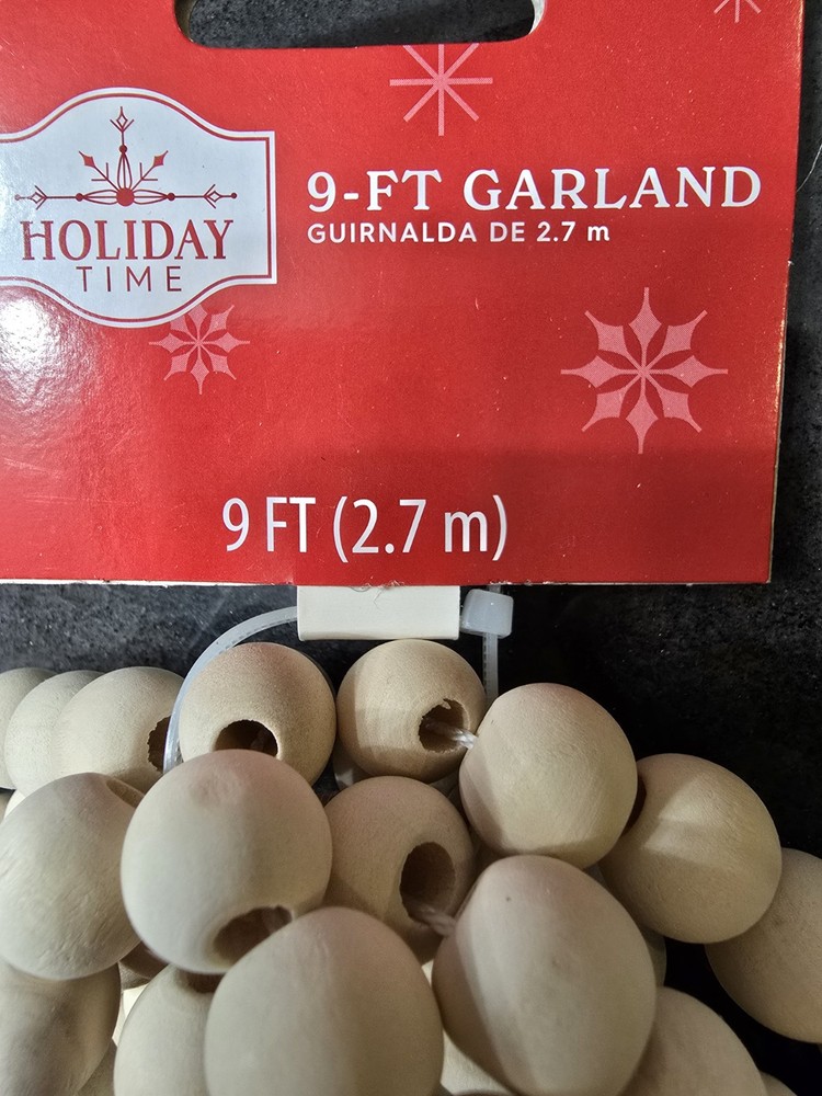 Price for both Garland sets. 9ft each pack Natural Brown Wooden Bead Christmas Garland Bundle, Holiday Time. Everything is new with tag