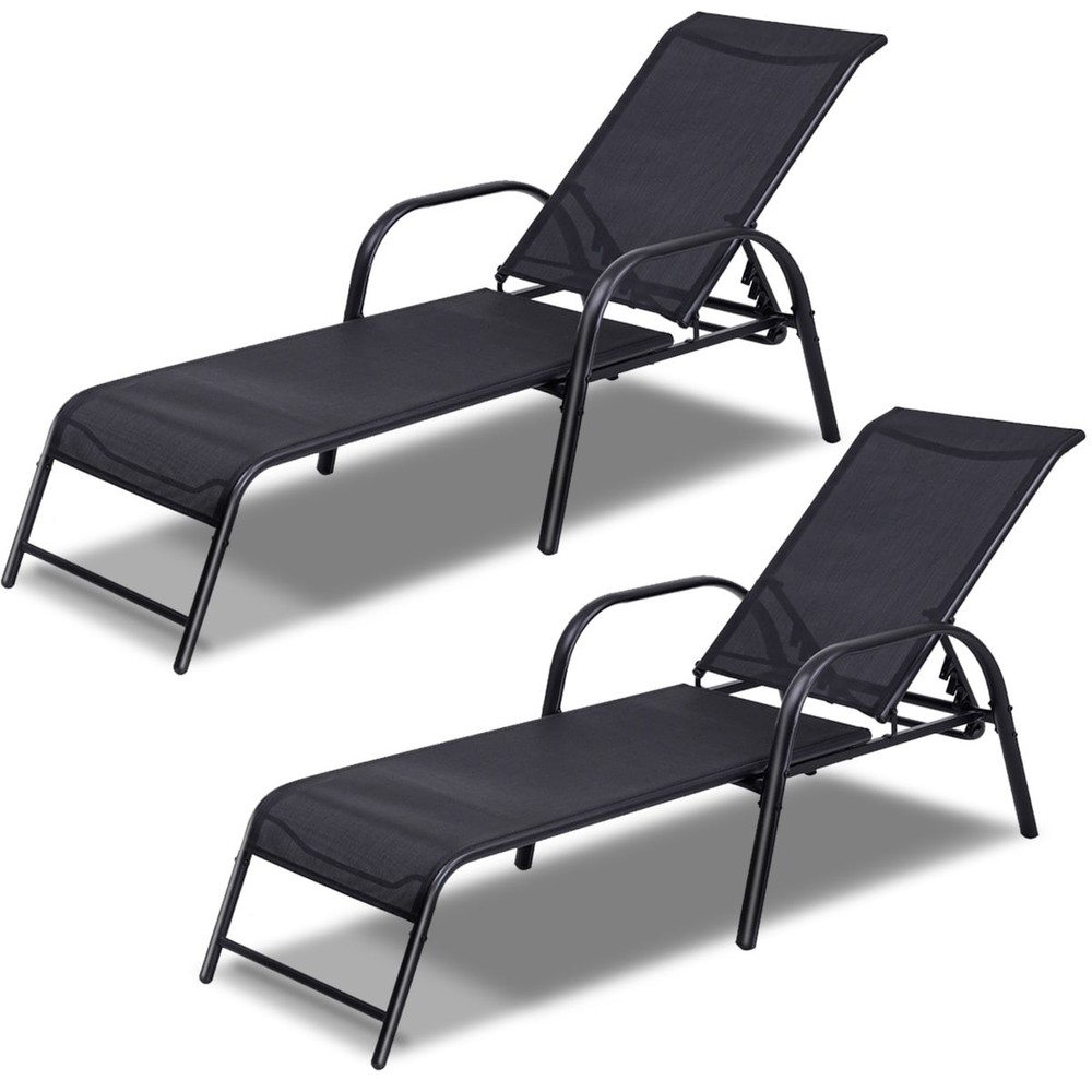 2-Pack Black Adjustable Outdoor Patio Lounge Chairs