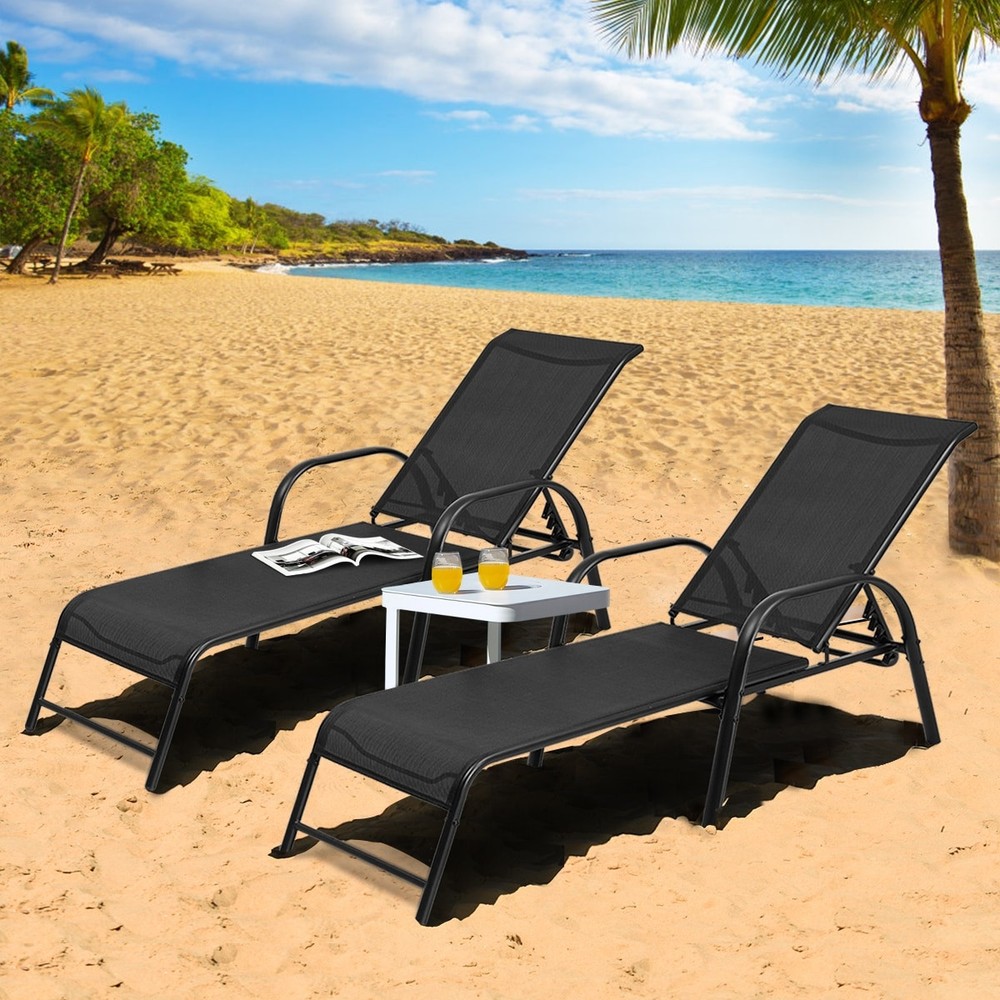 1. Absolutely love these lounge chairs! The adjustable backrest makes it easy to find the perfect position for sunbathing or relaxing. The sturdy steel frame and breathable fabric hold up well outdoors, and the wide armrests add extra comfort. Perfect by the pool or on the patio—great value for a set of two!