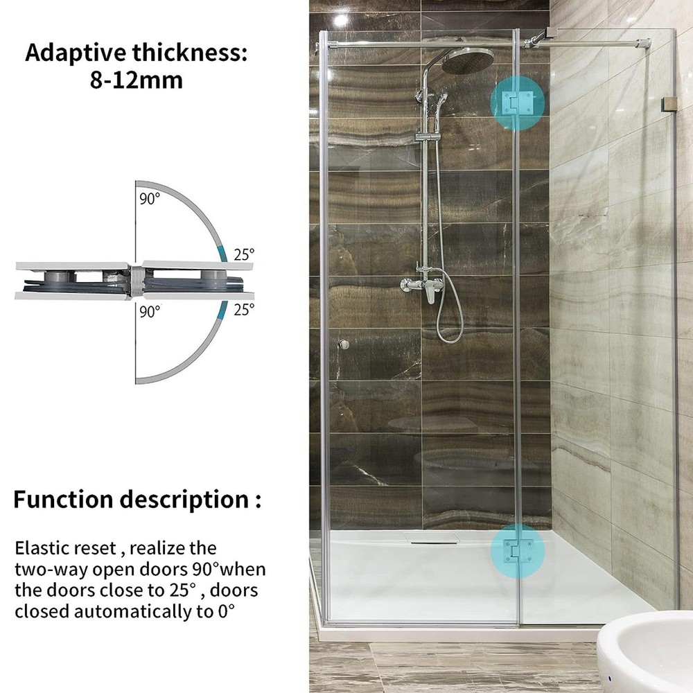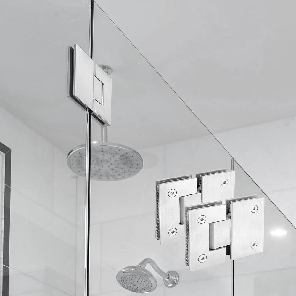 2 Pack 180 Degree Frameless Glass Shower Door Hinges, Brushed Nickel Shower9127 [Note]The 180 degree glass door hinge is suitable for 5/16 to 1/2 inch (8mm-12mm) thick glass, with a maximum load-bearing capacity of 120 pounds. Wall to glass bracket, please purchase according to your needs [304 Stainless Steel Door Hinge]The shower door hinge is made of heavy-duty brushed 304 stainless steel, which is not rusty, -, easy to break or deform, and the brushed does not change color. The thickness of the frameless glass door hinge is 4mm, which is . [180 degree glass door hinge]The replacement of the 180 degree glass door hinge allows for bi-directional opening, flexible and noise free, and each hinge has elastic function. When the door closes to nearly 25 degrees, it automatically close backwards [Easy to Installation]The installation of the shower door hinge is fast and convenient, equipped with installation hardware, making your installation more convenient. The hinge of the glass cabinet door is equipped with high-quality anti slip adhesive to protect your glass from damage. [HEAVY DUTY GLASS SHOWER DOOR HINGES]Frameless shower hinges made of high quality stainless steel with high hardness, sturdy and , rust and resistance; Brushed finish has been special treatment, build to resist daily scratches and tarnishing Colour:silver Material:304 stainless steel Package Contents: 2 x Door Hinge 2 x wrench