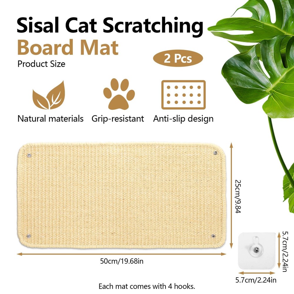 eBay Product Listing Welcome to Your Favorite My Store Your satisfaction is our top priority – Shop confidently Sisal Cat Scratch Pad for Indoor Cats, 19.6" x 9.8" Mountable Cat Wall Scratcher Carpet, Perforated Cat Scratch Furniture Protector for Couch Corner Door Sofa Climbing Hanging (2 Pack) Item Gallery Item Description 【Size Information】You can get 2 sisal cat scratcher rugs, which are 19.6" x 9.8" (50 x 25 cm). They can provide a firm enough surface for your cat to sharpen his claws without hurting. Let your cat release its nature while protecting your furniture. 【Easy to Install】Our scratch pad for cats has perforated holes in all four corners, making it easier for you to install and fix. They are also suitable for mounting on your old cat post or cat scratching board, making them last longer. 【Solid and Wear-Resistant】Comparing with normal cat scratching board, our cat scratch pad is made of premium sisal, stronger and more breathable, also it doesn't create a lot of debris after using. 【Cat Scratch Guards for Furniture】Our cat scratch mats use edge-locking technology, not easy to come loose. They can cover cat scratches and give cats a place to scratch, stopping your cat damaging floor and wall. 【Wide Application】Our cat scratching mat is easy to put basically anywhere, it can be fixed easily by ropes or screws. You can put it in place where your cat often scratches, also you can install it on your couch, floor, wall, and door. Special Features Our sisal scratch pads are finely woven, sturdy and breathable, you can fix them on wall, sofa, door, and cabinet for use. Not just a scratching pad, it can also be used as a little mat on floor to let your cat play and rest. Product Features Great Gift Option: Our classy and solid cat scratch pads will be a very thoughtful and handy gift for cat lover. You can gift them to your family, friends, neighbors, and colleagues who have cat on birthday, Christmas, and Thanksgiving. Small and Soft: If you use our couch cat scratch protector on wall or furniture, it can protect your wall and furniture without taking up extra space. If you just put it on floor, it is also convenient to and use. Various Ways to Use: You can use hooks or screws to hang this cat carpet protector, or you don't want to hurt paint on your furniture or walls, you can use string to hold it in place. Directly put it on floor is also a good way to use. Specification Material: Sisal Color: Beige Size: 19.6" x 9.8" (50 x 25 cm) Package Contents: 2 x Cat Scratch Pad Our Guarantee To You We offer fast shipping, free delivery, and 100% customer satisfaction guarantee. Not satisfied? Return your item for free within 30 days. 30-Day Free Returns Shipping Details Items will be sent to your eBay address. Please verify before purchasing. Typical delivery within 3-7 business days. Professional shipping services used for all orders. We ship to the continental US (48 states only). Unable to deliver to Alaska, Hawaii, or territories. No APO/FPO or PO Box deliveries available. We use eco-friendly packaging Payment Options We accept these secure payment methods: All transactions securely processed through eBay's payment system. Simple Returns 30-Day Satisfaction Promise Contact us through eBay messages within 30 days of delivery. We'll provide return instructions and our address. Return the item in its original condition. We'll process your refund within 48 hours of receiving the item. Get In Touch Have questions about your order? Contact us through eBay messaging for prompt assistance. We typically respond within 24 hours.