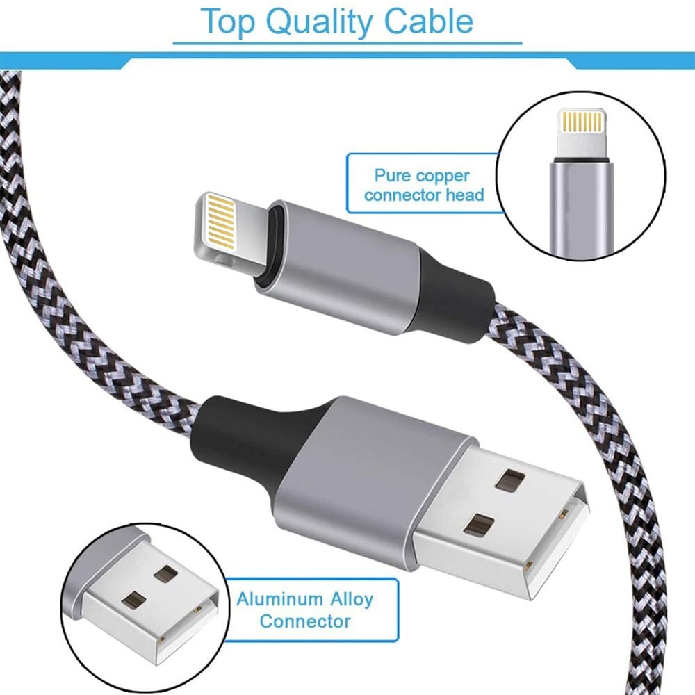 iPhone Fast Charger,iPhone Charger Fast Charging 2Pack Dual Port USB Wall Charger Block Adapter Plug Long 6FT Fast Charging Lightning Cable Cord for iPhone 14 13 12 11 Pro Max XS X 8 7 Plus SE iPad - 2 Pack - 6 Ft - USB, Lightning - Compatible Devices: Compatible with iPhone 14, iPhone 14 Plus, iPhone 14 Pro, iPhone 14 Pro Max, iPhone 13, iPhone 13 Mini, iPhone 13 Pro, iPhone 13 Pro Max, iPhone 12, iPhone 12 Mini, iPhone 12 Pro, iPhone 12 Pro Max, iPhone SE 2020, iPhone 11, iPhone 11 Pro, iPhone 11 Pro Max, iPhone X, iPhone XR, iPhone XS, iPhone XS Max, iPhone 8, iPhone 8 Plus, iPhone 7, iPhone 7 Plus, iPhone 6s, iPhone 6s Plus, iPhone 6, iPhone 6 Plus, iPhone 5S, iPhone SE, iPhone 5, iPhone 5C, iPad Air, iPad mini, iPad Pro, iPod, Airpods, Airpods Pro - Compatible phone models: Compatible with iPhone 14, iPhone 14 Plus, iPhone 14 Pro, iPhone 14 Pro Max, iPhone 13, iPhone 13 Mini, iPhone 13 Pro, iPhone 13 Pro Max, iPhone 12, iPhone 12 Mini, iPhone 12 Pro, iPhone 12 Pro Max, iPhone SE 2020, iPhone 11, iPhone 11 Pro, iPhone 11 Pro Max, iPhone X, iPhone XR, iPhone XS, iPhone XS Max, iPhone 8, iPhone 8 Plus, iPhone 7, iPhone 7 Plus, iPhone 6s, iPhone 6s Plus, iPhone 6, iPhone 6 Plus, iPhone 5S, iPhone SE, iPhone 5, iPhone 5C, iPad Air, iPad mini, iPad Pro, iPod, Airpods, Airpods Pro [Dual Port USB Phone Chargers iPhone]:You can feel free to use this dual-port for charging two devices like iphone 14 13 and iphone 14 13 pro at the same time!Meanwhile,you can feel relief even when sleeping or taking a nap. [6FT Nylon Braided iPhone Charger Cord]:Perfect 6Ft/2m length charger iphone suitable for fast charging in your room,sofa and office which ensures more convenient for your usage.In addition, the surface of nylon fiber weaving, bending torsional is not easy to break. [Lightweight & Compact iPhone Fast Charger]:The iphone charger block are compact and easily portable. Simply plug in the USB cable, and plug the adapter into the wall. Rapid USB wall charger to keep your quick charging which is ideal for worldwide travel. [2PACK Fast Charger iPhone]:The iphone charger with wall plug work for your devices fast charging for iPhone XS Max/XS/XR/X/8/8 Plus/7/7 Plus/6/6s/6s Plus/SE (1st generation)/5/5s/5c,iPhone SE(2nd generation)/11/11 Pro/11 Pro Max/12/12 Pro/12 Pro Max/12 Mini/13/13 Pro/13 Pro Max/13 Mini/iPhone 14/14 Plus/14 Pro/14 Pro Max,iPad/iPod. [What You Get]:2 X iPhone Certified Nylon Braided Lightning Cables in length 6ft and 2 X 10.5W iPhone Charger with Block.
