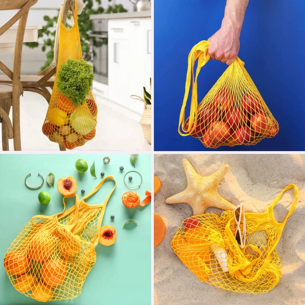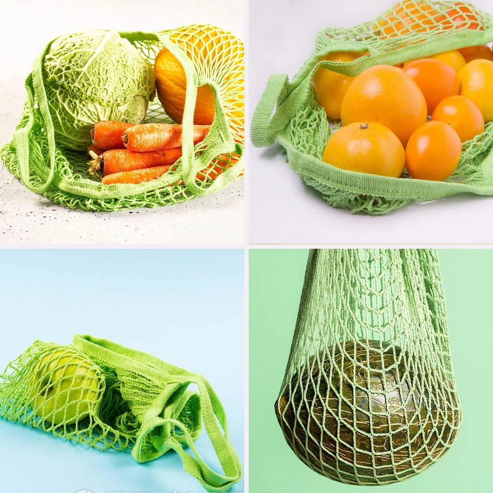 【Material Quality】This bag is made of 100% cotton, which is safe and environmentally friendly. 【Large Capacity and Sturdy】This bag is very sturdy and can hold a lot of things. It can be stretched, and the capacity after stretching may exceed your expectations. They are perfect for the home, grocery store and farmers market. The long handle makes it easy to carry, and you can tie a knot for added security. 【Light and Portable】This mesh bag is very light and very convenient to carry because it takes up very little space. You can keep them in your bag or in your car. 【Easy to clean and reusable】You can hand wash and machine wash, or dry in the dryer and use repeatedly. 【Wide Use】This stylish mesh storage bag can be used in many scenarios and hold various items. If it is used for shopping in shopping malls, grocery shopping, grocery storage, storage bags for vegetable and fruit merchants, it can be hung on the wall, or you can hang a basketball on the wall, it will look very fashionable and beautiful.