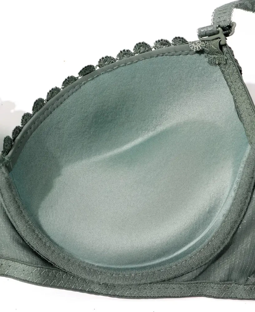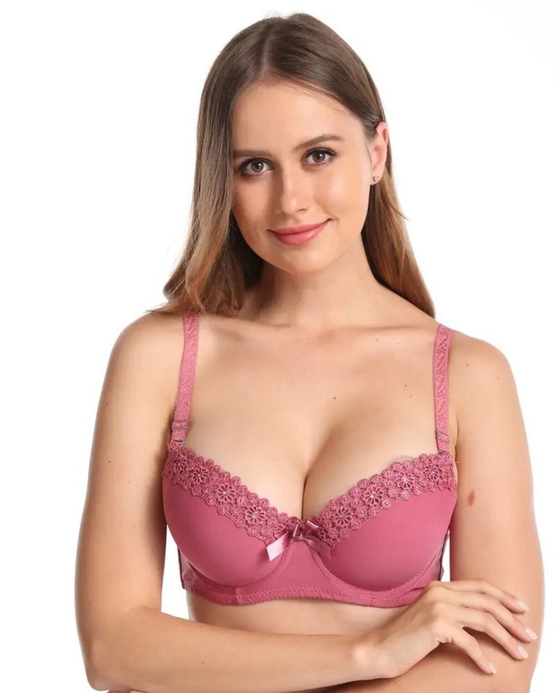 2 pcs. Elegant Women’s Underwire Bras with Floral Appliqué - Comfortable and Supportive, Unpadded, Medium Support, Hand Wash Only - Pink and Green. Product Information: Underbust 27.6-33.9 inches. Tag size 85B, US 38B.