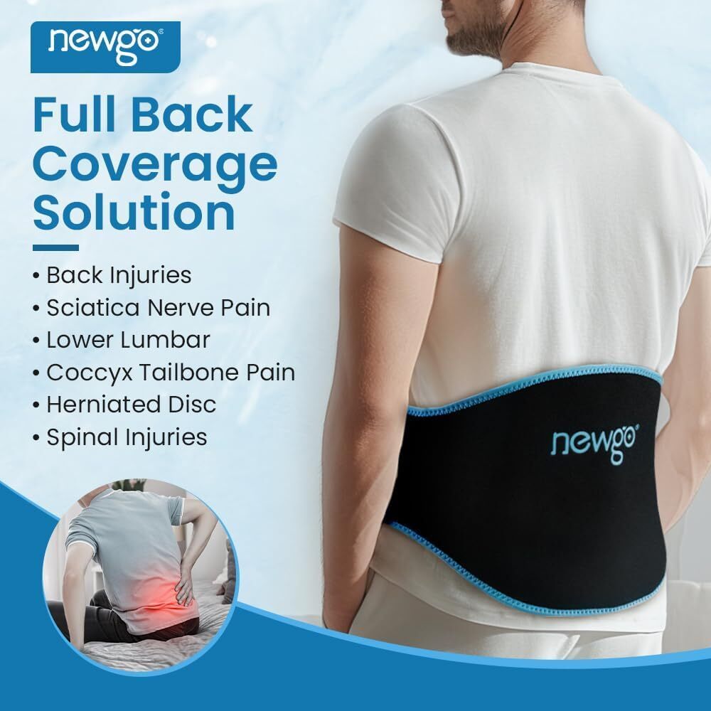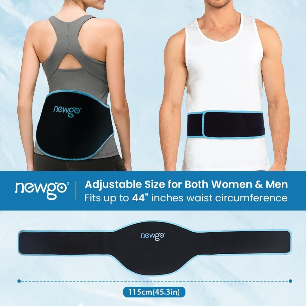 NEWGO Ice Pack for Lower Back Pain Relief β Dual Pack with Adjustable Belt Say goodbye to stubborn back pain with the NEWGO Ice Pack for Lower Back , designed to provide maximum pain relief and comfort. Whether youβre recovering from surgery, managing chronic back pain, or seeking relief after gardening or household chores, this versatile ice pack is your go-to solution for pain relief and faster recovery. π Why Choose the NEWGO Ice Pack for Back? β Comprehensive Lower Back Pain Relief Specially designed to contour around your back and tailbone, this ice pack covers the entire lower and upper back area. Ideal for sciatica, spinal injuries, herniated discs, pulled muscles, and more. Enjoy soothing pain relief at home or on the go. β Dual Pack Design for Continuous Relief Includes 2 high-quality gel ice packs and a durable waist belt. Use one cold and one warm pack alternately for continuous therapy β perfect for extended pain relief or faster recovery. Each gel pack is made from medical-grade vinyl with a strong nylon lining to prevent leaks. β Adjustable Fit for Everyone With 2 long adjustable Velcro straps , this wrap supports up to a 46-inch waist circumference , ensuring a snug and secure fit for various body sizes. Stay comfortable and confident as you move around the house or rest. β Remains Flexible When Frozen The medical-grade gel with a lower freezing point (-13β) remains pliable even when frozen. It molds comfortably to your back for deep, penetrating cold therapy. For heat therapy, simply microwave the pack for 20 seconds to relieve muscle spasms. β Versatile and Multi-Use More than just for your back! Use this ice pack to target pain in your hip, torso, or upper thigh. Great for post-surgery recovery or as a supportive brace to limit movement during healing. π§ Product Specifications: βοΈ Size: One size fits most, adjustable up to 46 inches βοΈ Material: Medical-grade vinyl, strong nylon lining βοΈ Includes: 2 gel ice packs + 1 waist belt βοΈ Usage: Cold therapy (freeze 2-4 hours) & heat therapy (microwave 20 seconds) βοΈ Application: Back pain, sciatica, herniated disc, muscle spasms, post-surgery π‘ Perfect For: β Chronic lower back pain β Post-surgery support β Sports injuries and muscle spasms β Everyday pain relief after household chores or gardening π Enjoy Free Shipping & Hassle-Free Returns! We offer FREE SHIPPING on all orders and a no-questions-asked return policy to guarantee your complete satisfaction. Shop confidently knowing your purchase is backed by our commitment to quality and service. π Order Now and Experience Soothing Back Pain Relief! Invest in your comfort and health with the NEWGO Ice Pack for Back β the perfect combination of support, therapy, and convenience. πͺπ©Ί