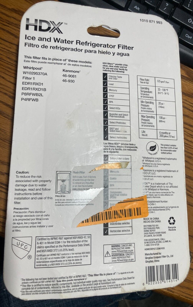 Type:Refrigerator FilterCompatible Model:Whirlpool Model Filter 1Manufacturer Part Number:1010 871 993gtin13:6922350614314Brand:HDXNumber in Pack:2UPC:6922350614314Model:EQW-1